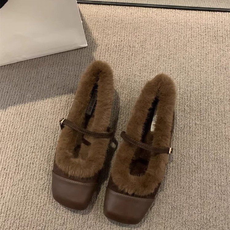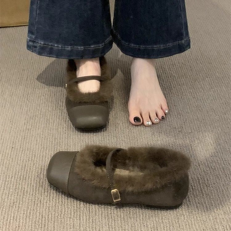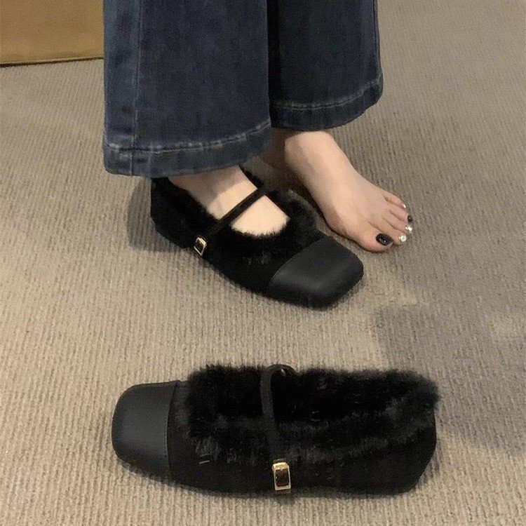 부드러운 밑창 마오 마오 신발 겨울 착용 여성 신발 2023 가을과 겨울 뉴 스퀘어 헤드 메리 제인 신발 기모 따뜻한 면화 신발