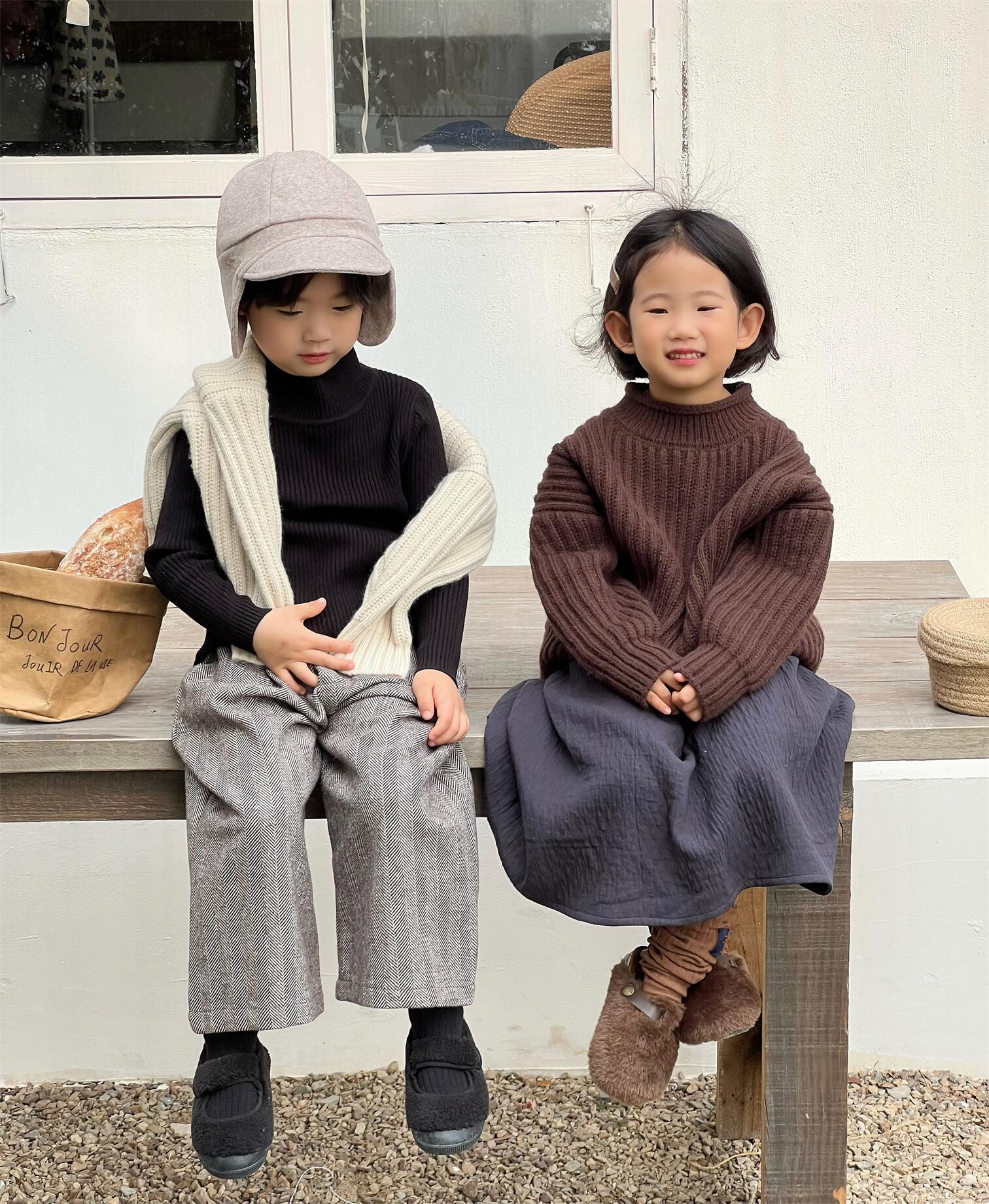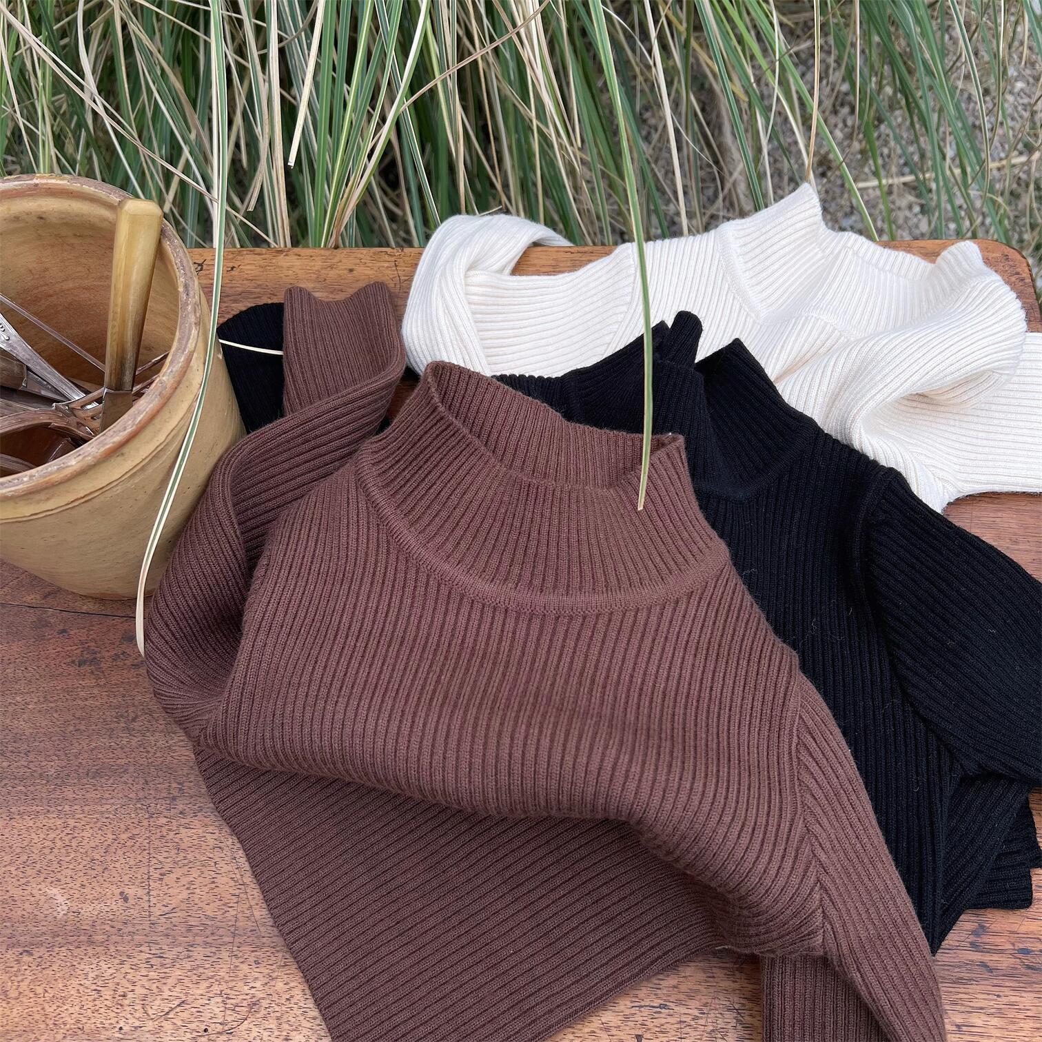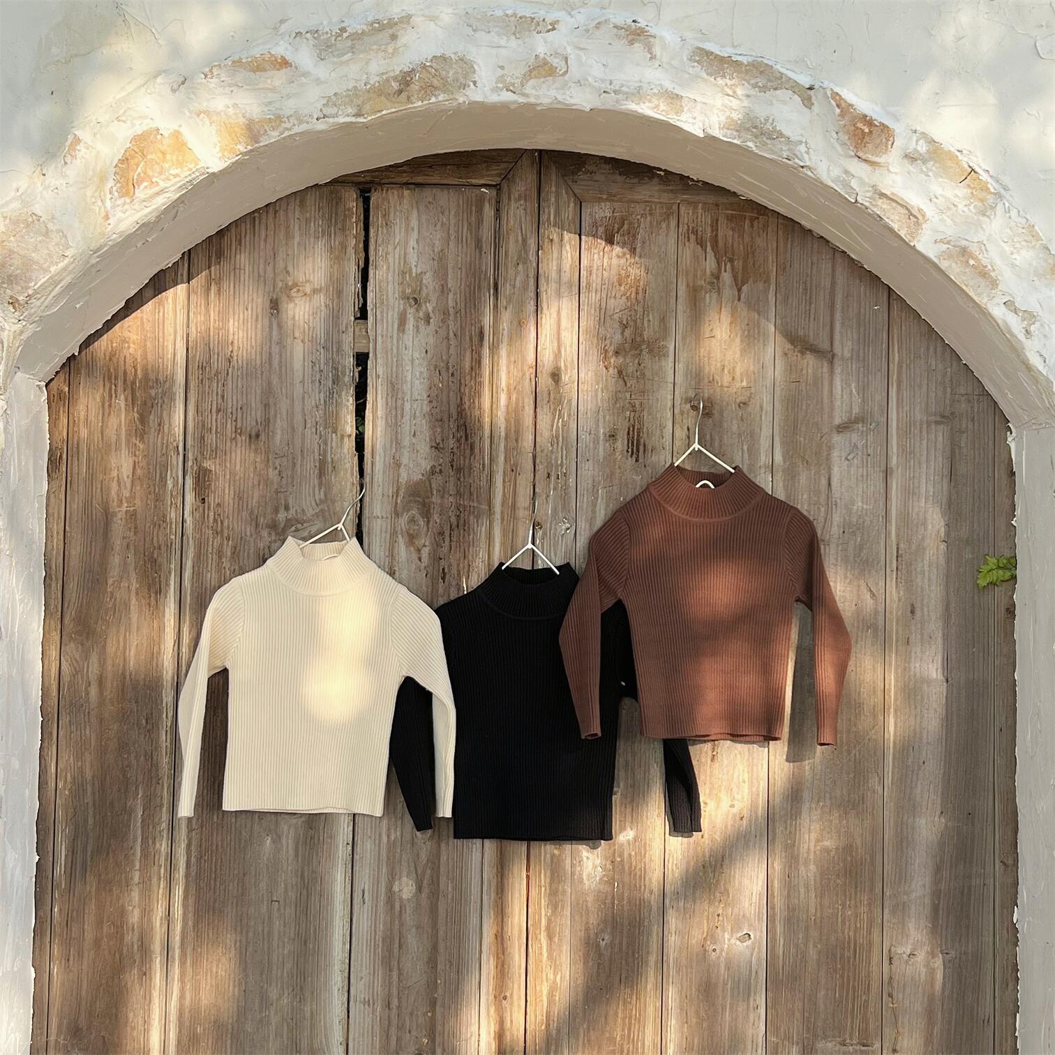 탑 에그 한국 아동복 2023 겨울 새 어린이 스웨터 3 색 스트레치 베이스 셔츠 하프 하이 칼라 니트 스웨터스토어 가기