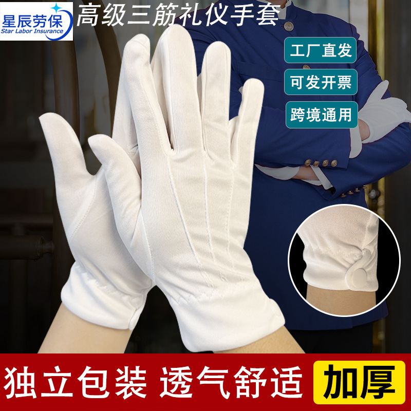 生产高级礼宾手套加厚耐磨白色三筋带扣礼仪手套黑色文玩珠宝手套