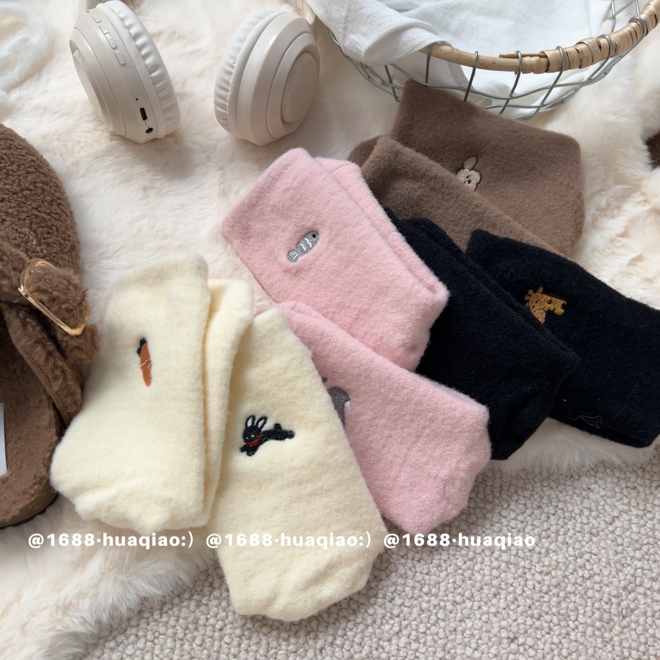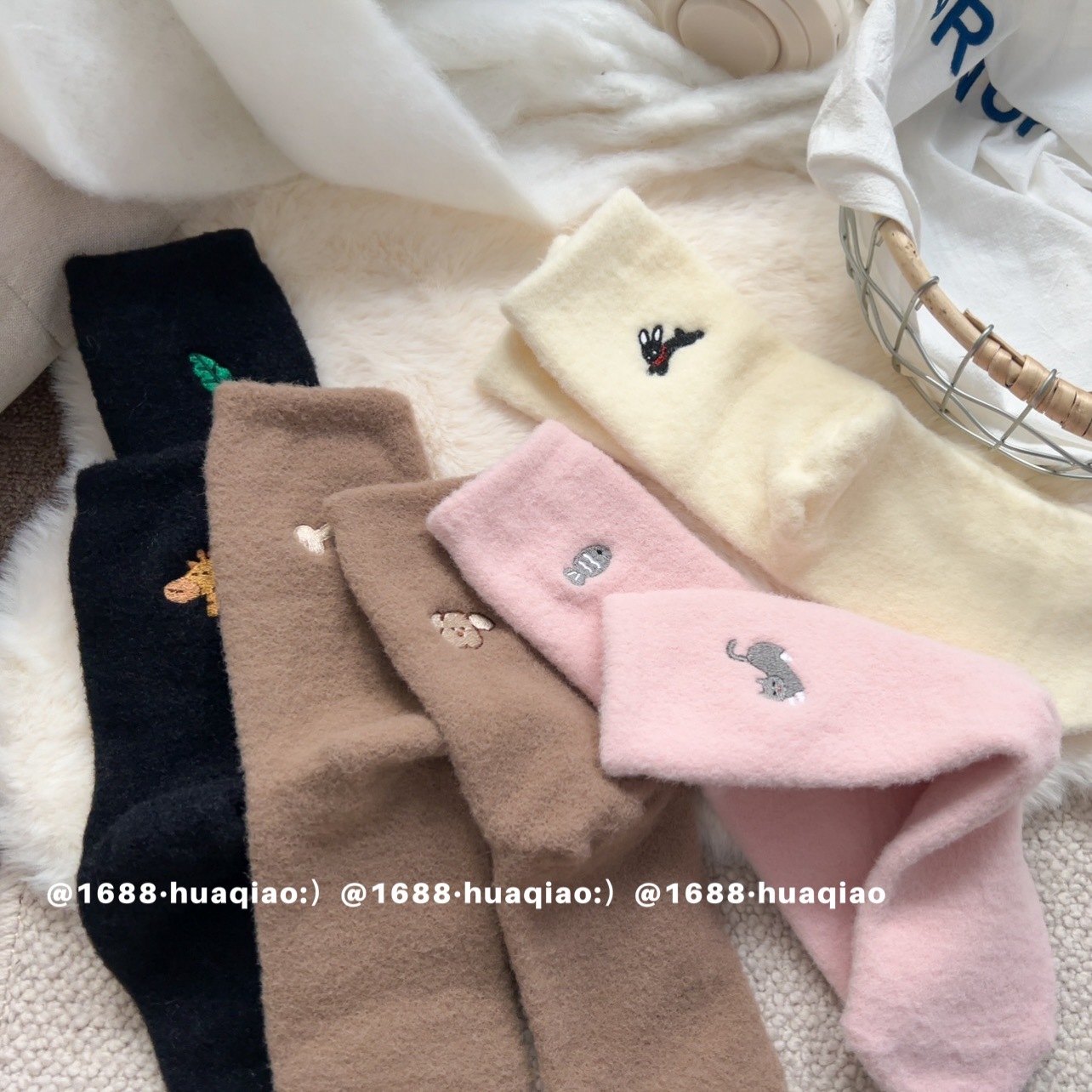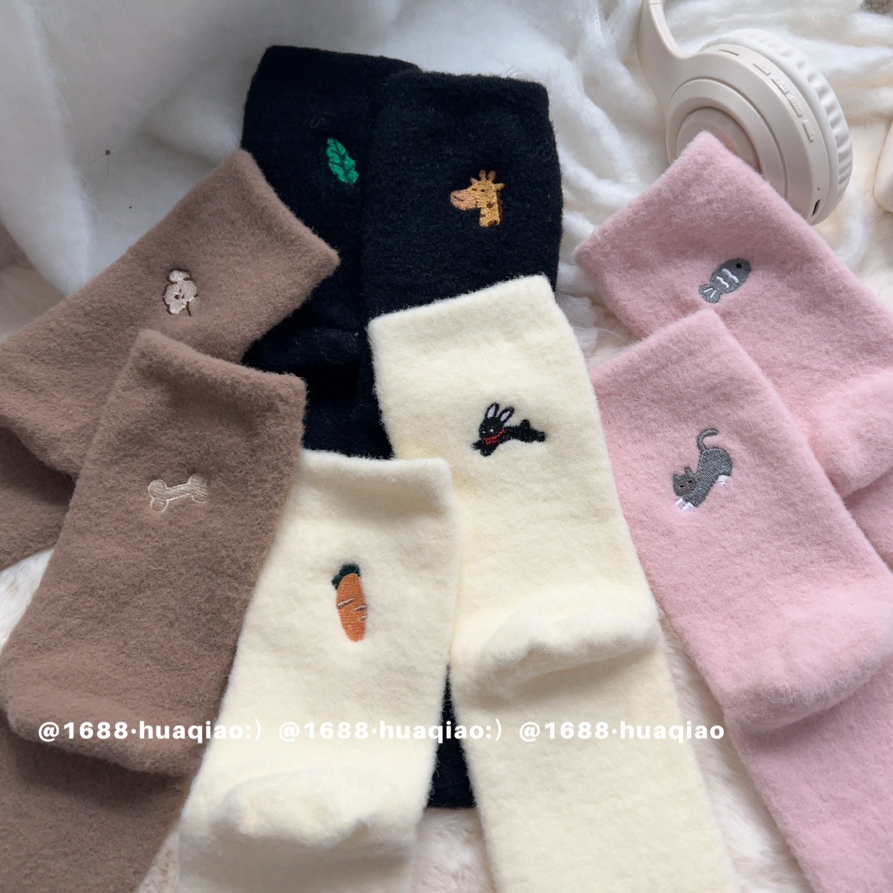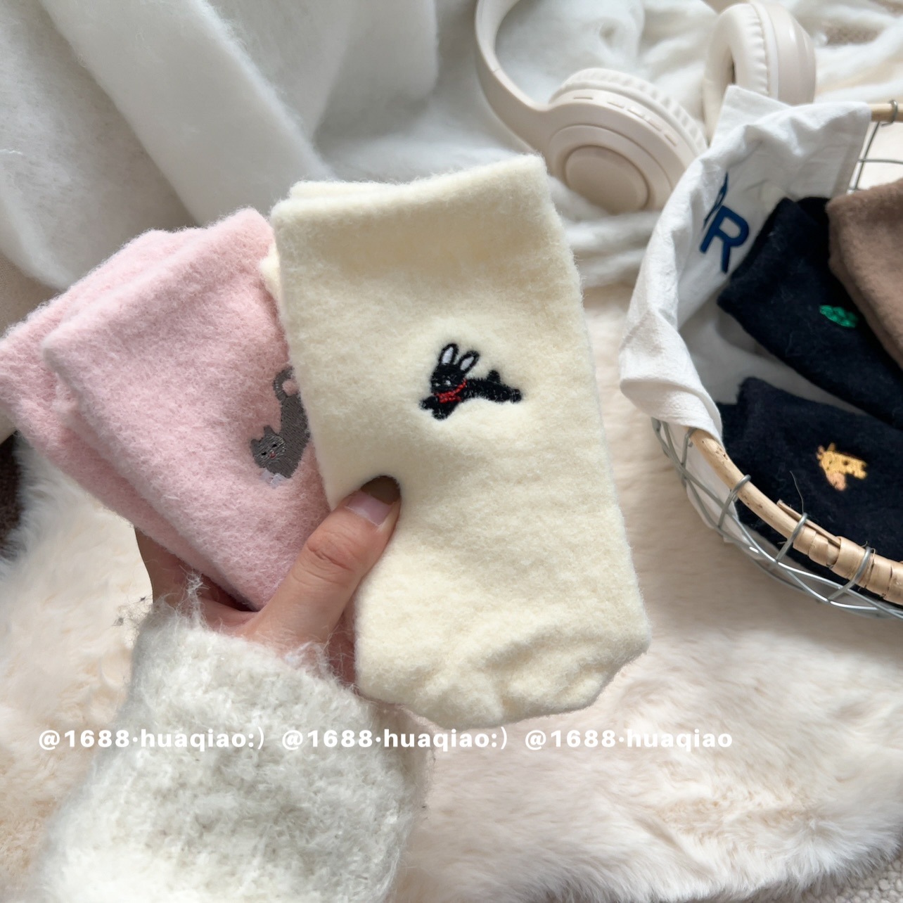 고양이 물고기 먹는 양말 여자의 가을과 겨울 새로운 동대문 기모 두꺼운 Ao 벨벳 일본 중간 자수 따뜻한 달 양말스토어 가기