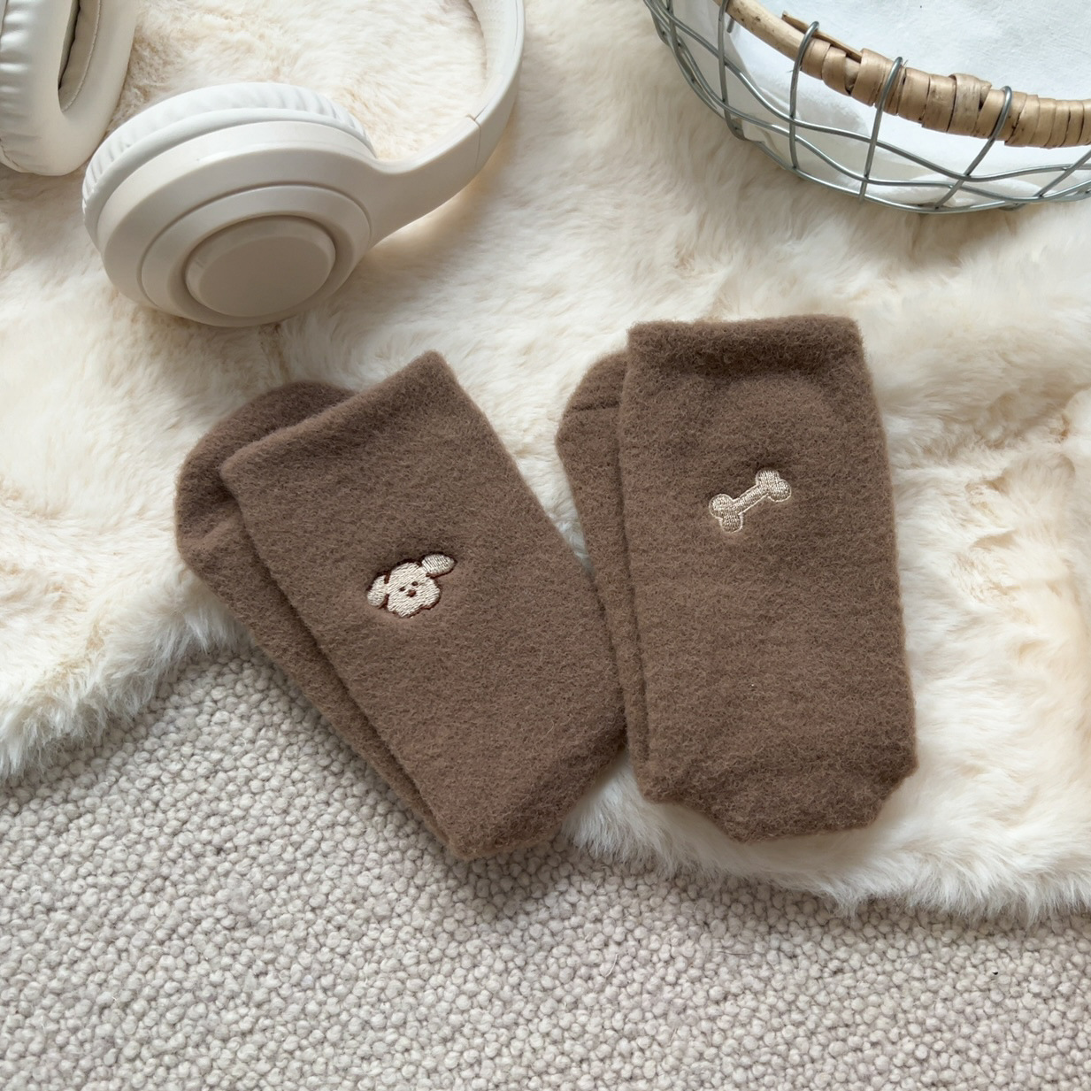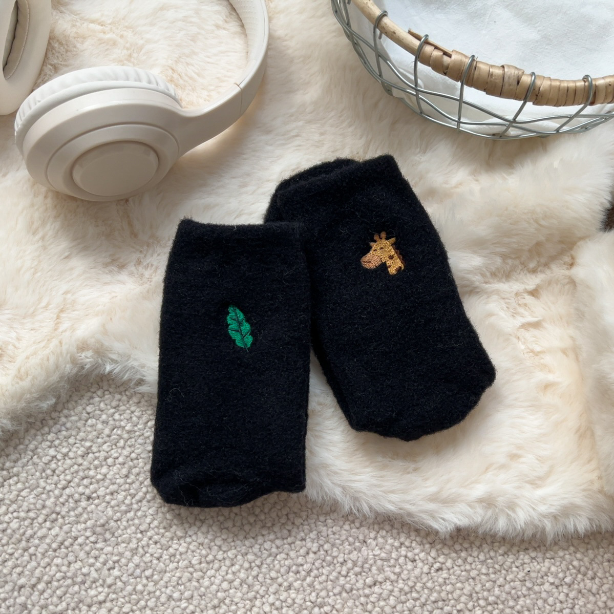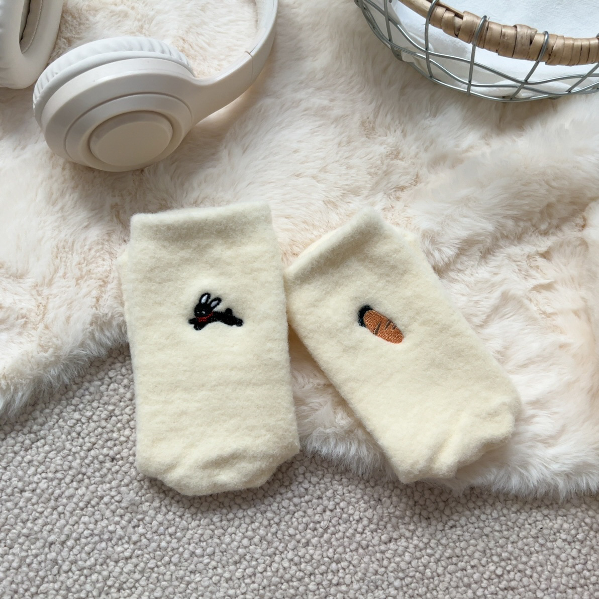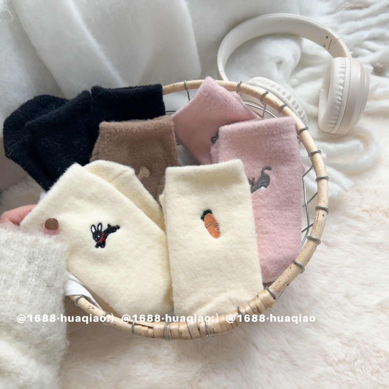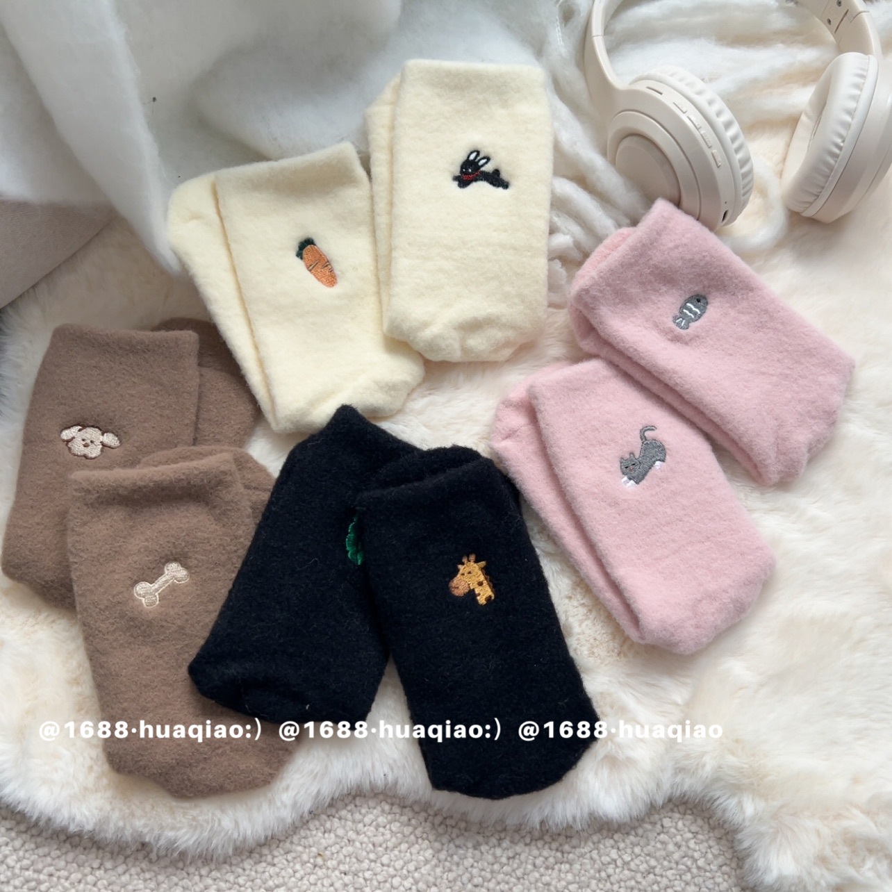 고양이 물고기 먹는 양말 여자의 가을과 겨울 새로운 동대문 기모 두꺼운 Ao 벨벳 일본 중간 자수 따뜻한 달 양말