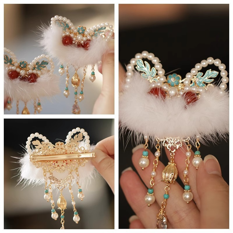 사자 술 새해 머리핀 사이드 클립 백 헤드 클립 Hanfu 데일리 액세서리 레드 귀여운 모자 새해스토어 가기