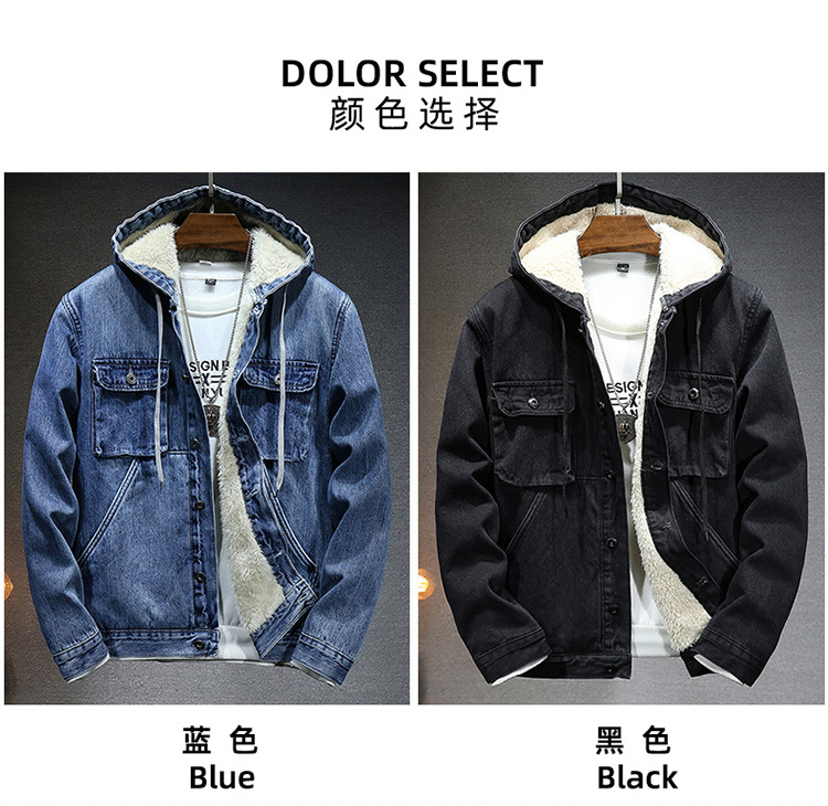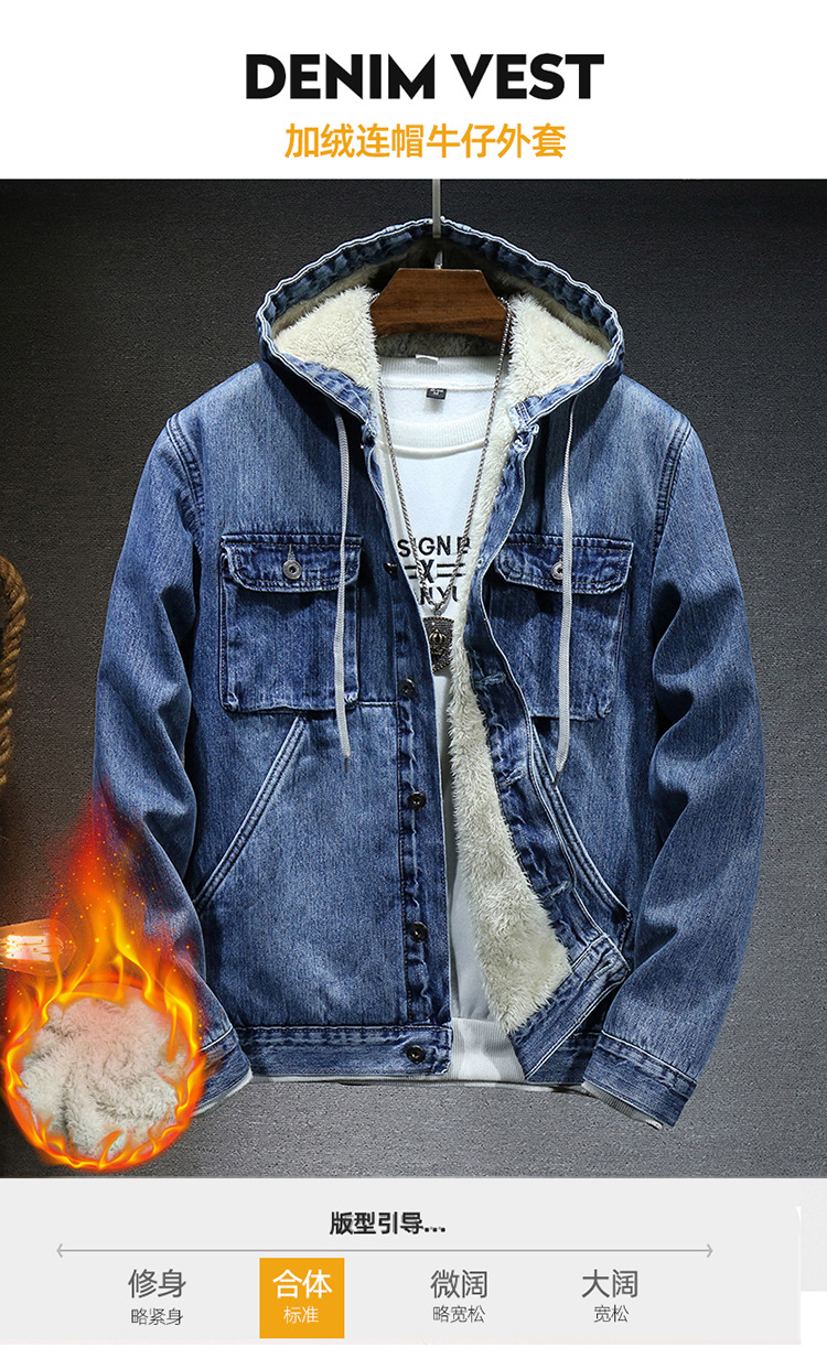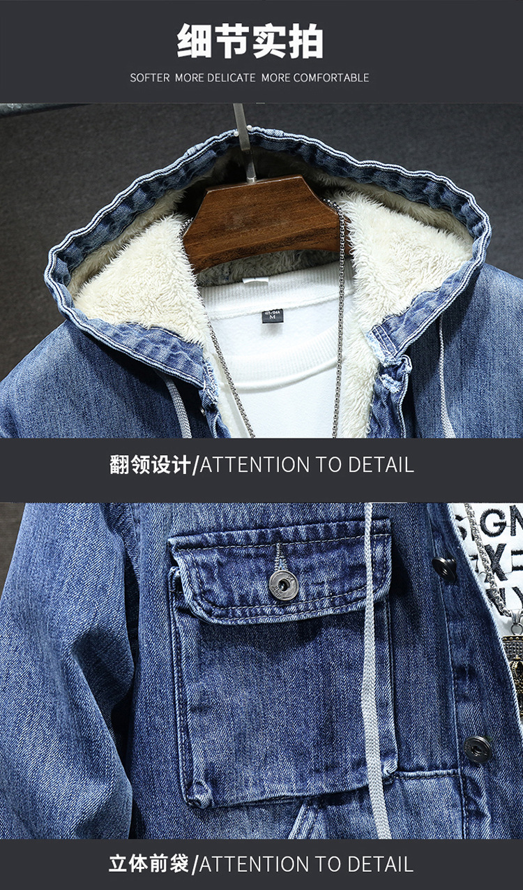 후드 데님 재킷 남자의 하이 엔드 재킷 겨울 자켓 후드 기모 두꺼운 윈드 브레이커 두꺼운 따뜻한 남자의 탑