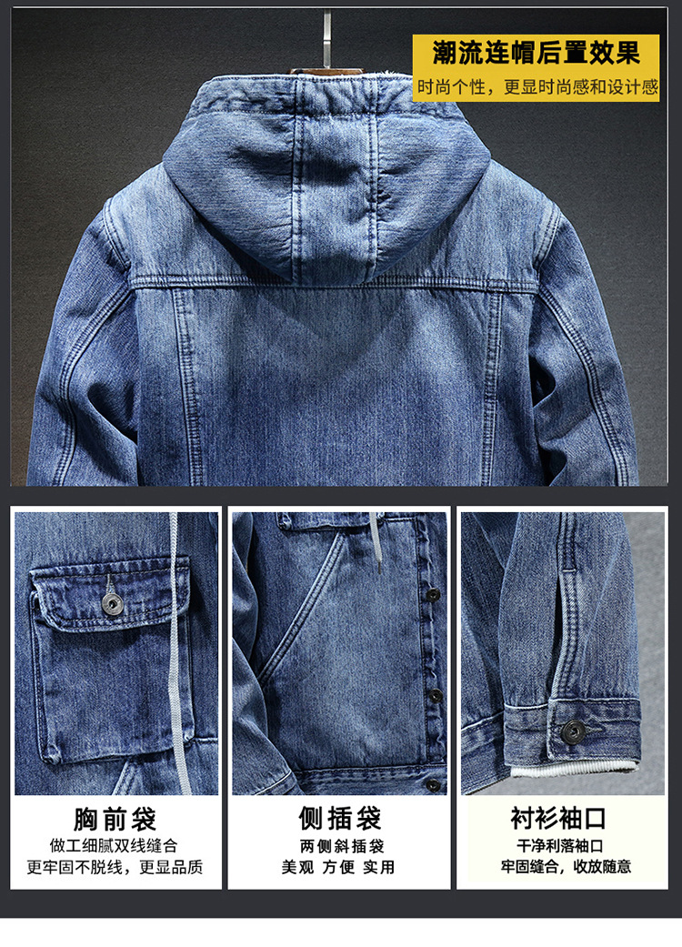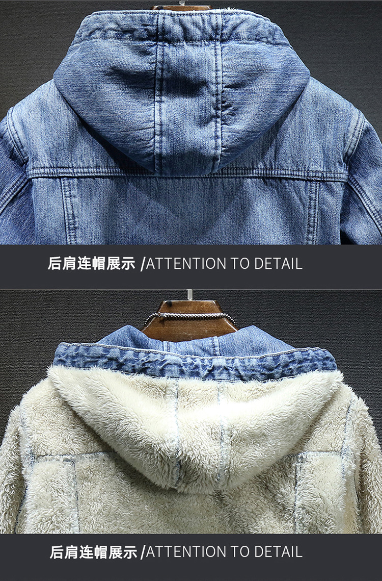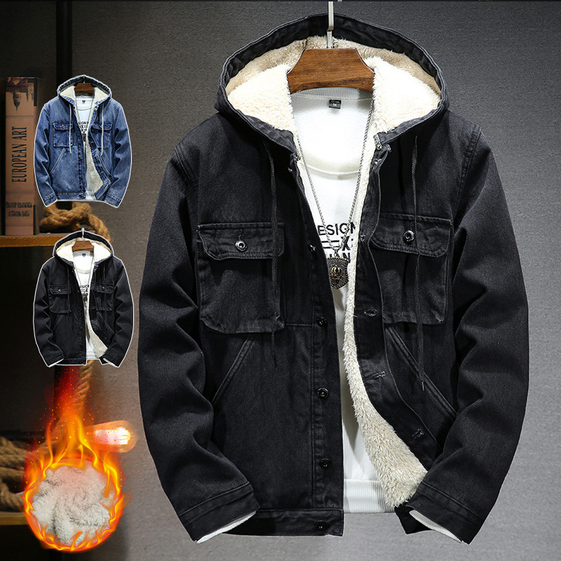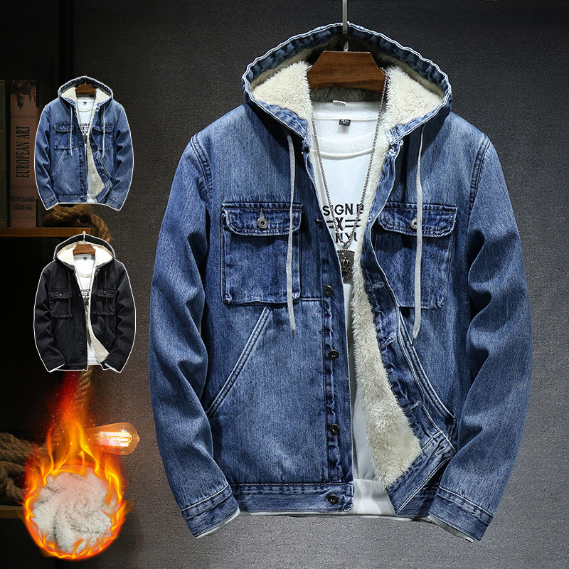 후드 데님 재킷 남자의 하이 엔드 재킷 겨울 자켓 후드 기모 두꺼운 윈드 브레이커 두꺼운 따뜻한 남자의 탑스토어 가기