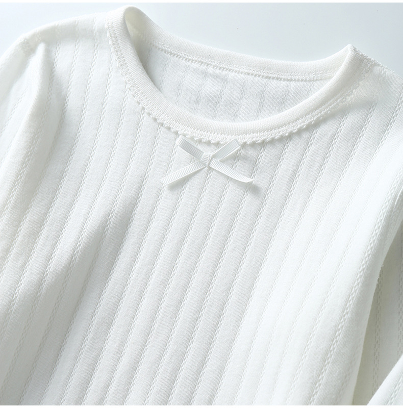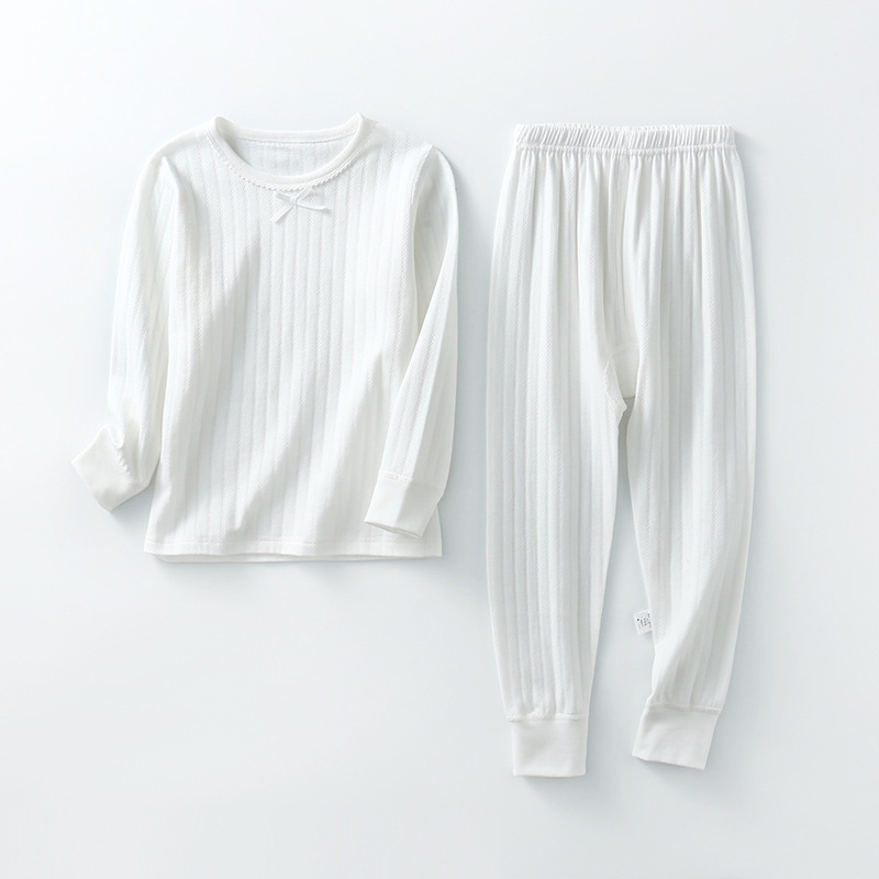 가을과 겨울 새로운 단색 어린이 더블 레이어 자카드 순면 세트 남자의 흰색 가을 옷 여자의 바지 바지 여자의 추적 없는 가정 의류스토어 가기