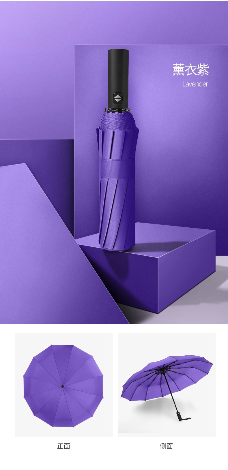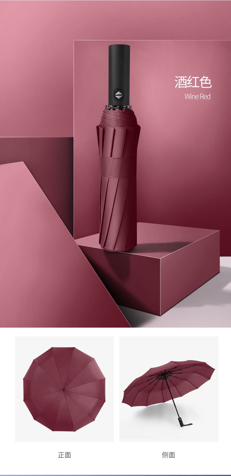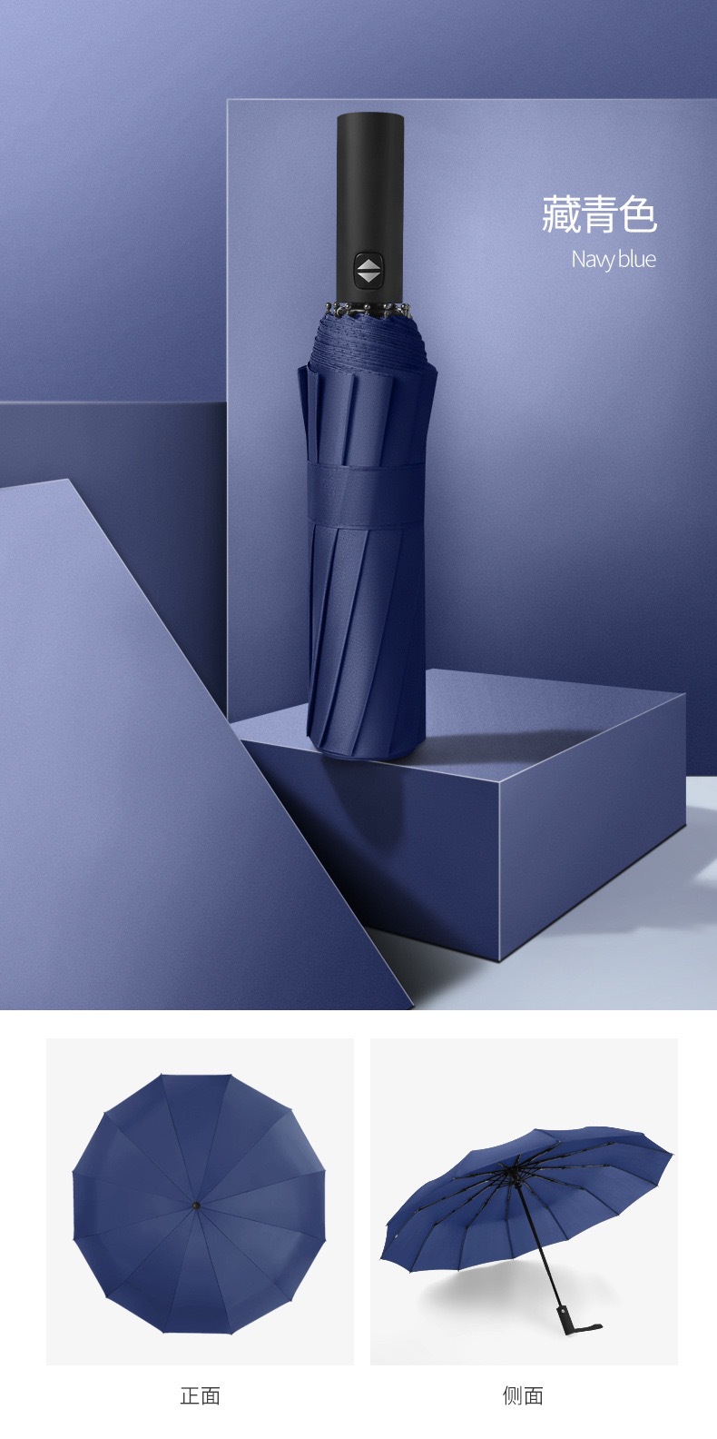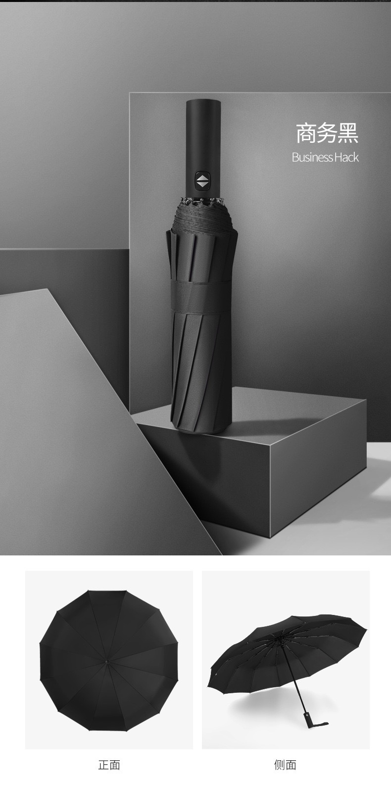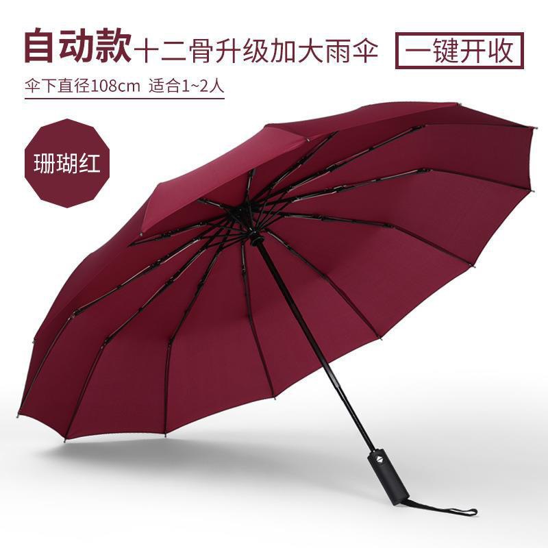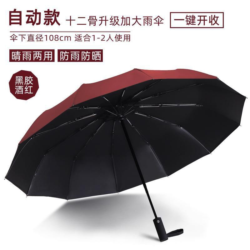 12骨加大双人防风自动折叠雨伞 黑胶防晒晴雨两用三折商务广告伞