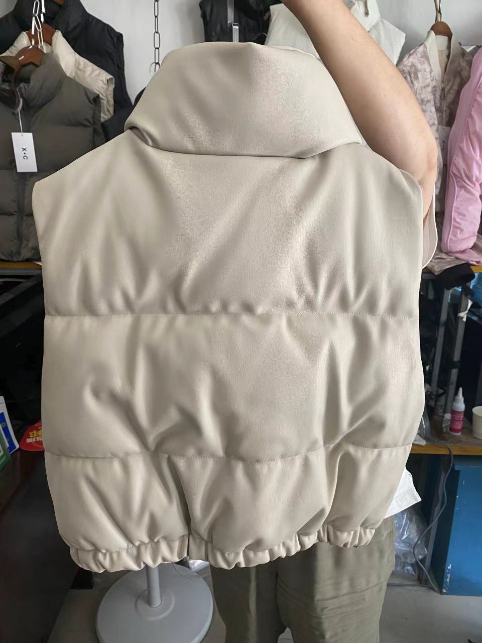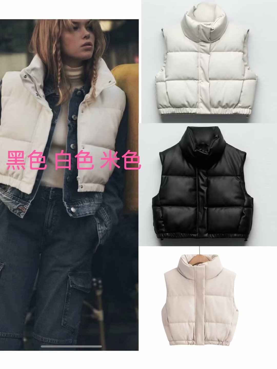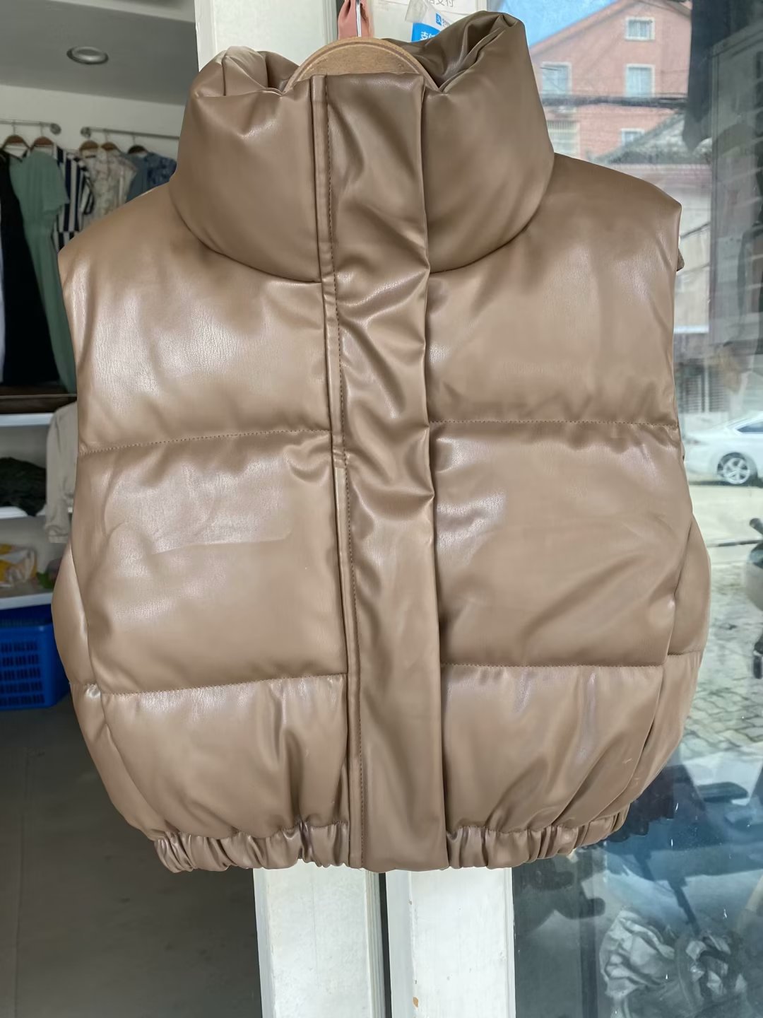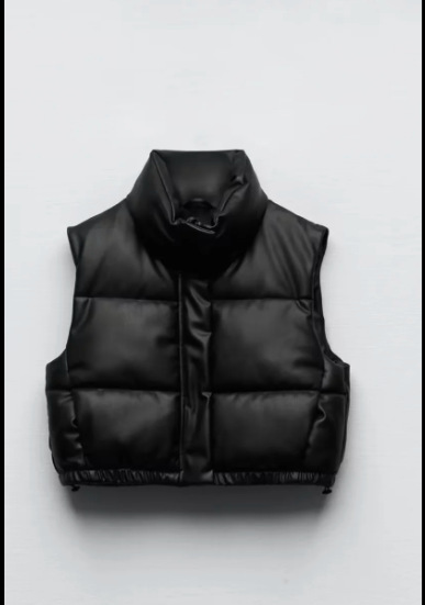 유럽 및 미국 도매 크로스보더 공급 여름 유럽 및 미국 여성복 도시 캐주얼 스탠드 칼라 인조 가죽 면 조끼스토어 가기