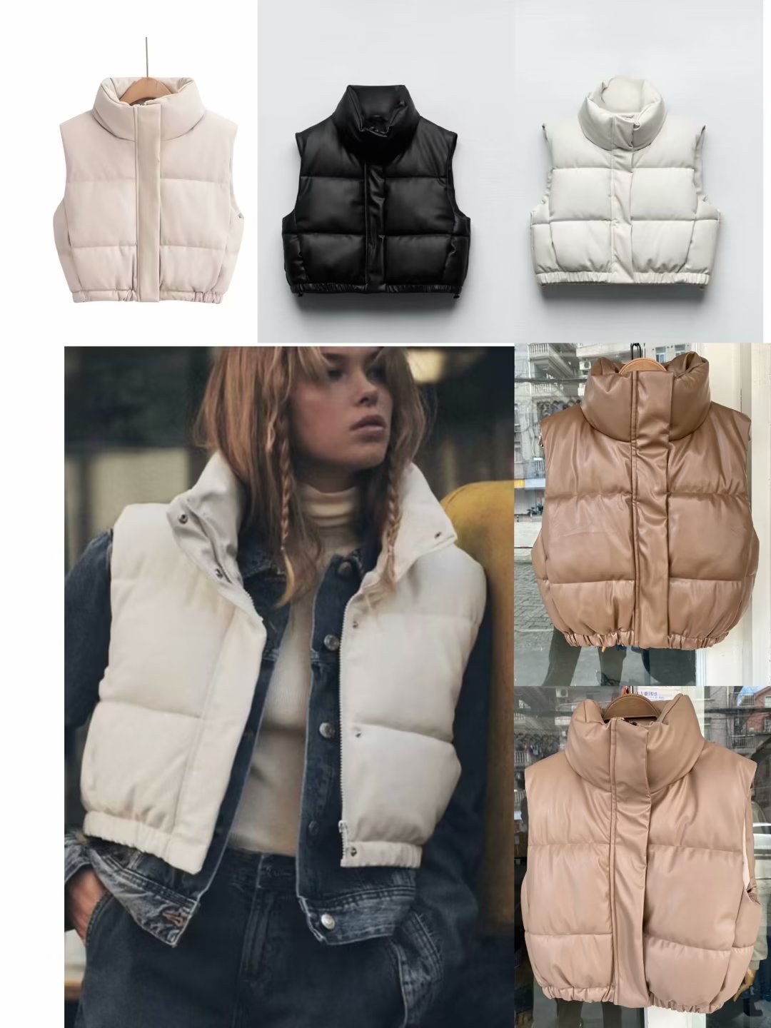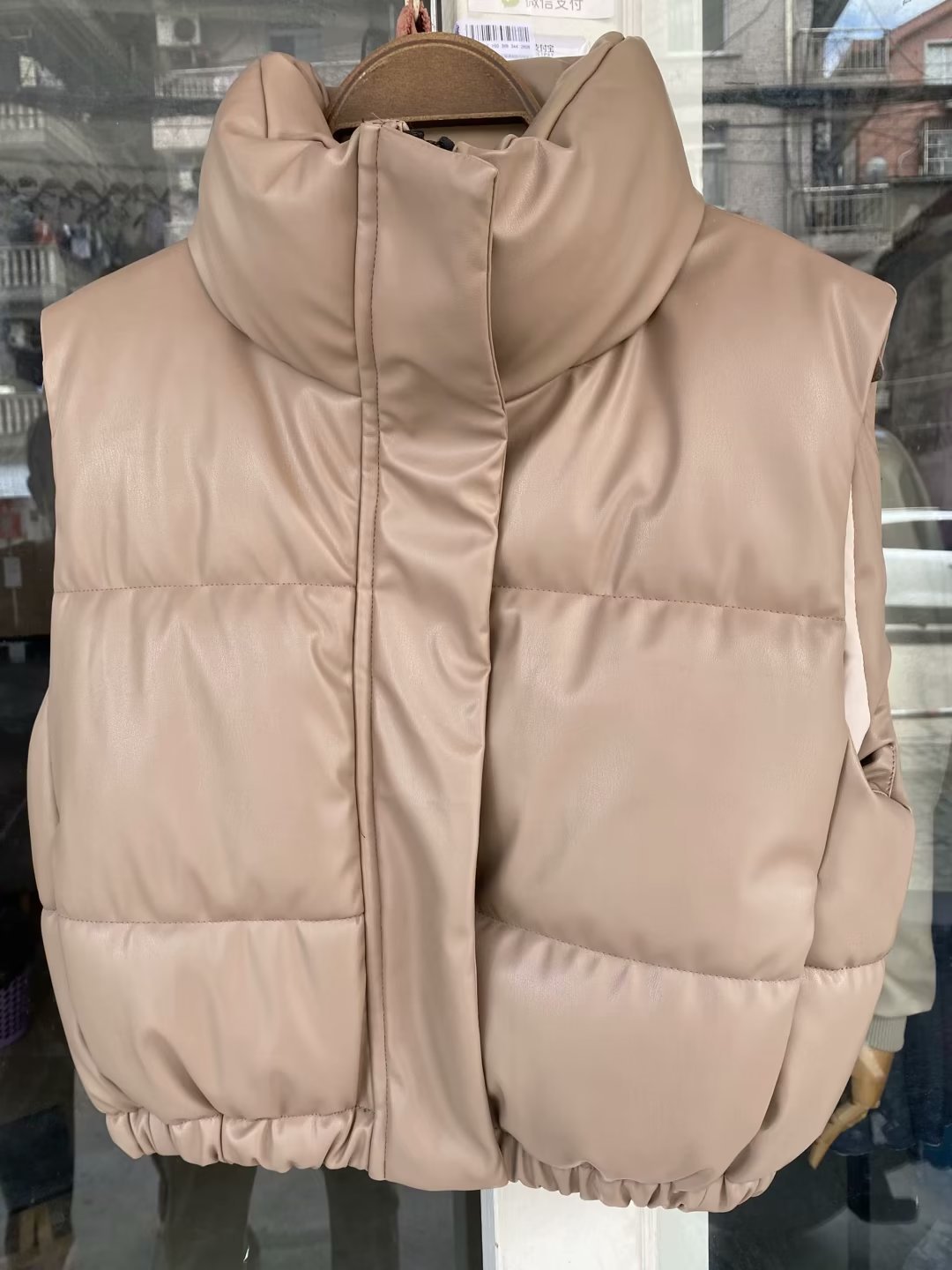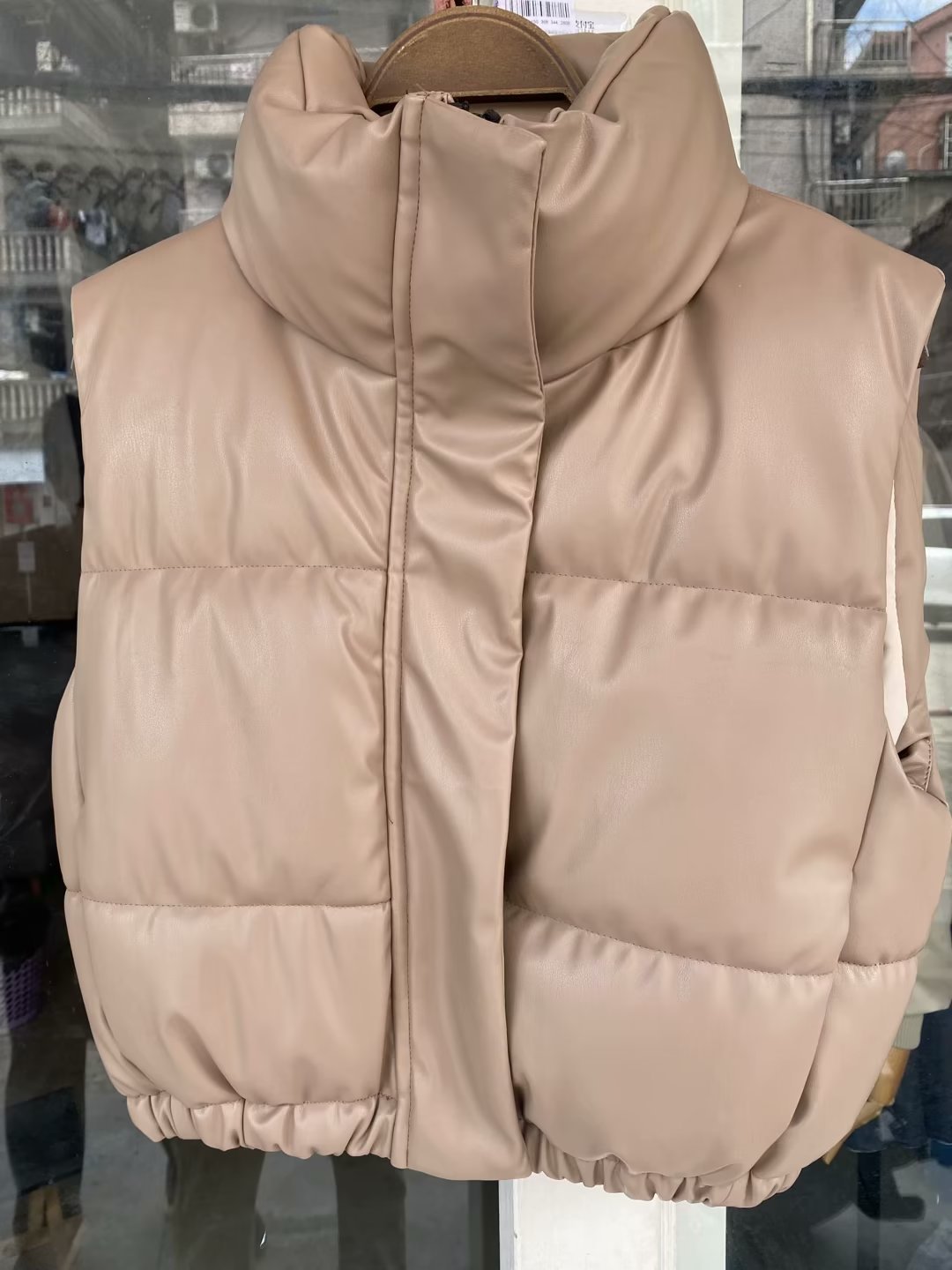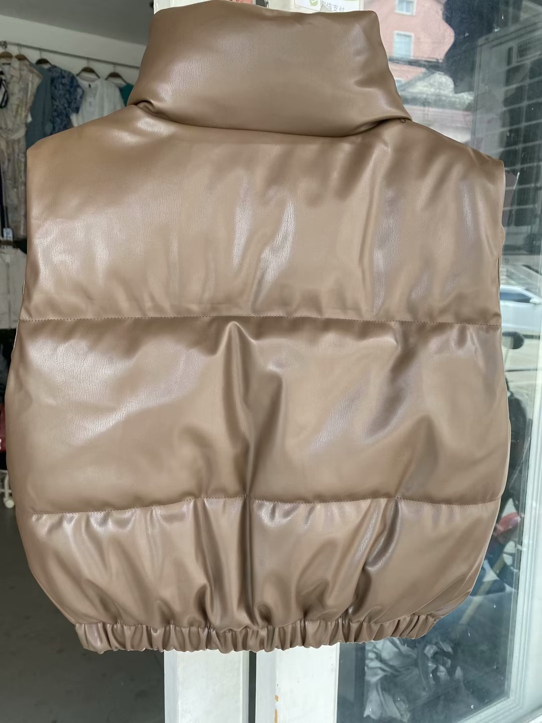 유럽 및 미국 도매 크로스보더 공급 여름 유럽 및 미국 여성복 도시 캐주얼 스탠드 칼라 인조 가죽 면 조끼스토어 가기