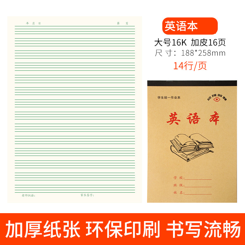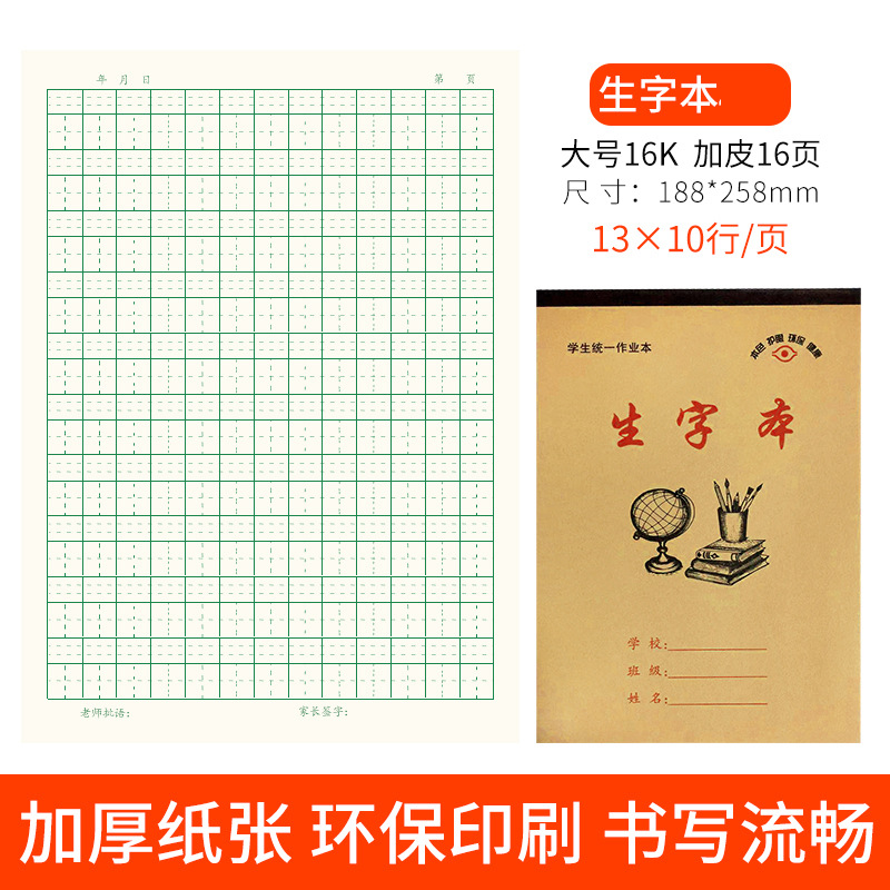 16 오픈 연습장 중국어 수학 영어 작문 신단어 티안 문자 3-6 학년 대 초등학생 연습장