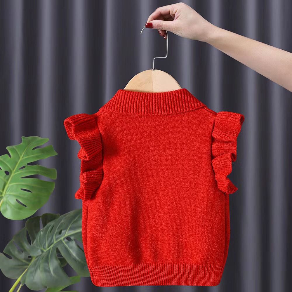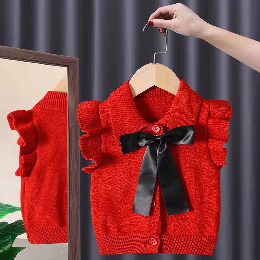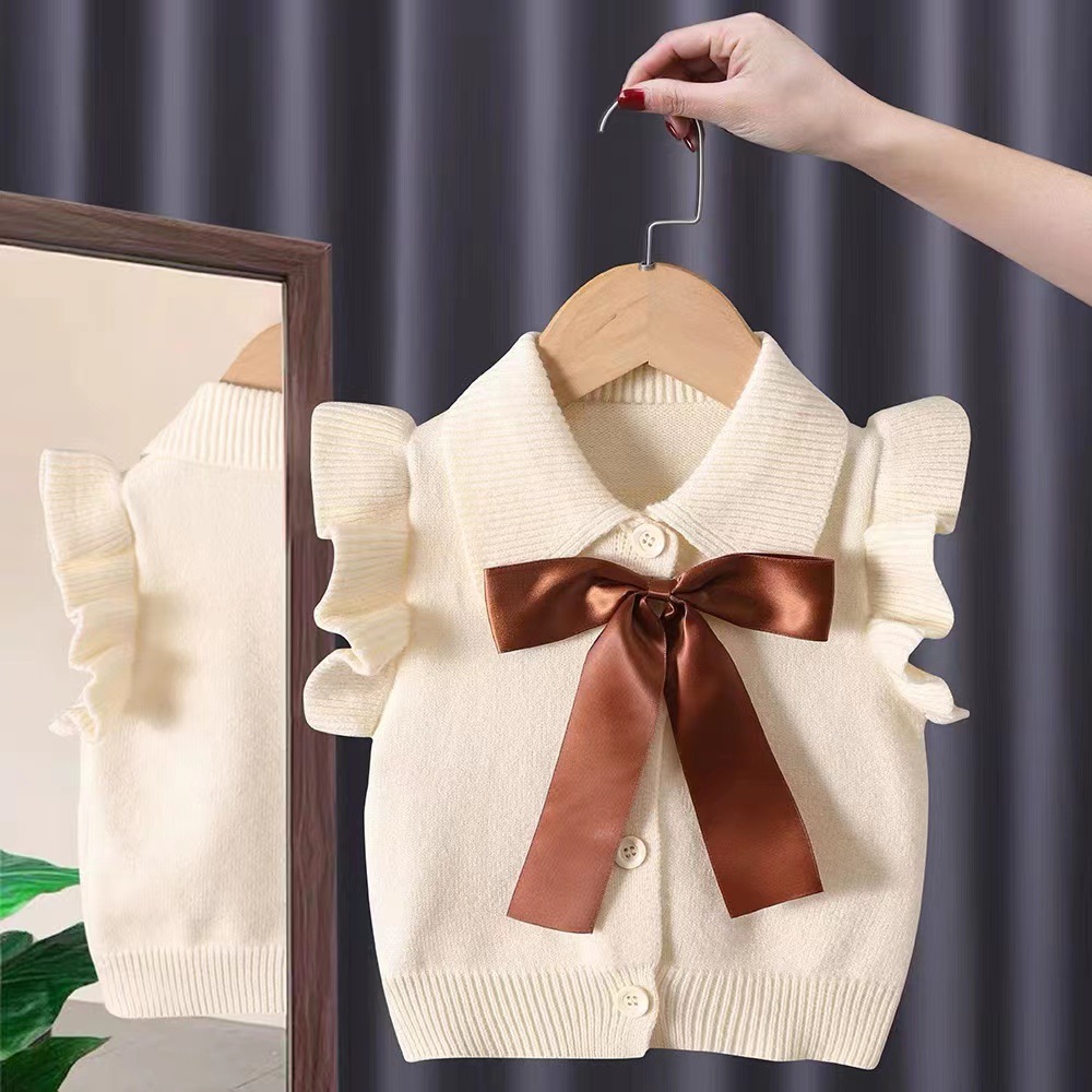 아기 소녀의 니트 조끼 봄과 가을 소녀의 유행 큰 활 스웨터 조끼 한국 스타일 아기의 양모 조끼