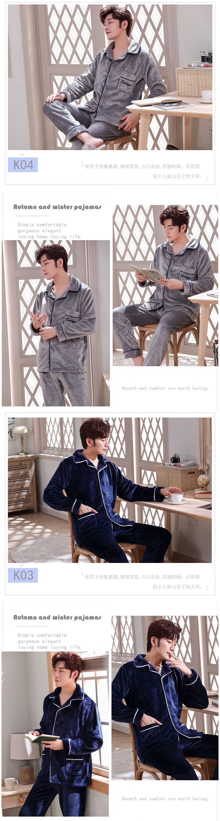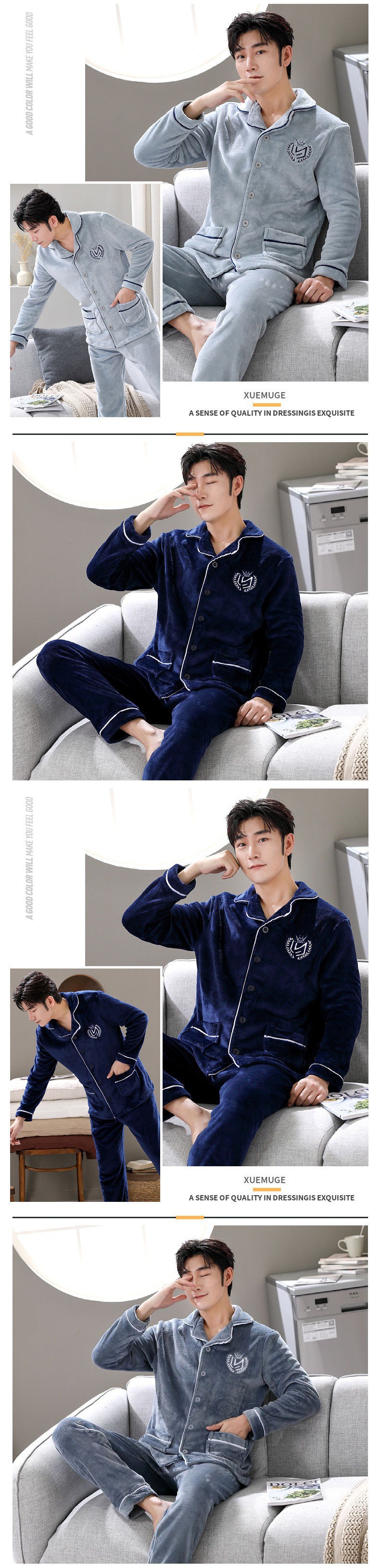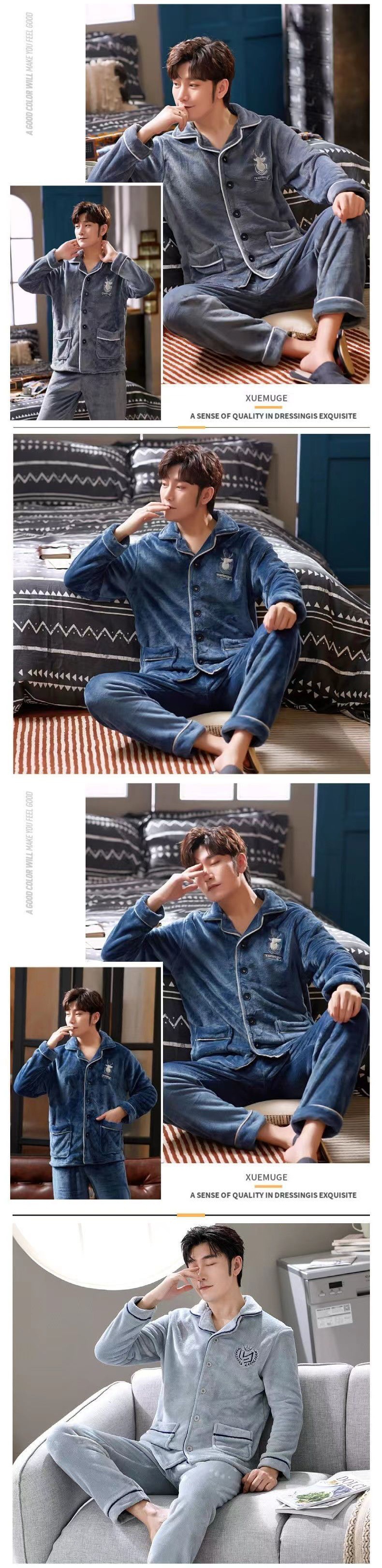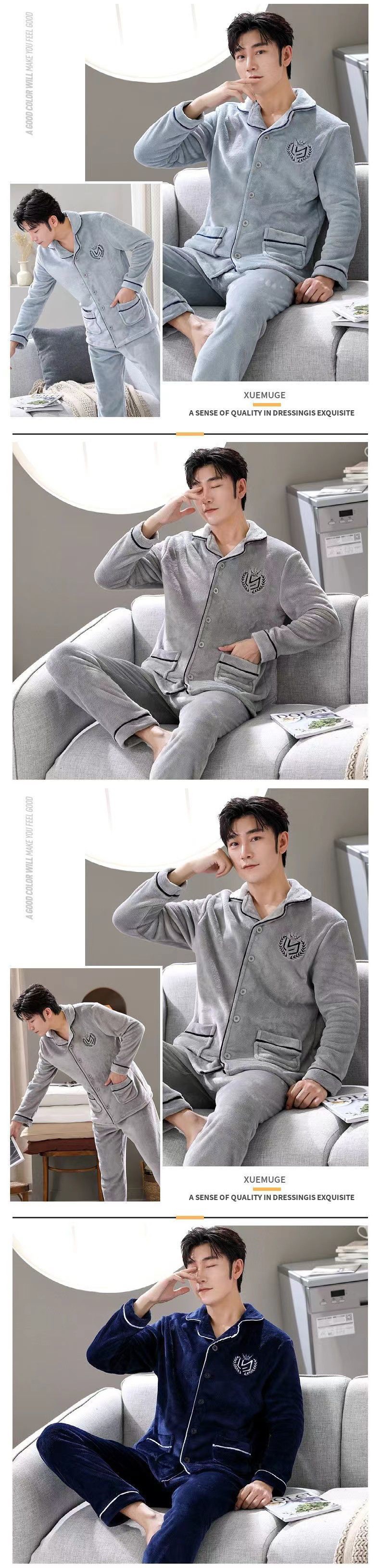 Shanlidadi 가을과 겨울 남성 산호 양털 잠옷 두꺼운 기모 겨울 플란넬 따뜻한 카디건 세트