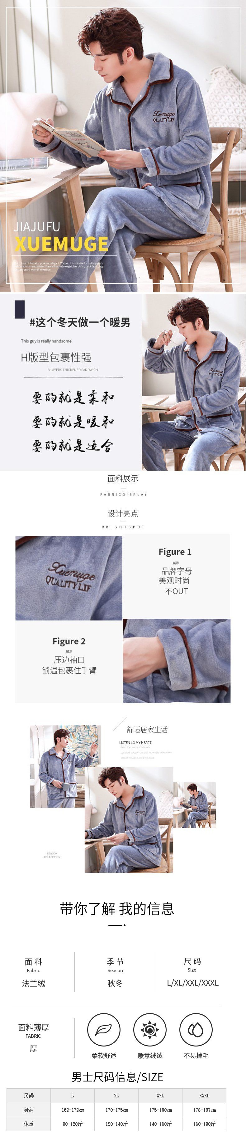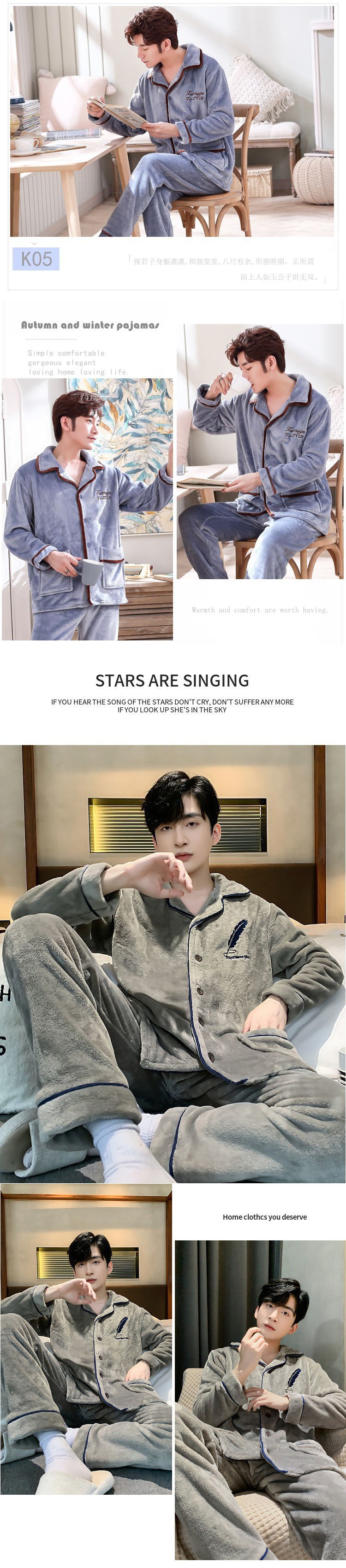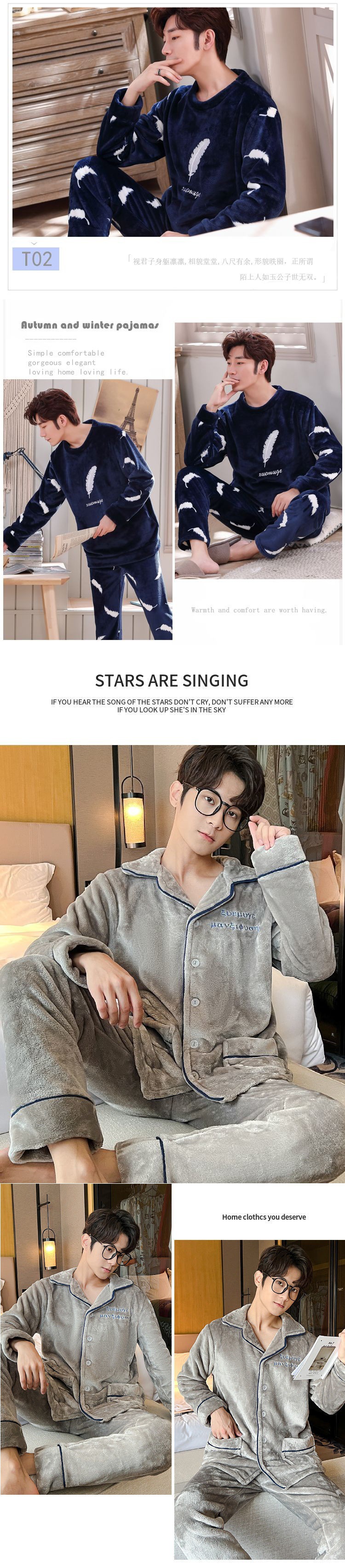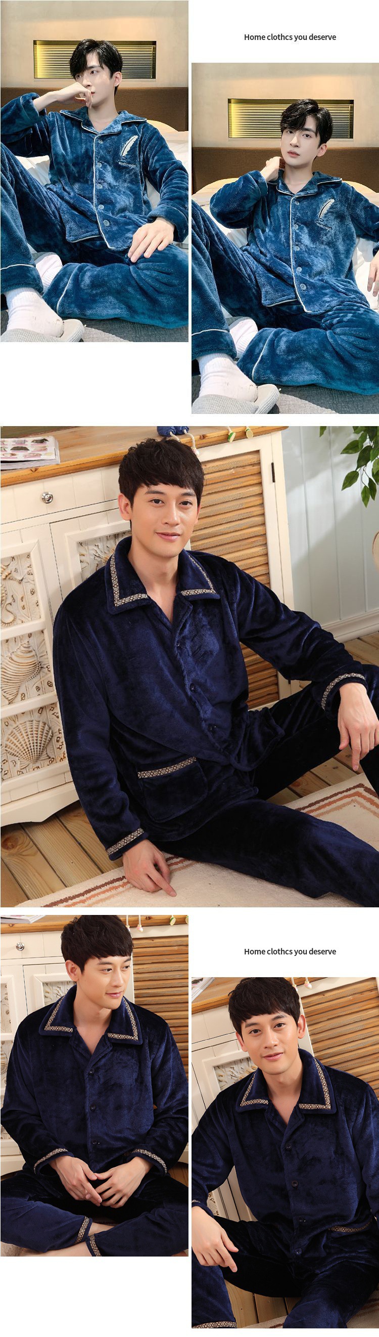 Shanlidadi 가을과 겨울 남성 산호 양털 잠옷 두꺼운 기모 겨울 플란넬 따뜻한 카디건 세트스토어 가기