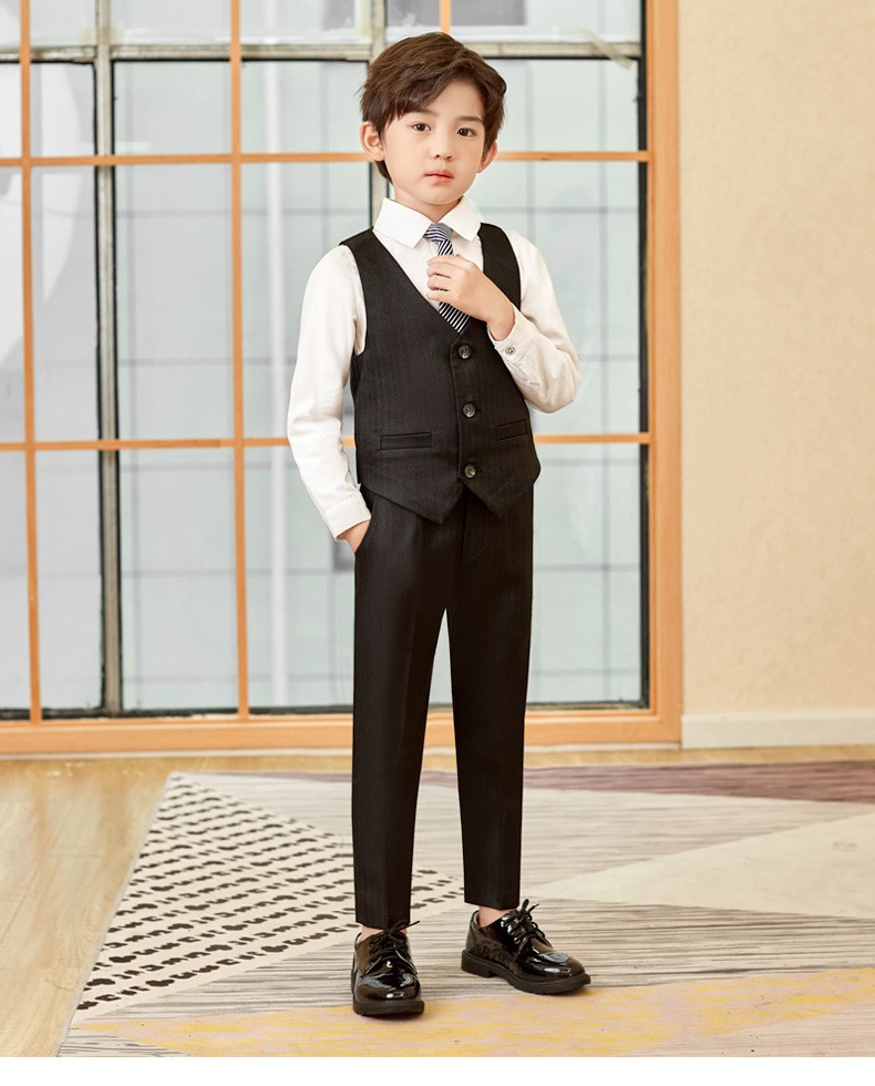 • 블랙 조끼 4 피스 (조끼 + 바지 + 셔츠 + 넥타이)