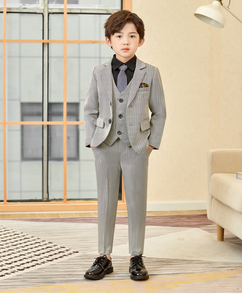 • 회색 5 피스 세트 (코트 + 조끼 + 바지 + 셔츠 + 넥타이)