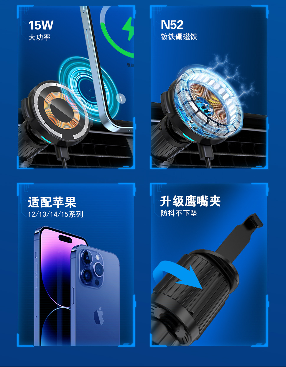 자동차 MagSafe 애플 마그네틱 무선 충전 15W 고속 충전 자동차 내비게이션 공기 콘센트 휴대 전화 브래킷