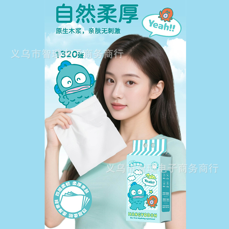 산리오 교수형 화장지 대용량 패밀리 팩 두꺼운 초대형 얼굴 티슈 만화 정품 인증스토어 가기