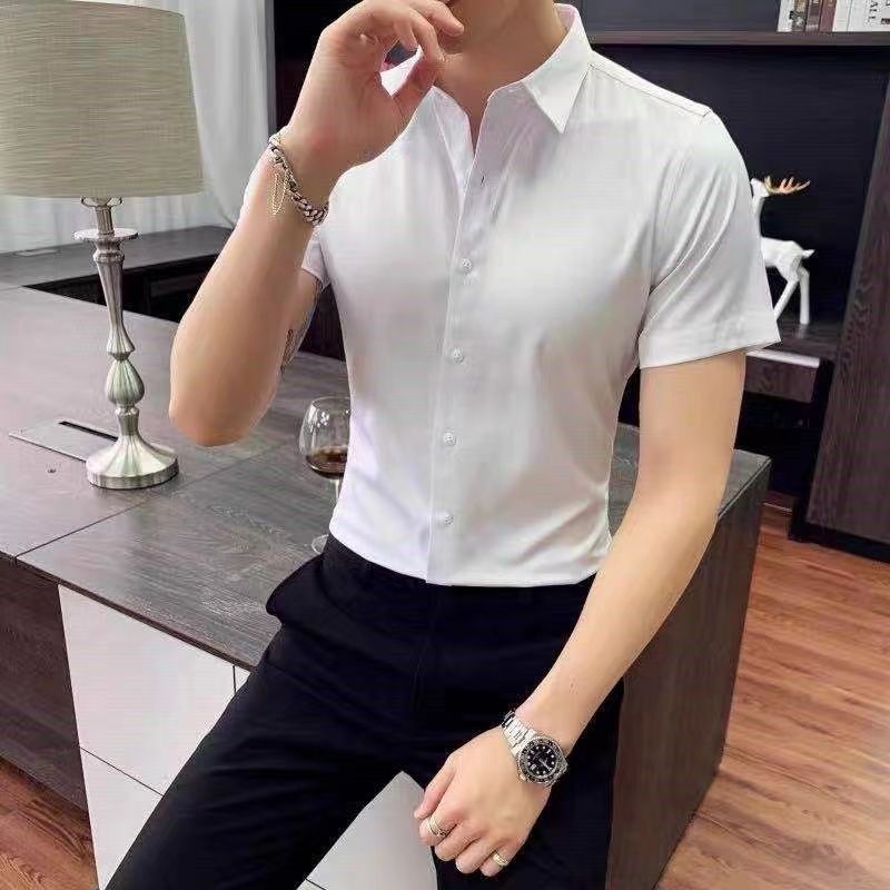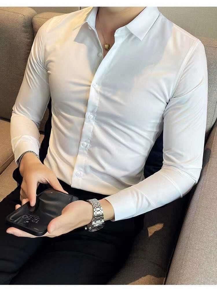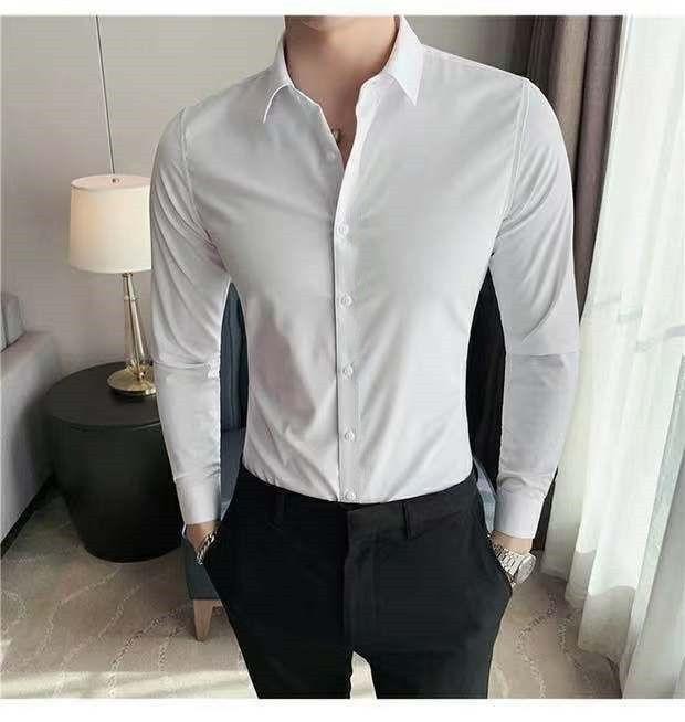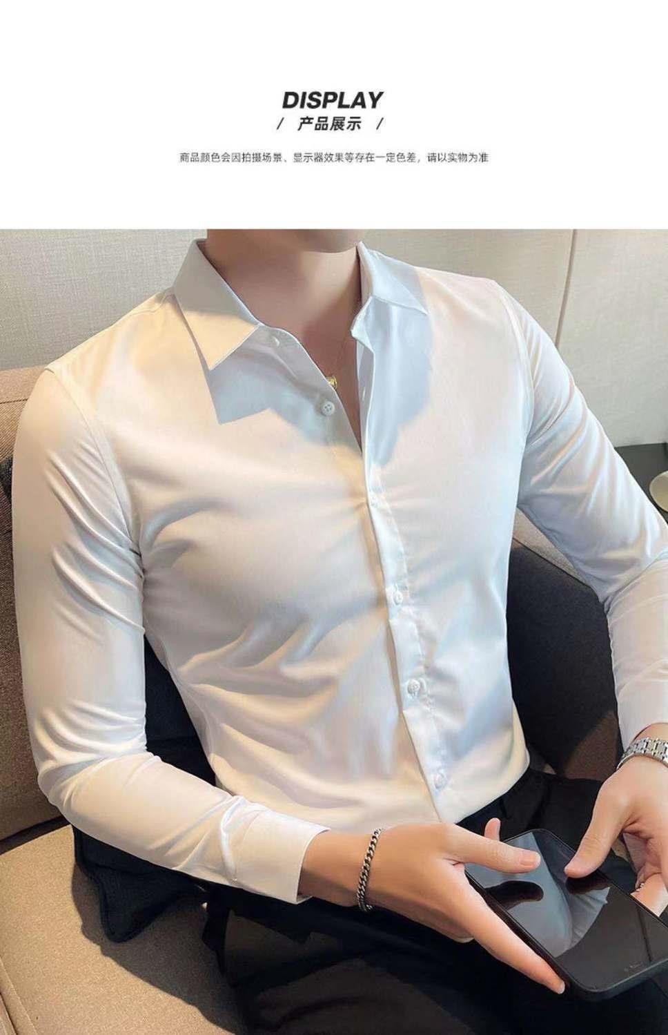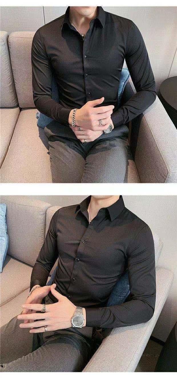 스트레치 긴팔 셔츠 슬림 핏 얇은 검은 셔츠 비즈니스 캐주얼 전문 원피스 작업복 남성용 셔츠스토어 가기