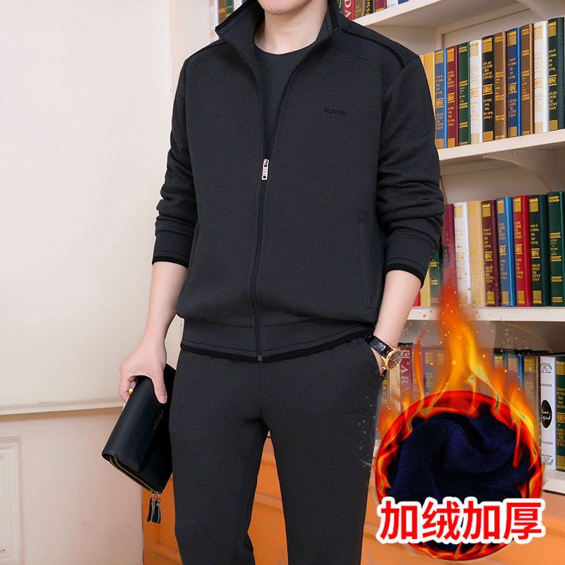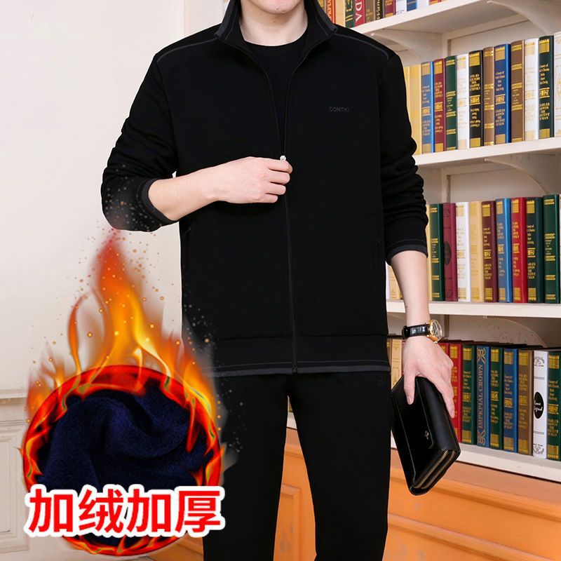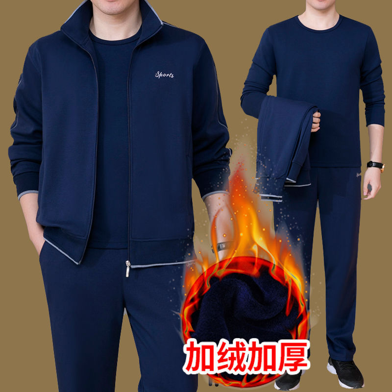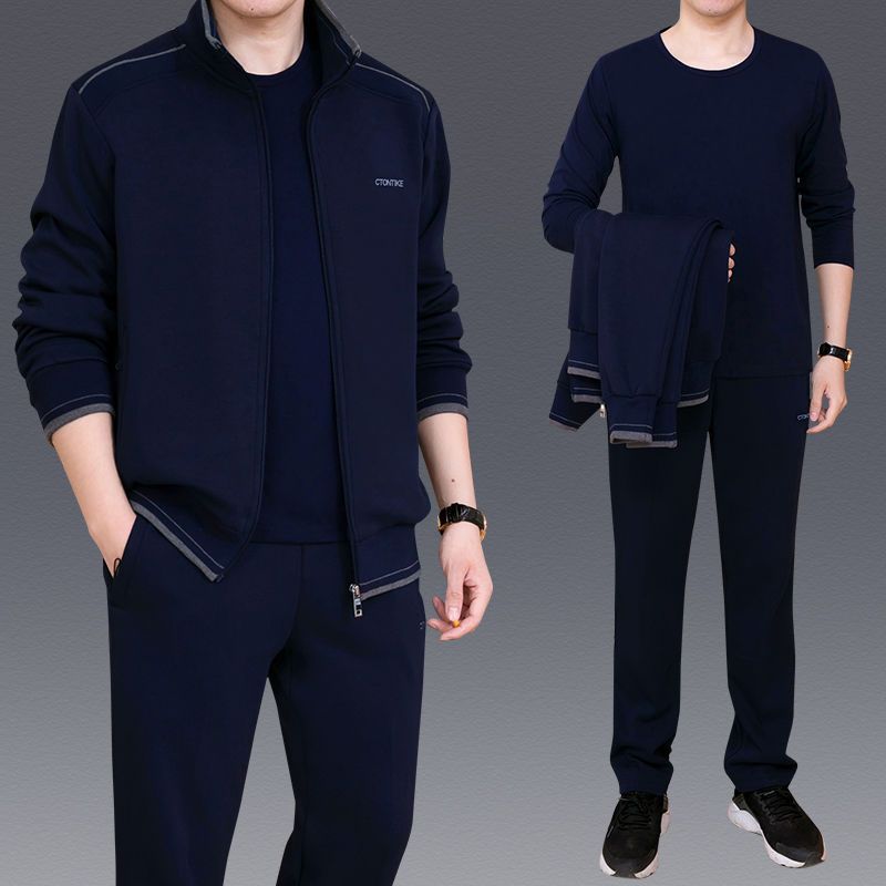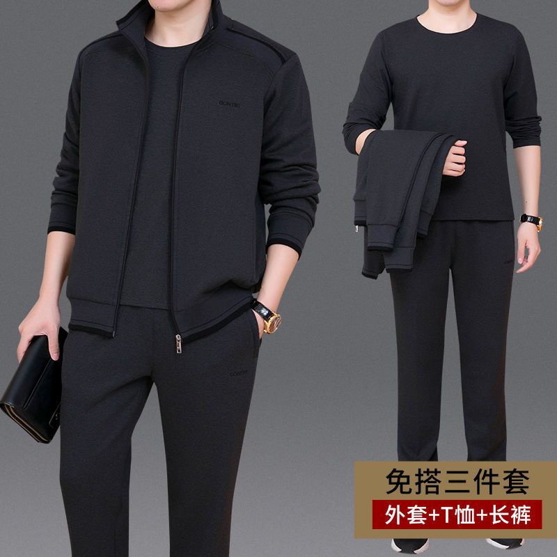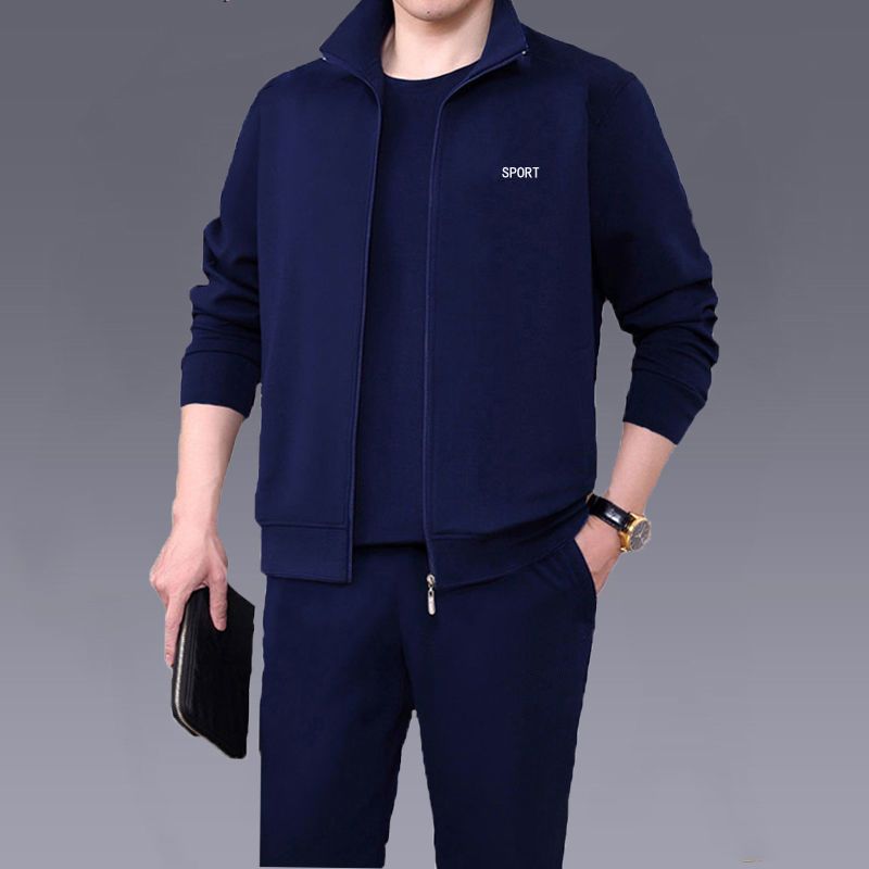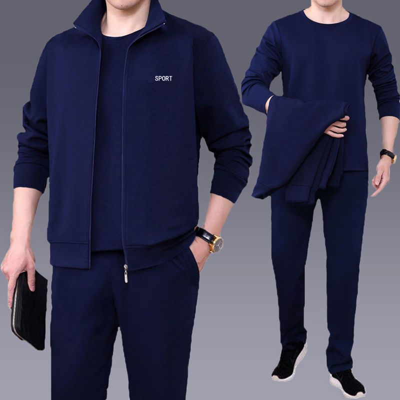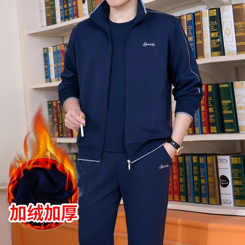 Shanli Dadi 중년 및 노인 남성의 봄과 가을 레저 스포츠 세트 남성용 긴팔 쓰리피스 세트 중년 남성 플러스스토어 가기