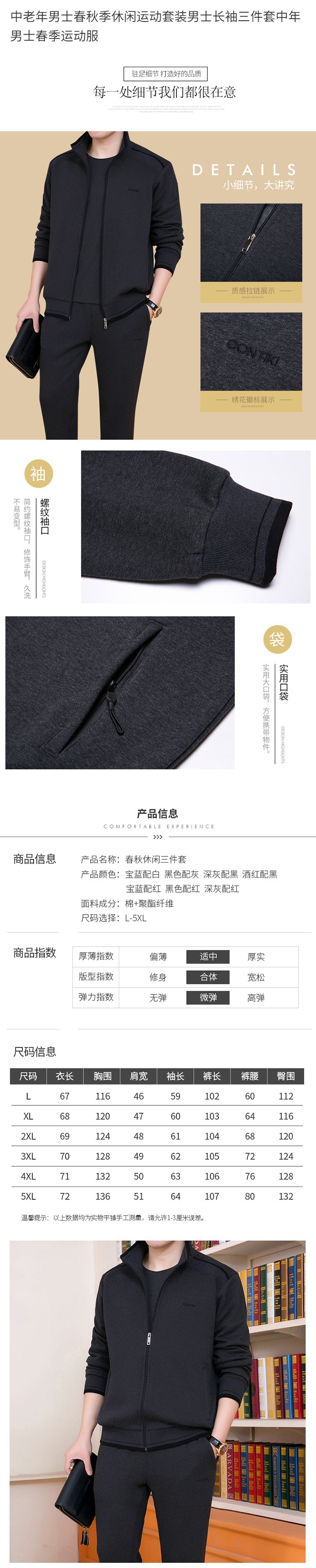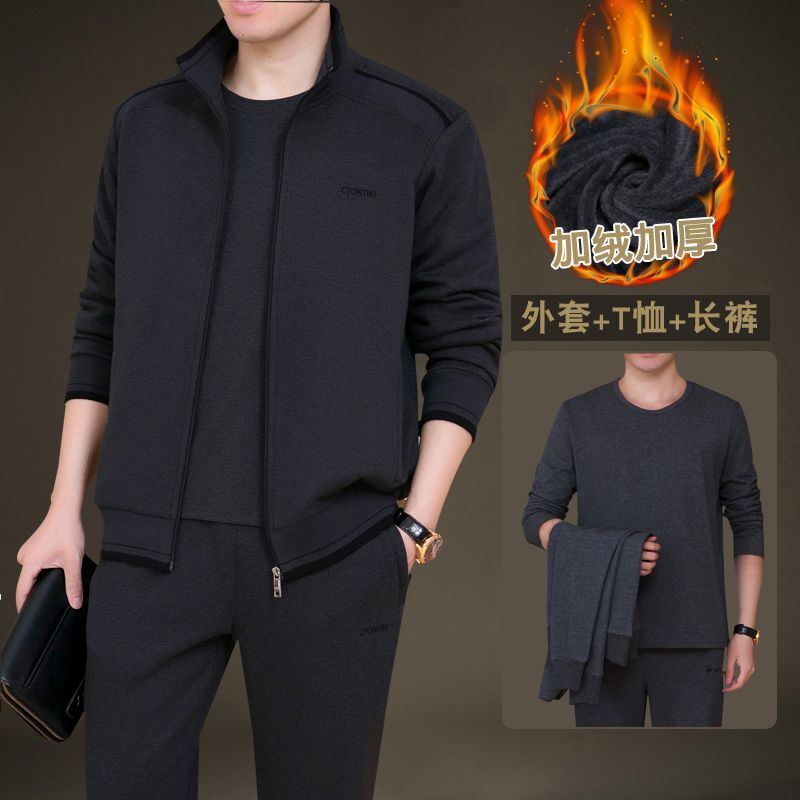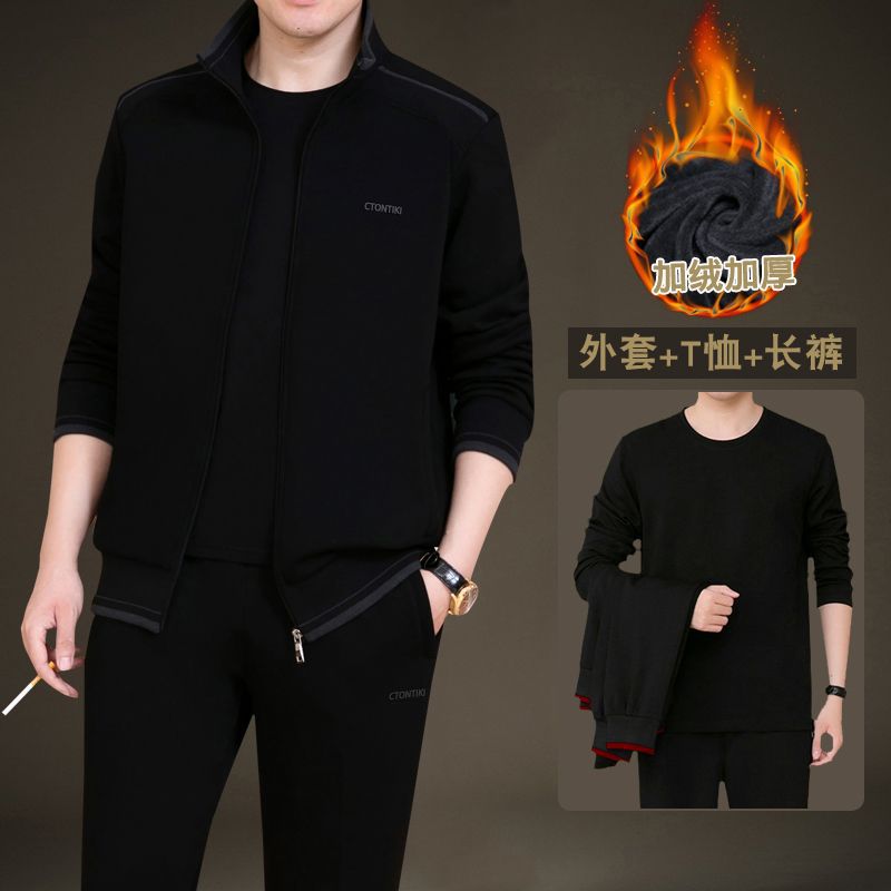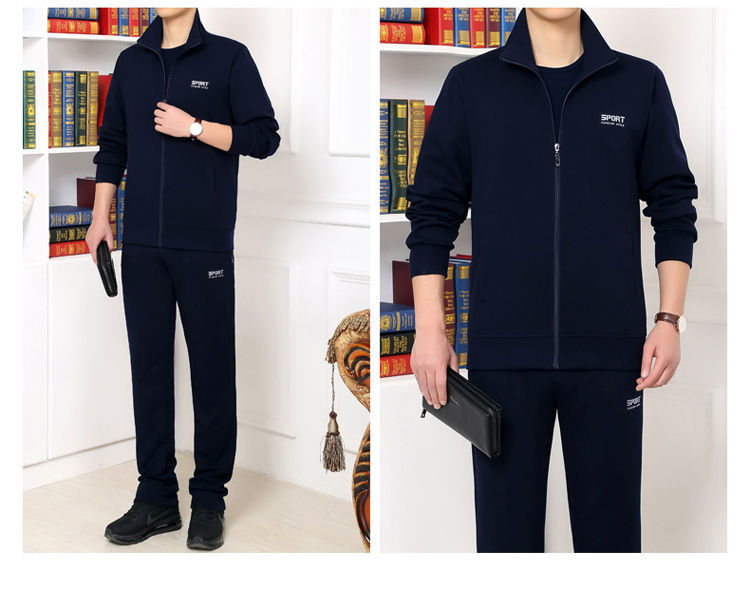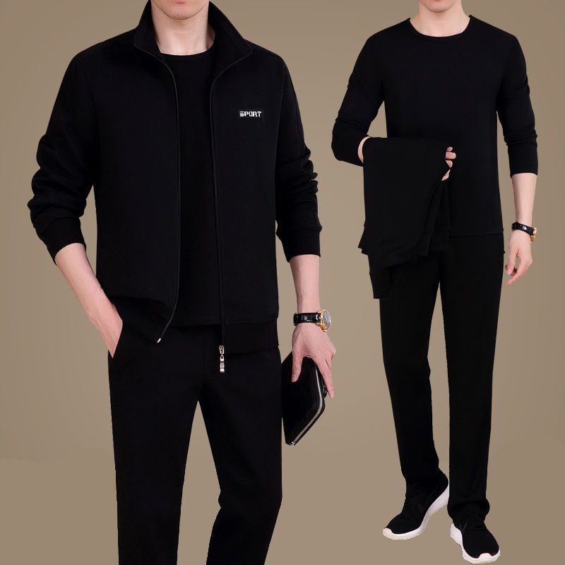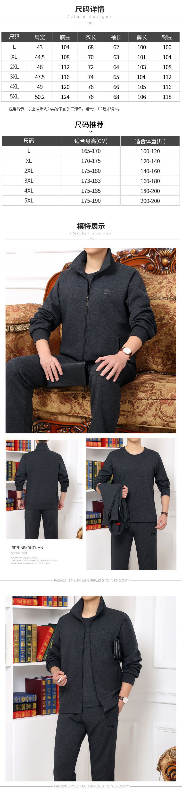 Shanli Dadi 중년 및 노인 남성의 봄과 가을 레저 스포츠 세트 남성용 긴팔 쓰리피스 세트 중년 남성 플러스스토어 가기