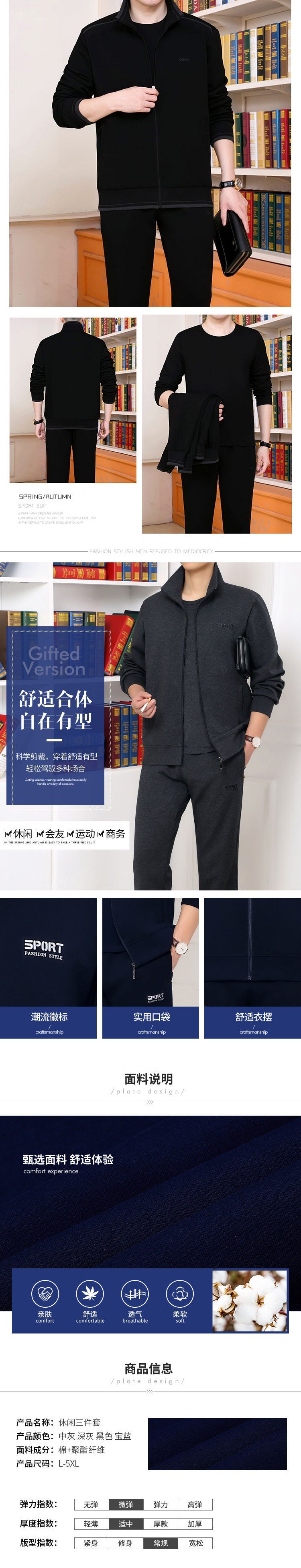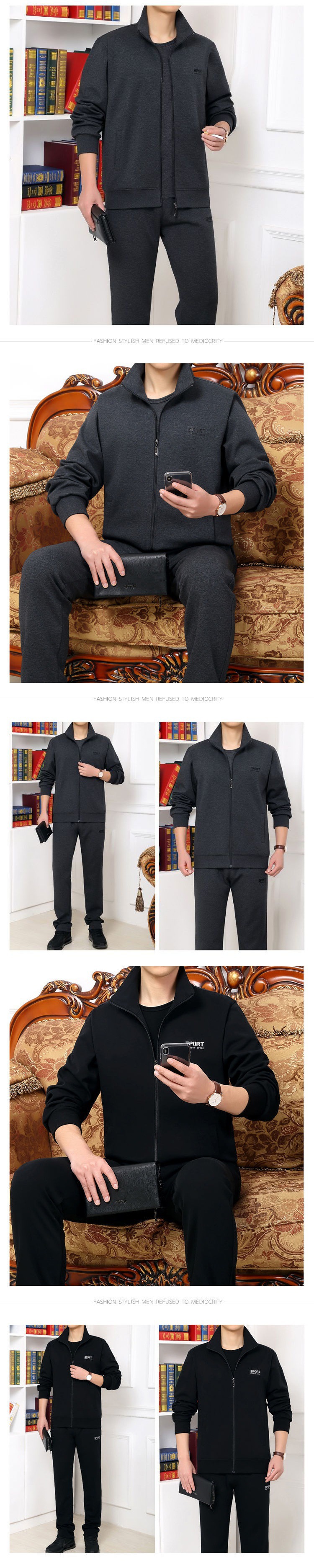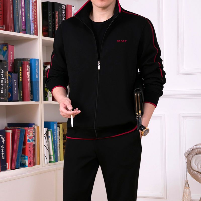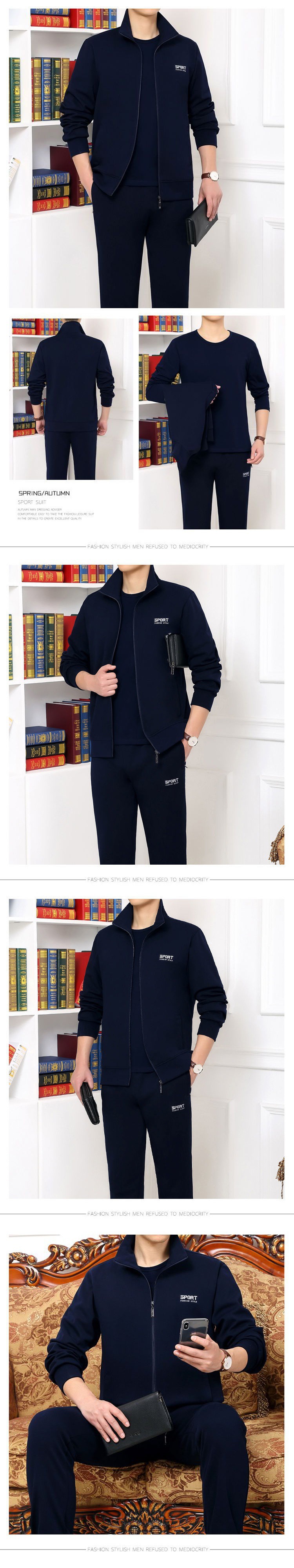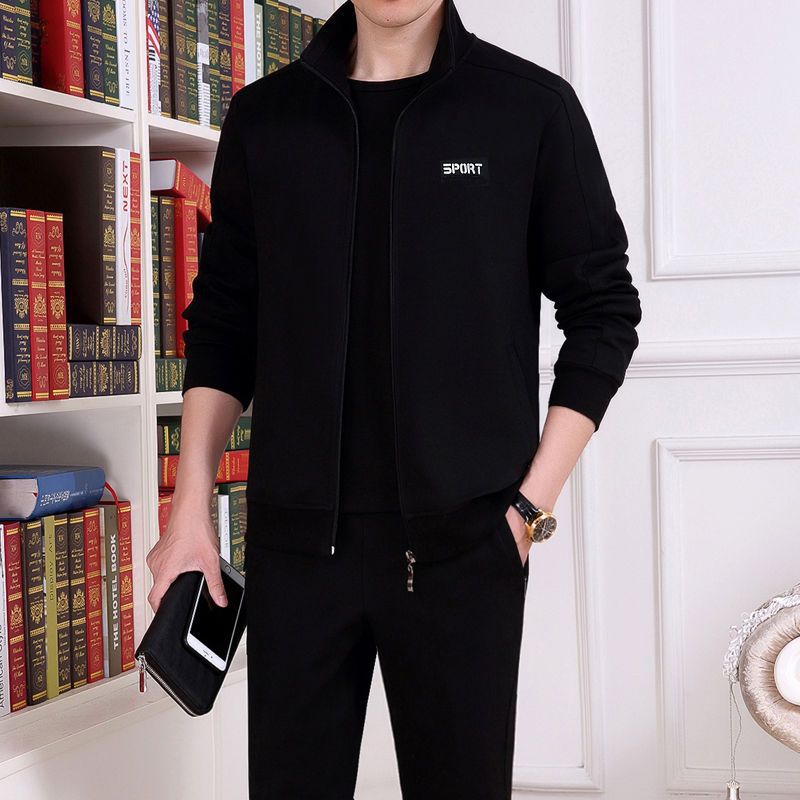 Shanli Dadi 중년 및 노인 남성의 봄과 가을 레저 스포츠 세트 남성용 긴팔 쓰리피스 세트 중년 남성 플러스스토어 가기