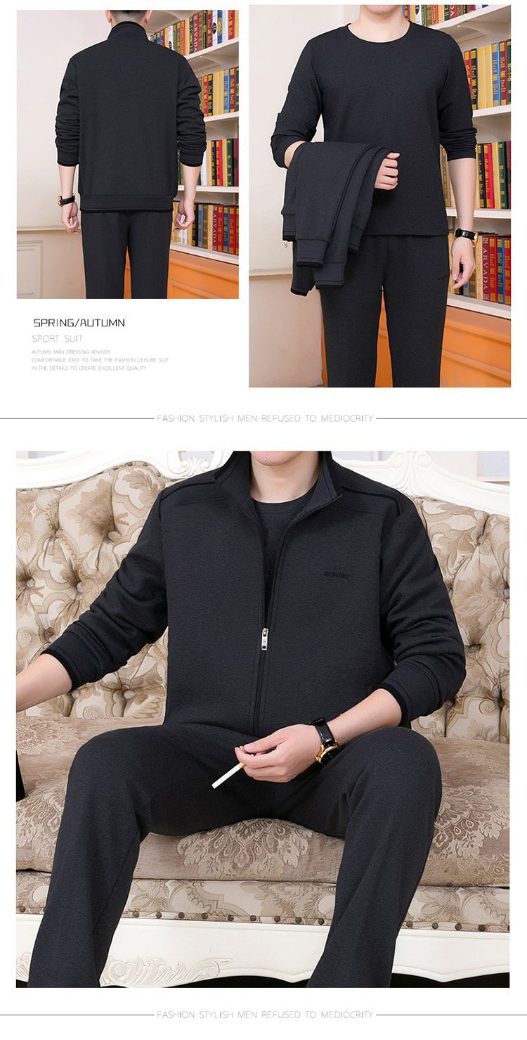 Shanli Dadi 중년 및 노인 남성의 봄과 가을 레저 스포츠 세트 남성용 긴팔 쓰리피스 세트 중년 남성 플러스