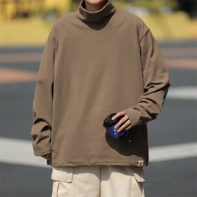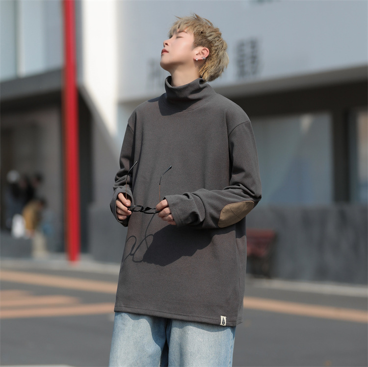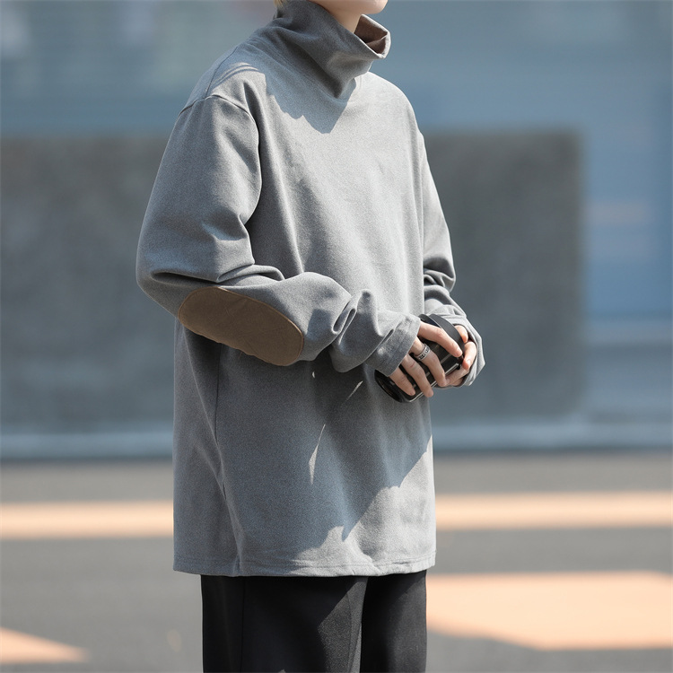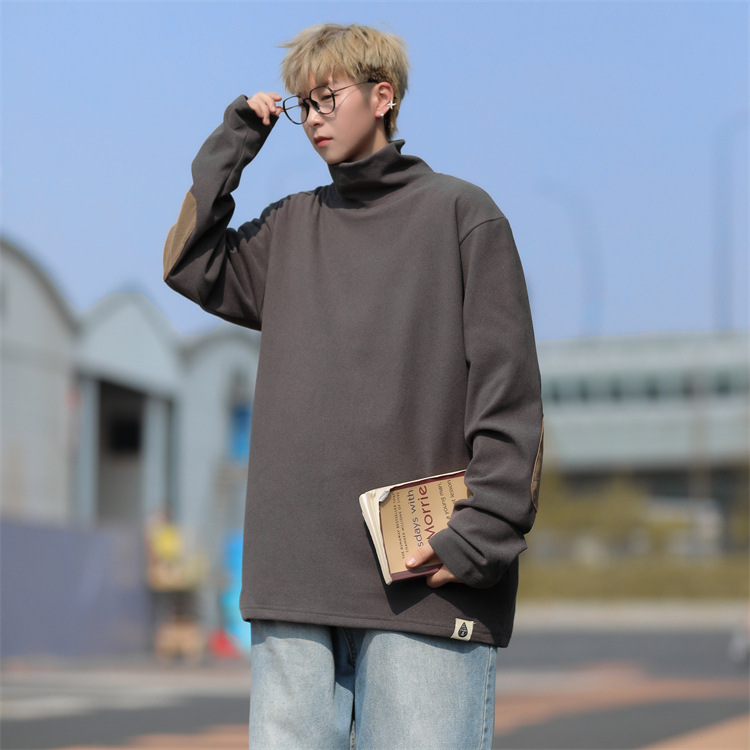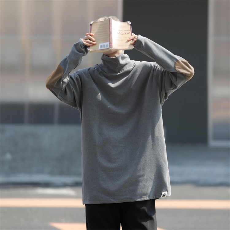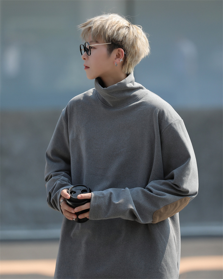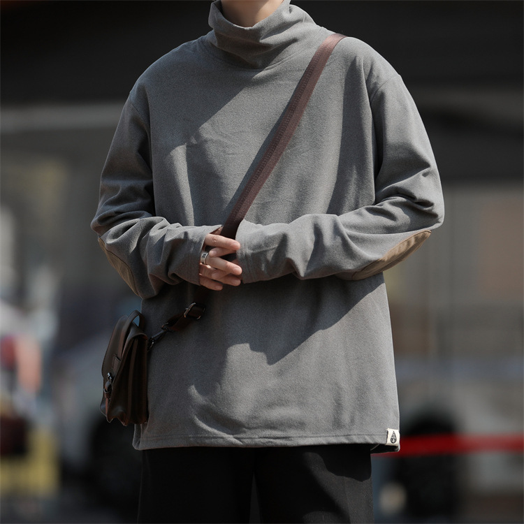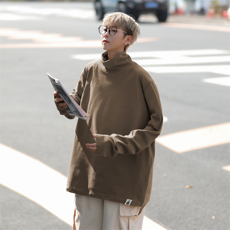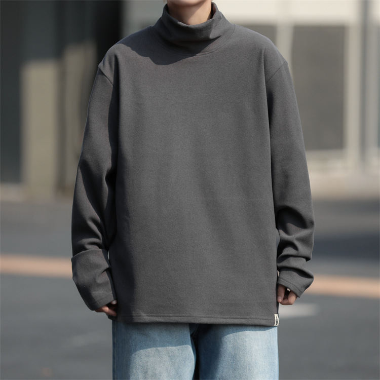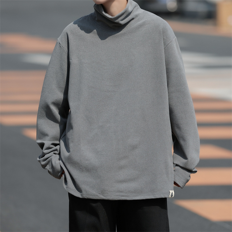 홍콩 스타일 양면 독일 벨벳 남성용 긴팔 티셔츠 느슨한 하이 칼라 캐주얼 트렌드 조커베이스 셔츠 머리카락 세대스토어 가기