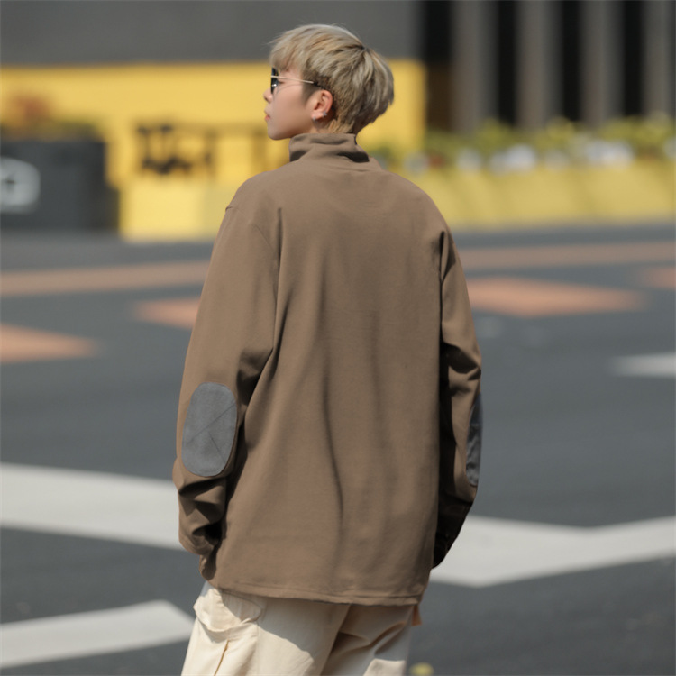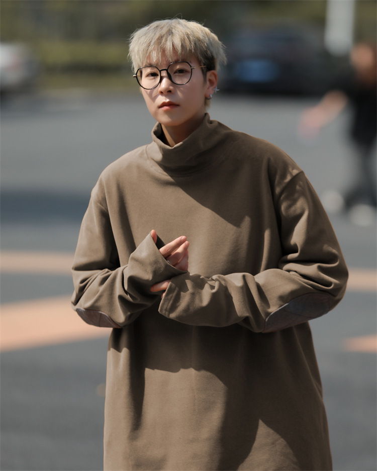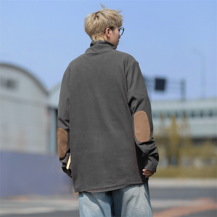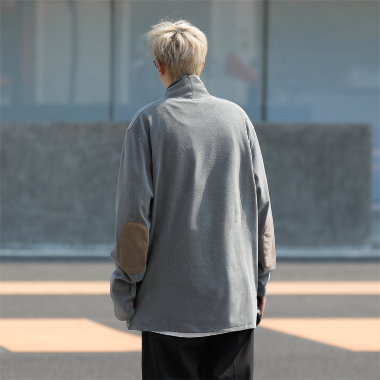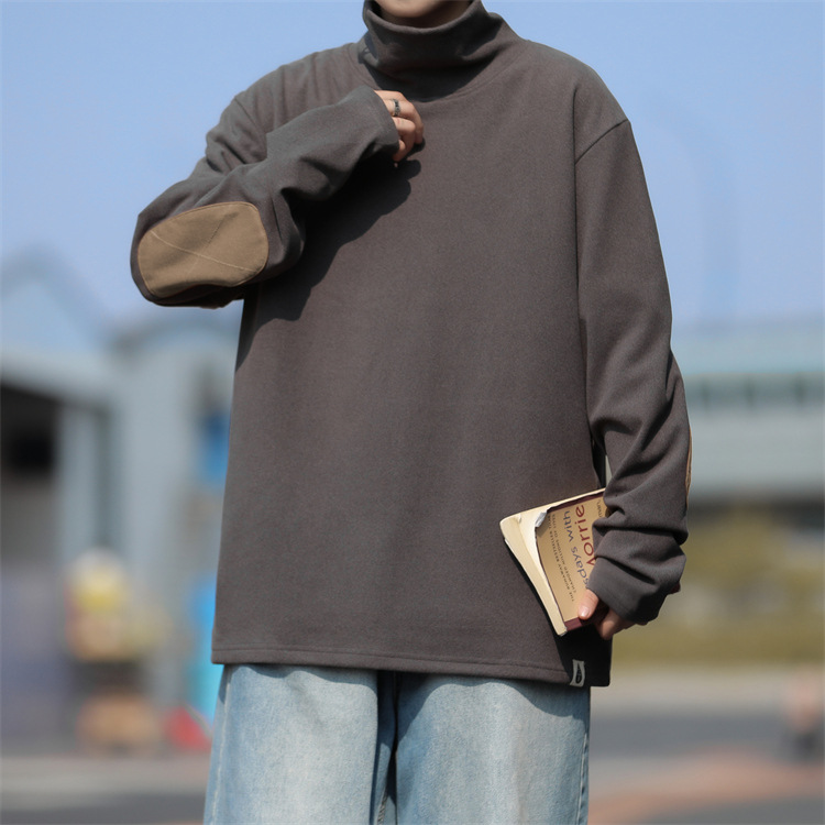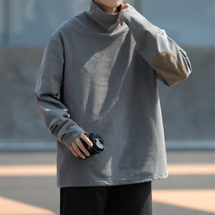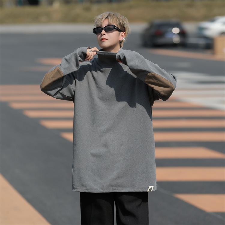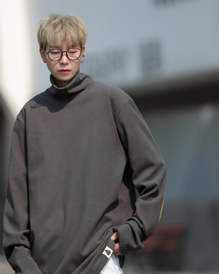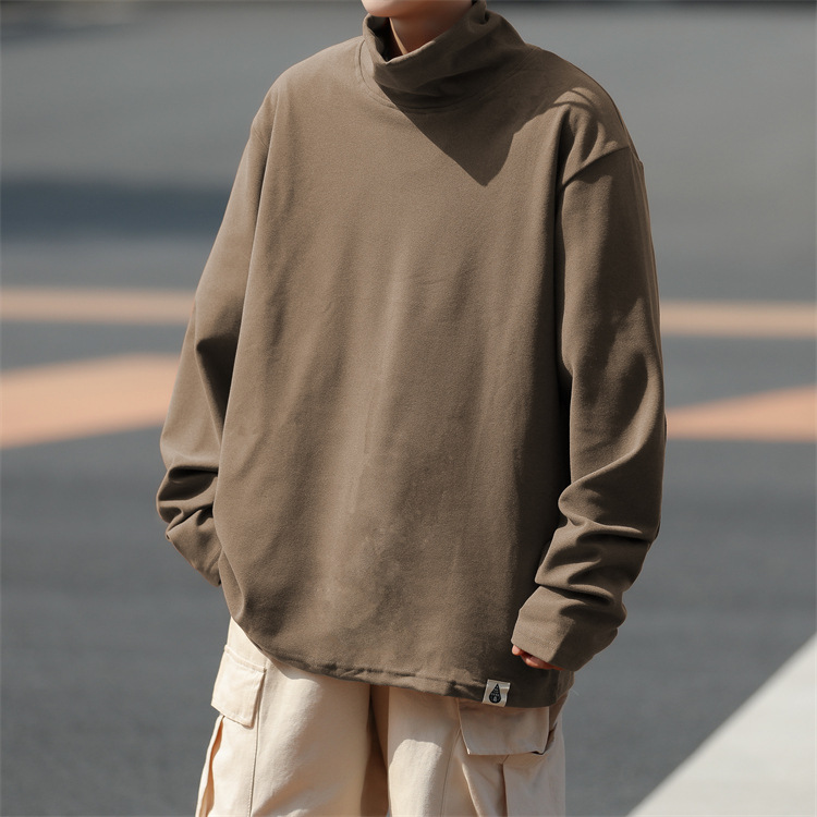 홍콩 스타일 양면 독일 벨벳 남성용 긴팔 티셔츠 느슨한 하이 칼라 캐주얼 트렌드 조커베이스 셔츠 머리카락 세대스토어 가기