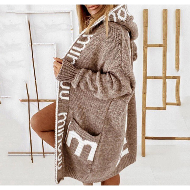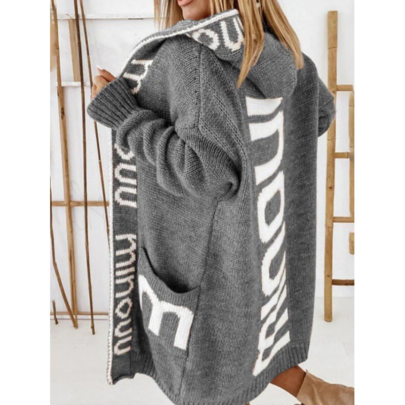 여성용 크로스보더 레터 니트 가디건 2024 가을 겨울 신상 중간 길이 유럽풍 루즈핏 니트 자켓