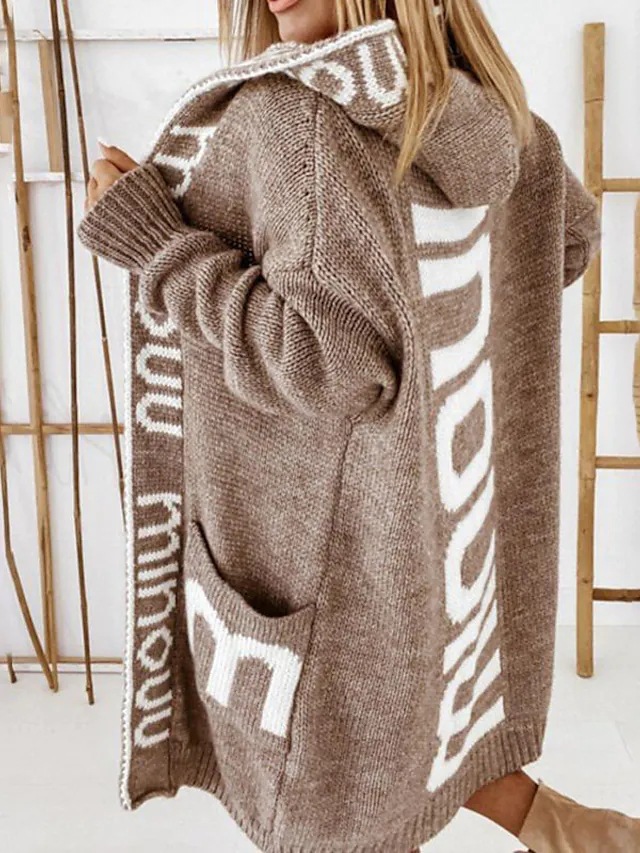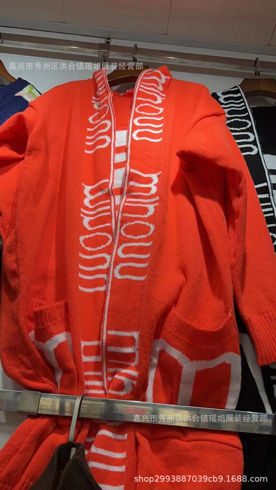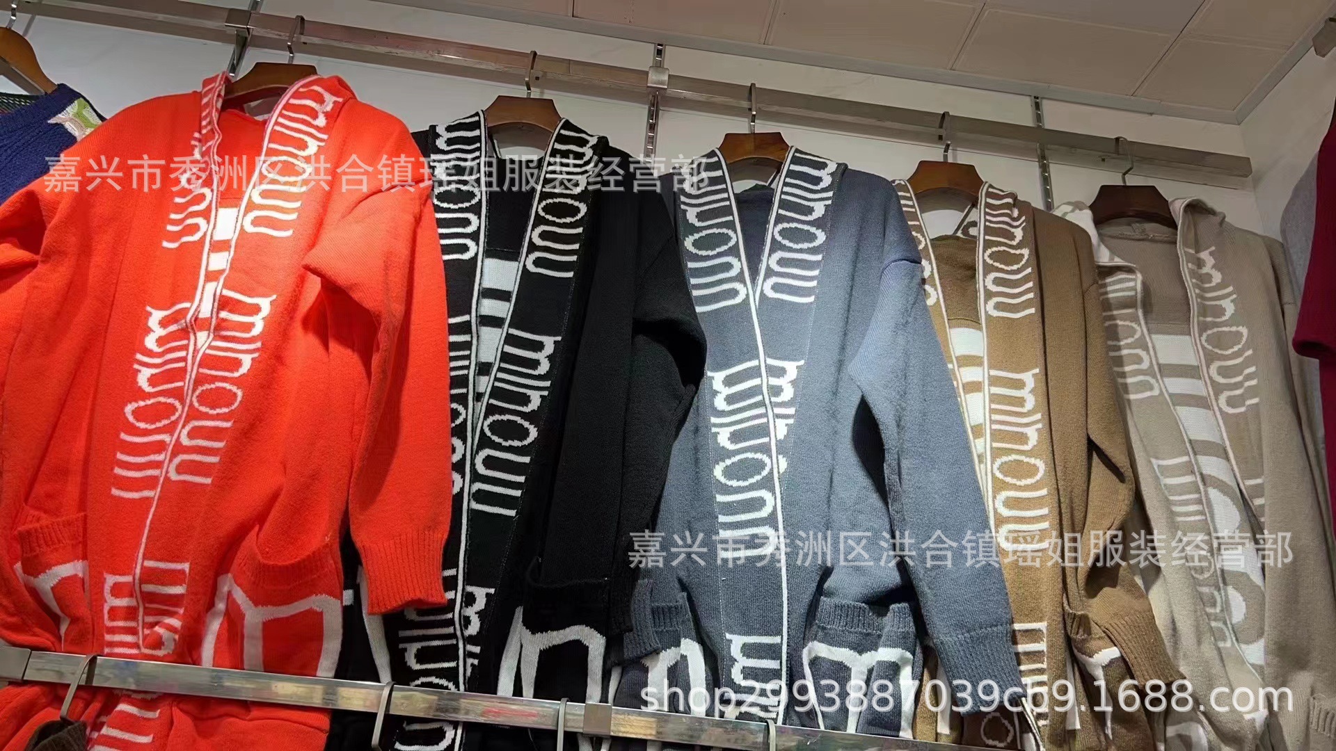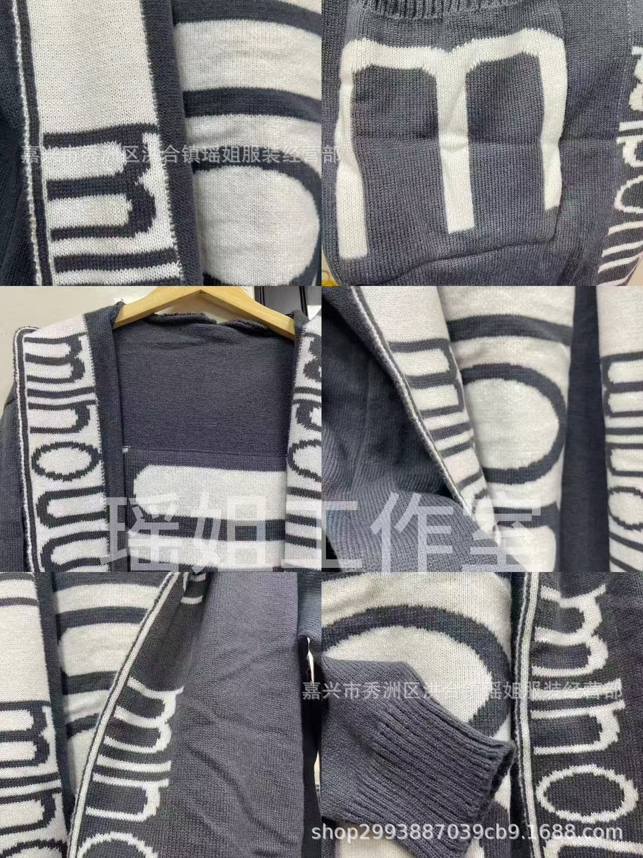 여성용 크로스보더 레터 니트 가디건 2024 가을 겨울 신상 중간 길이 유럽풍 루즈핏 니트 자켓스토어 가기