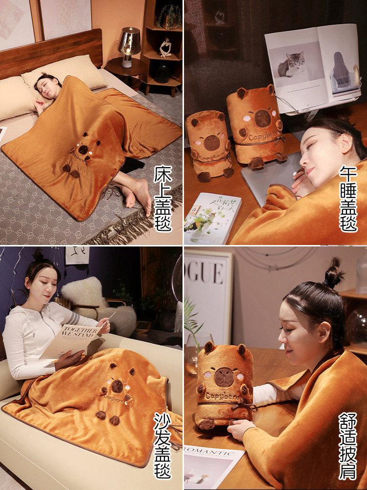 만화 귀여운 카피 바라 접이식 점심 시간 롤 담요 사무실 낮잠 담요 휴일 창조적 인 선물 선물스토어 가기
