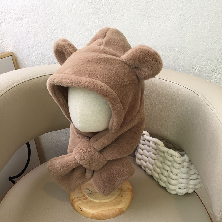 아기의 겨울 따뜻한 모자와 스카프 원피스 기모 두꺼운 방풍 귀 보호 소년 소녀 두꺼운 봉제 모자