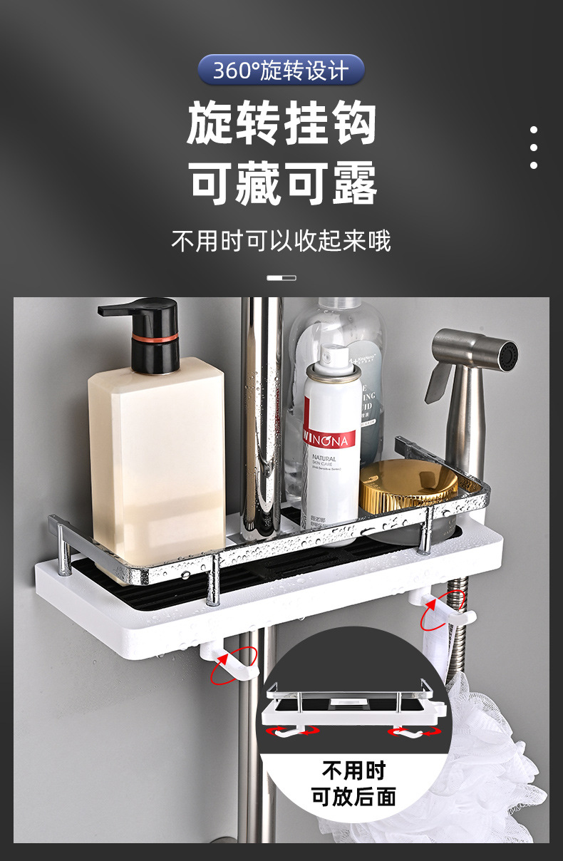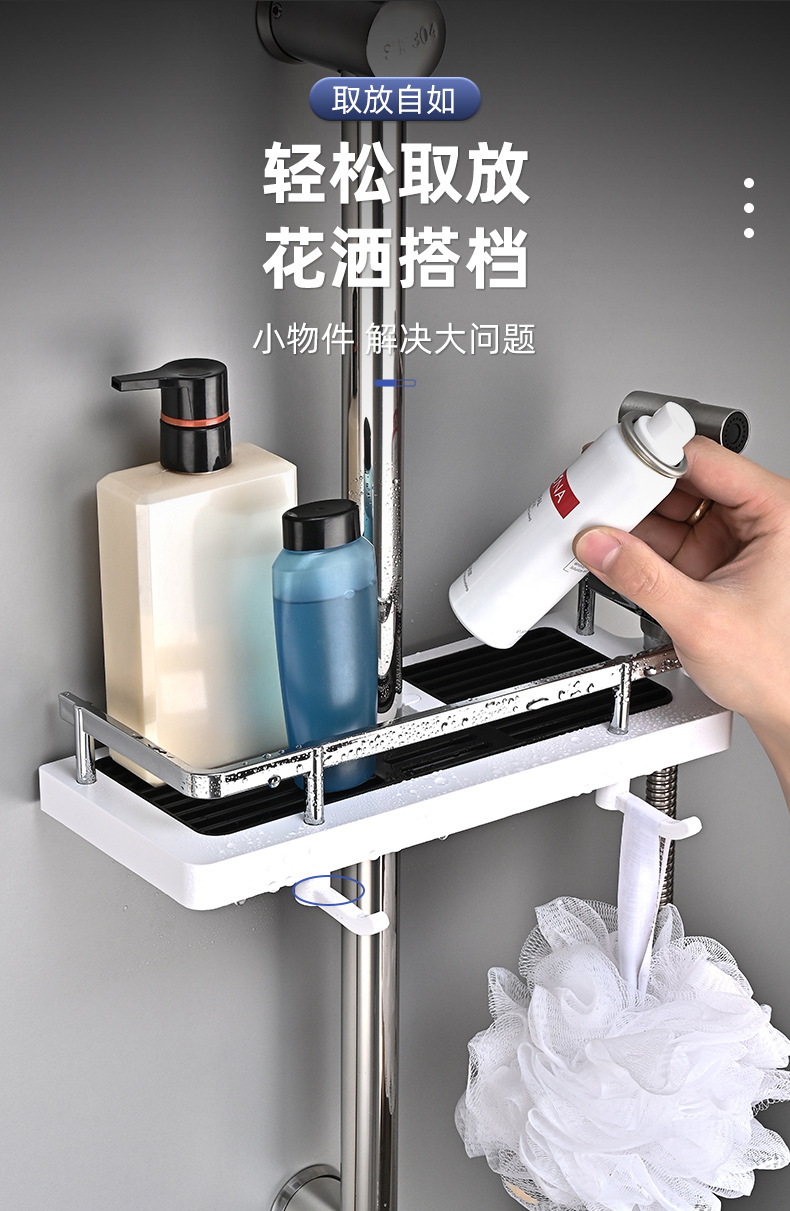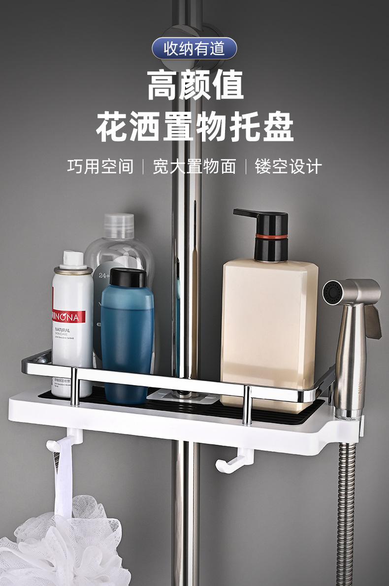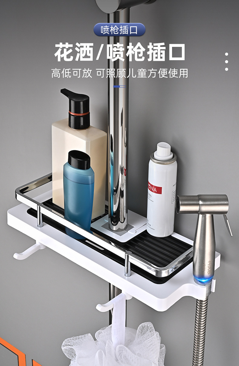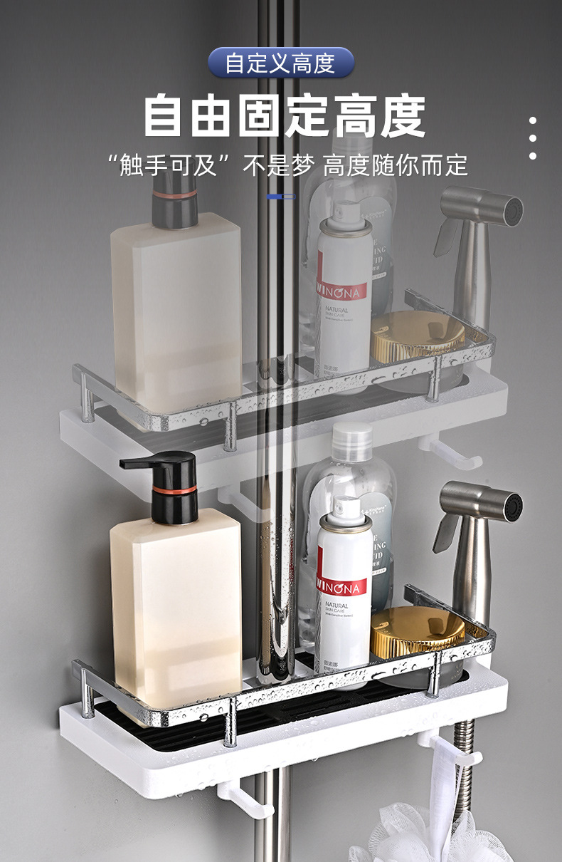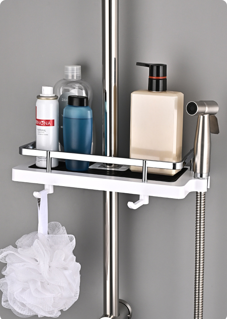샤워실 욕실장 수납 선반 무타공 화장실 봉 트레이 가정용 수납 바구니 걸이 플라스틱 화장실