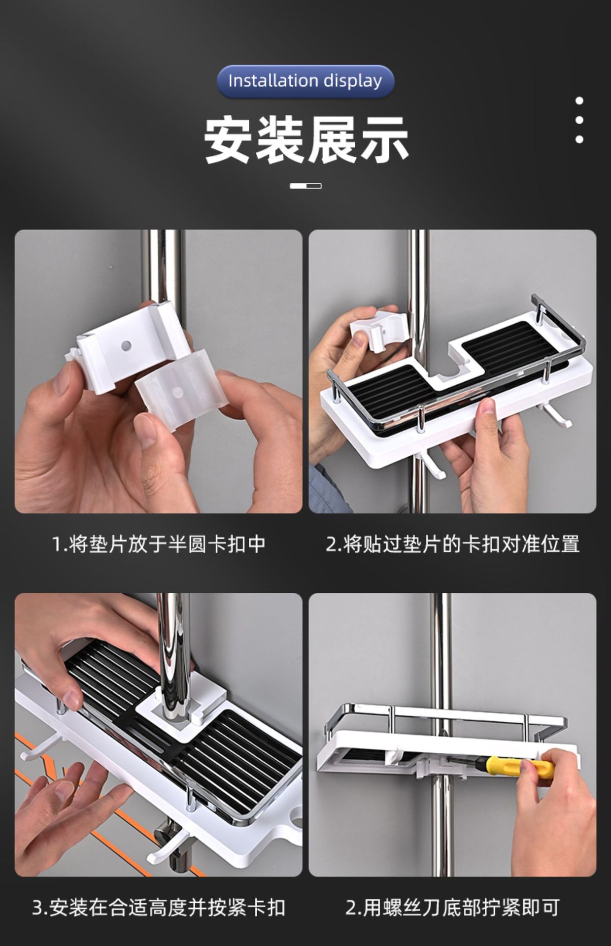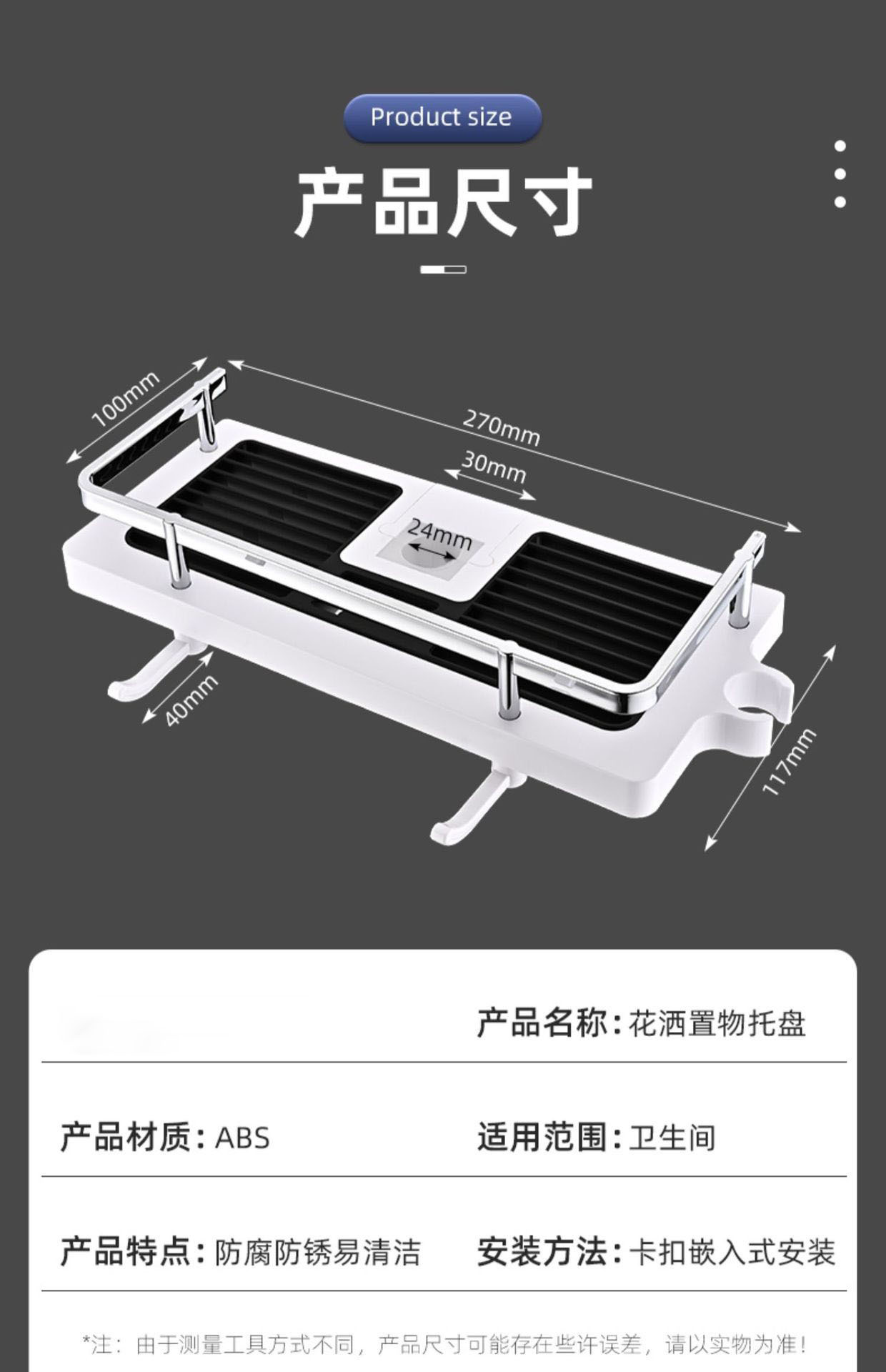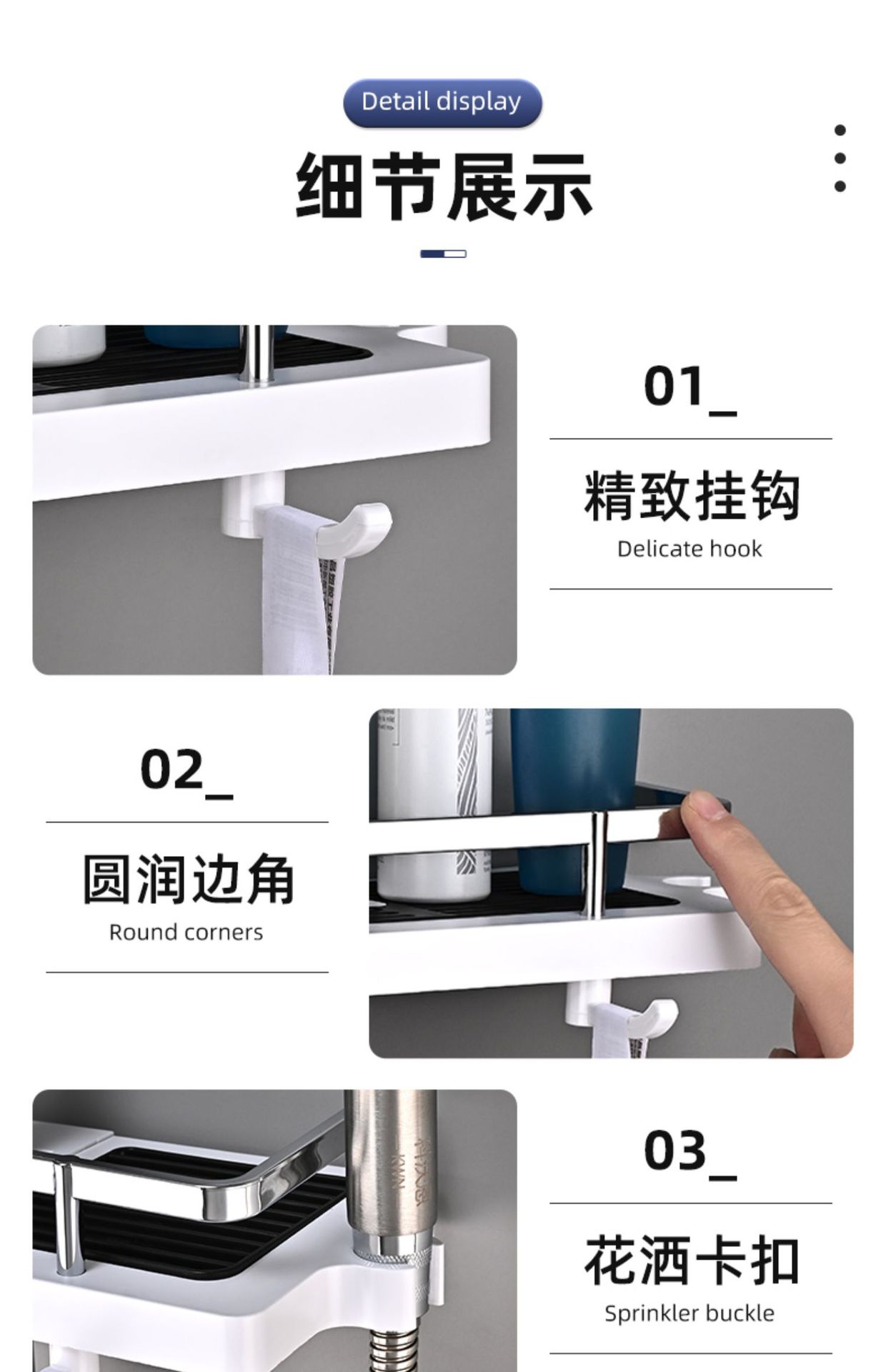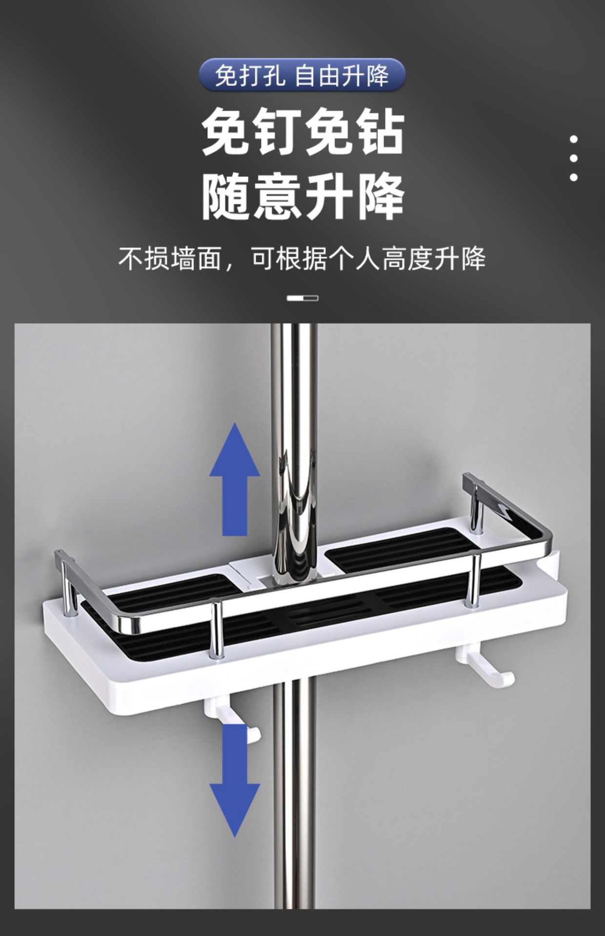 샤워실 욕실장 수납 선반 무타공 화장실 봉 트레이 가정용 수납 바구니 걸이 플라스틱 화장실