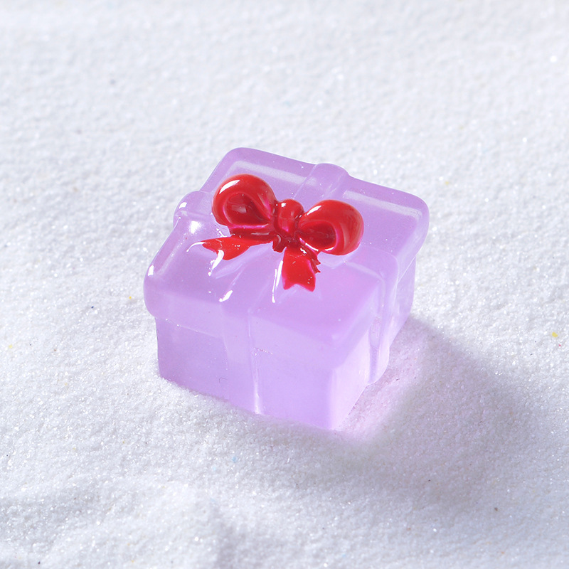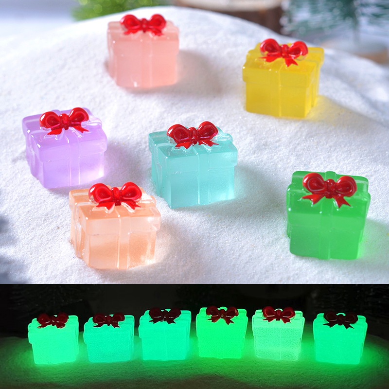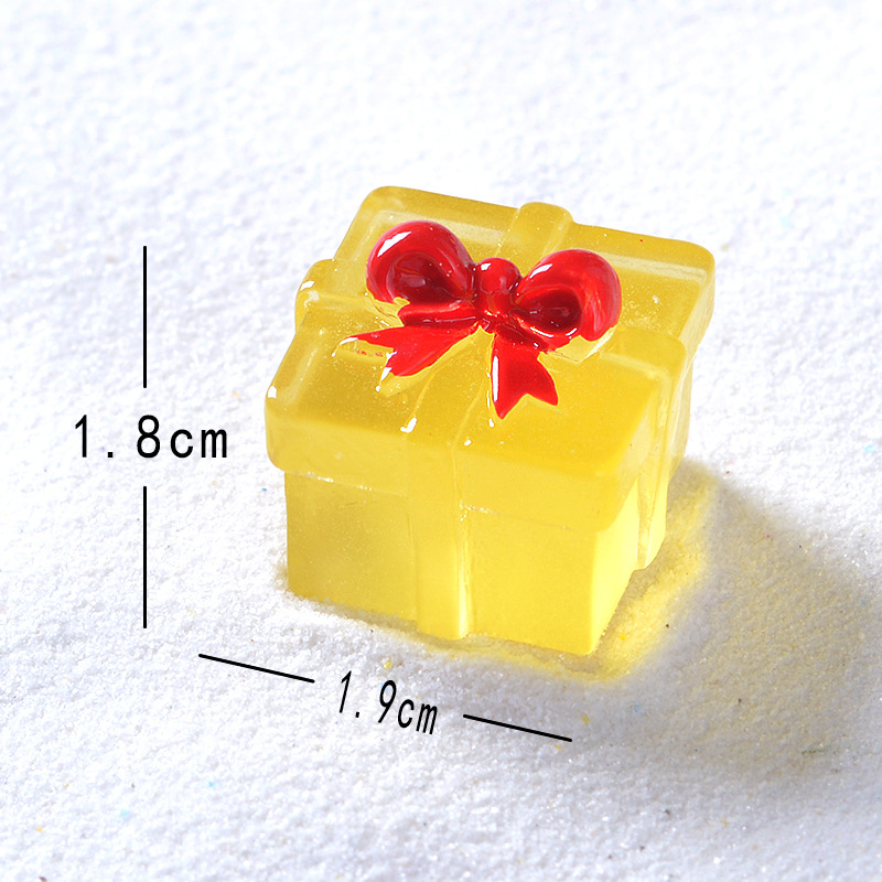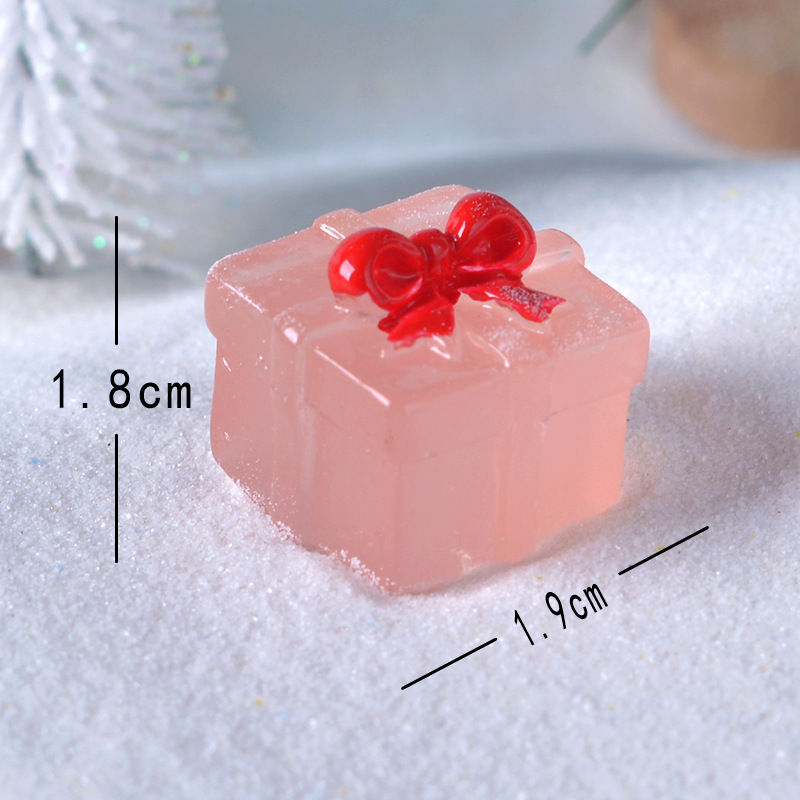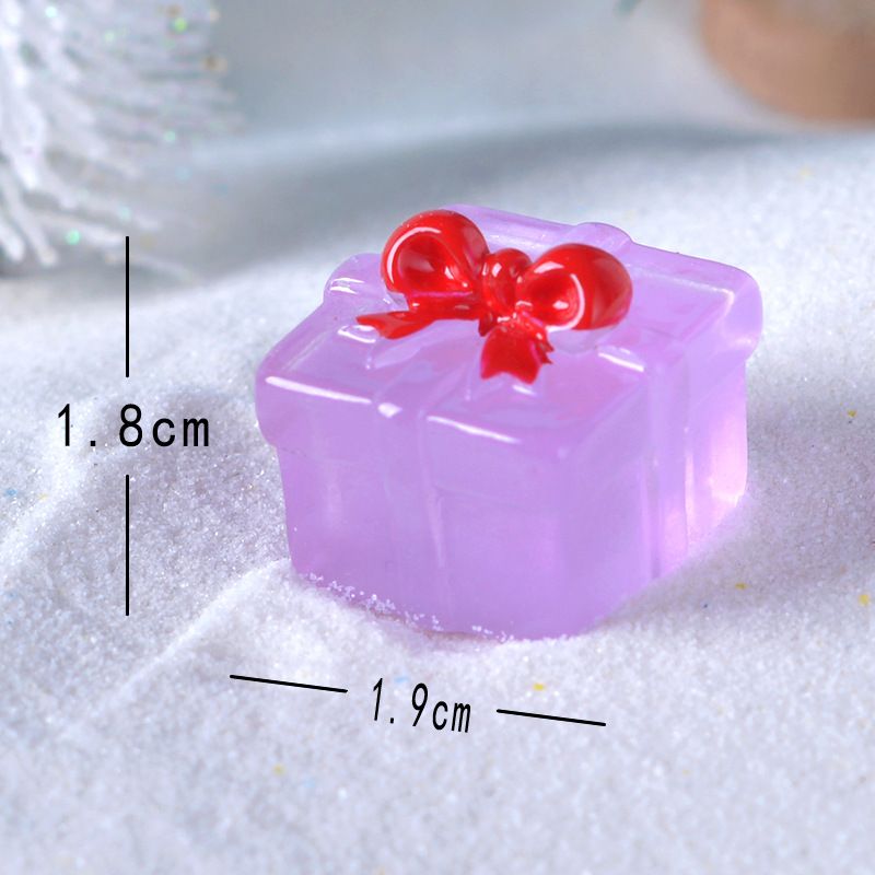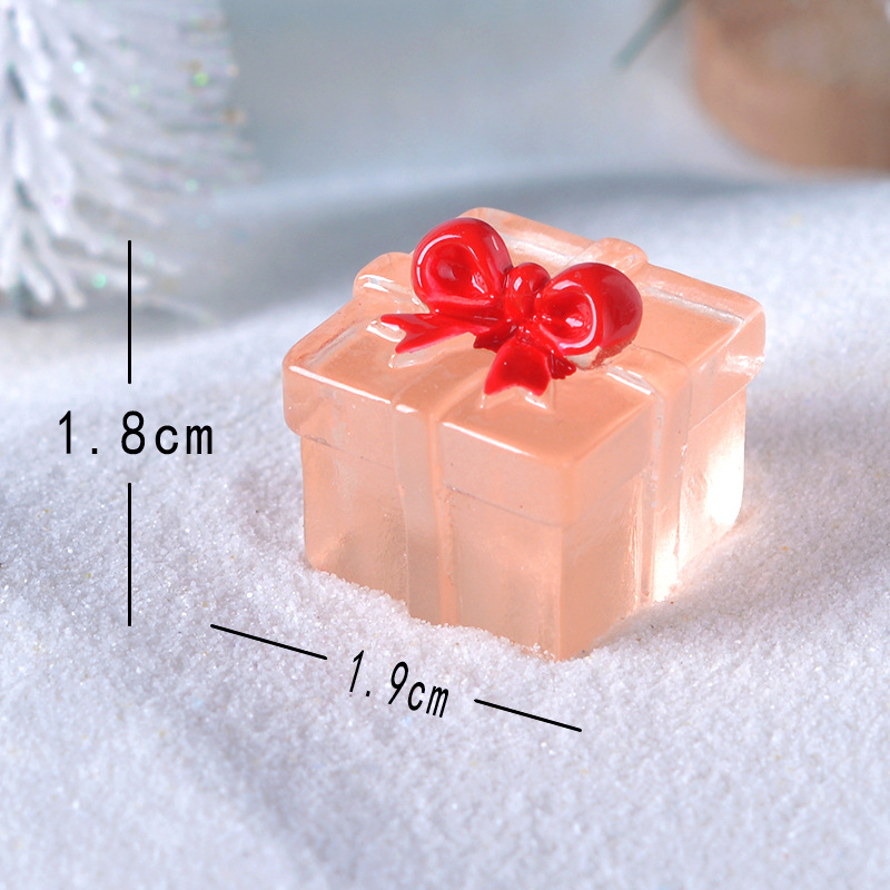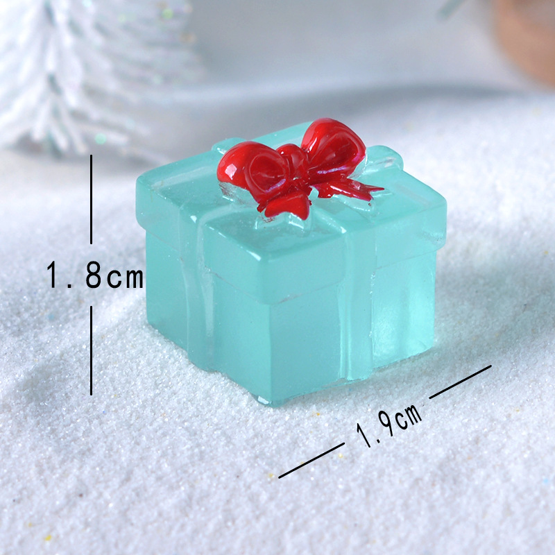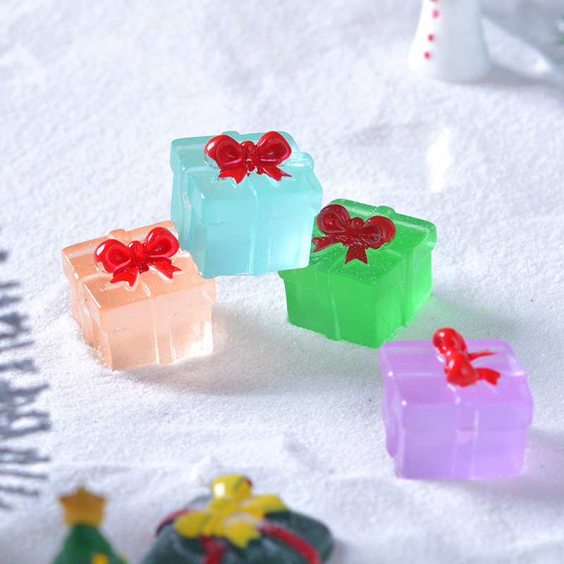 새로운 크리스마스 빛나는 사각형 크리스마스 선물 상자 마이크로 풍경 수지 장식품 컬러 투명 선물 상자 DIY 액세서리