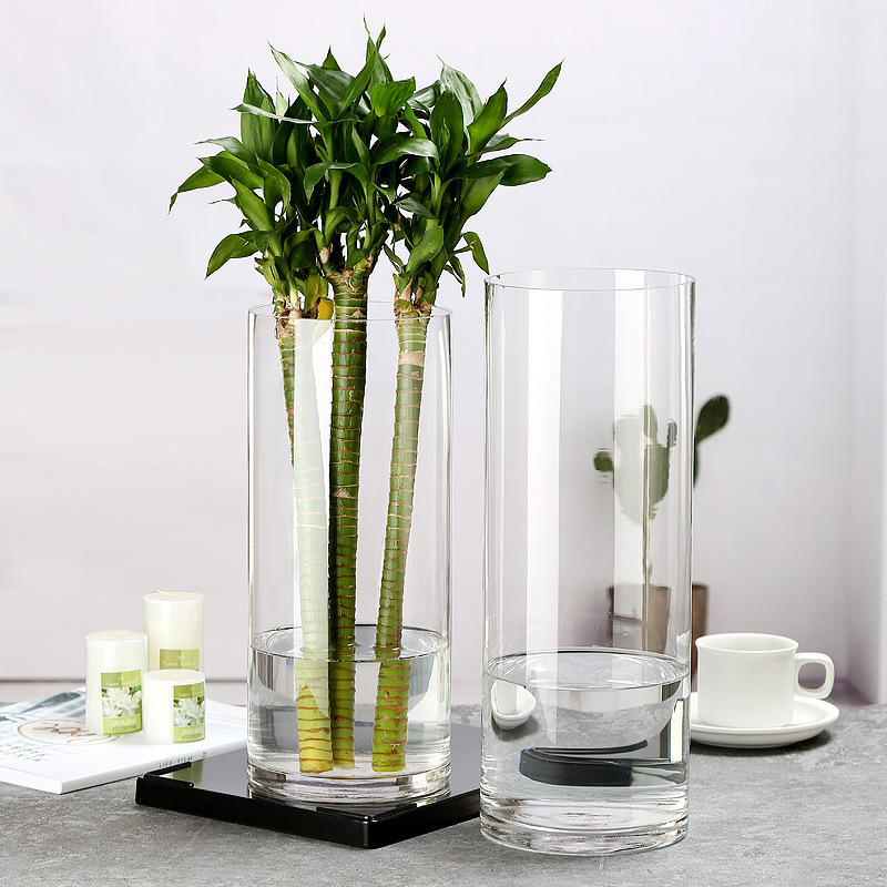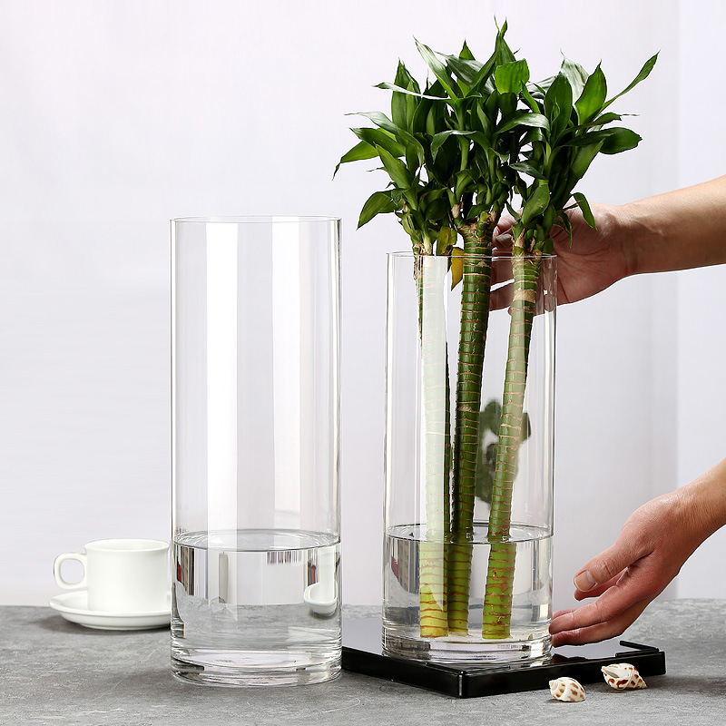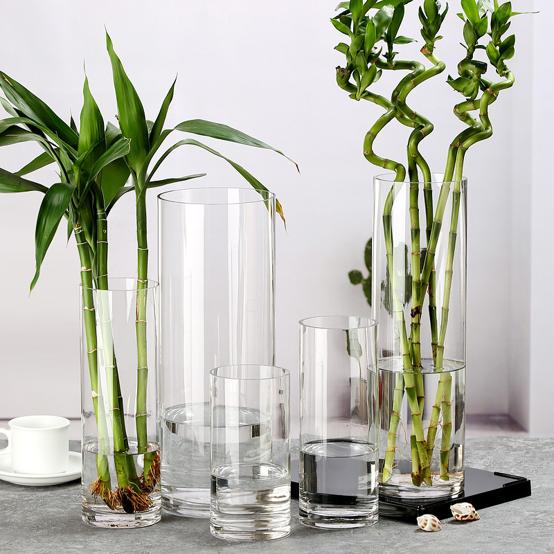 투명한 직선 유리 꽃병 대형 바닥 스탠딩 거실 풍부한 대나무 꽃 수경 식물 용기 수조 조경 병스토어 가기
