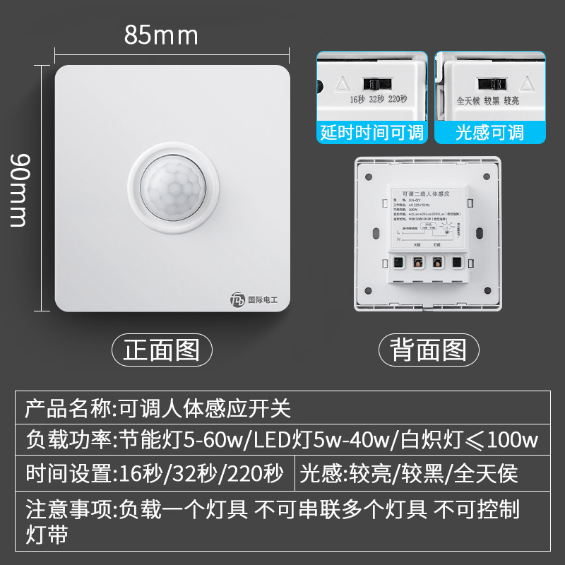 적외선 인체 유도 스위치 패널 86 형 220V 복도 지능형 조명 제어 LED 조명 지연 스위치
