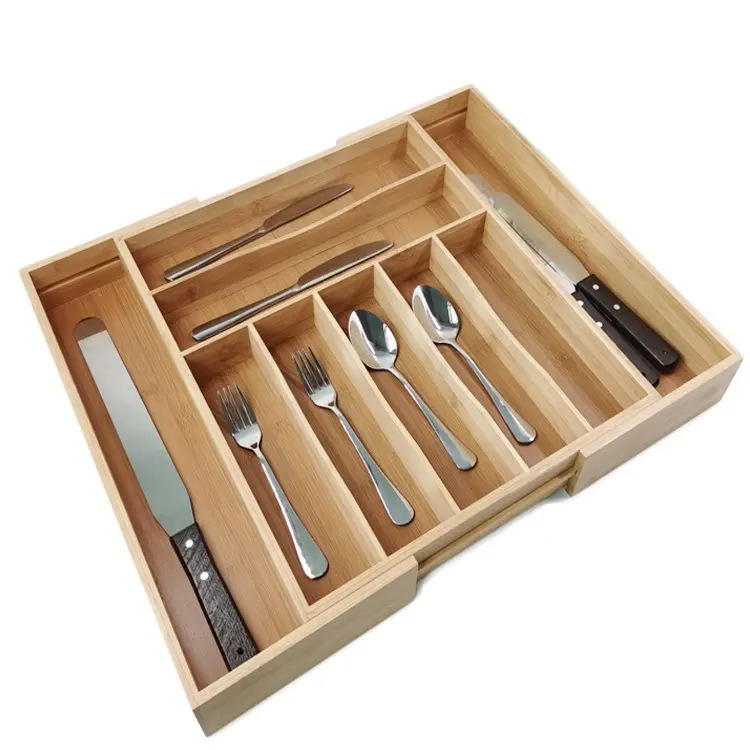 대나무 서랍 구성 식기 나이프와 포크 저장 상자 개폐식 가정용 주방