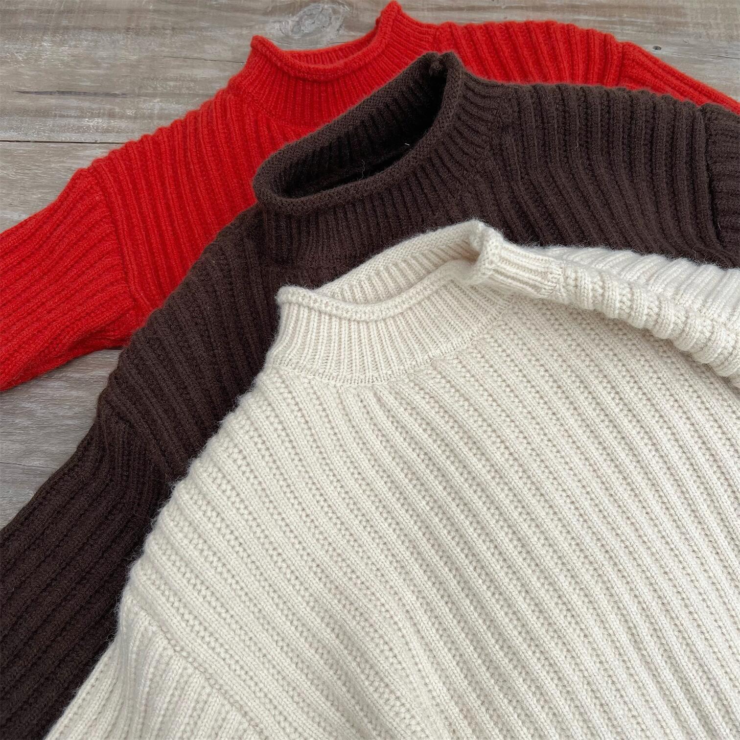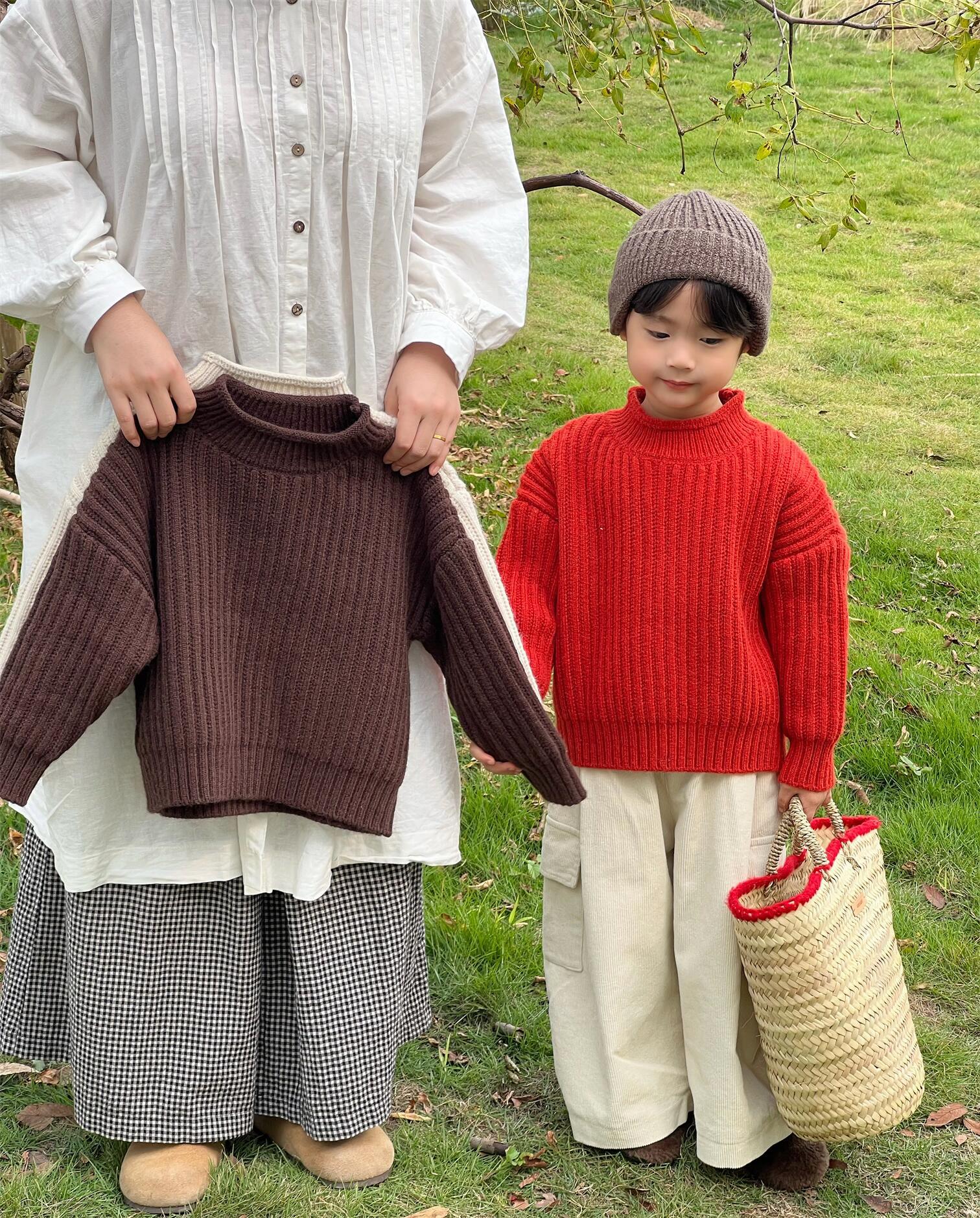 탑 에그 한국 아동복 2023 겨울 새로운 어린이 스웨터 레트로 하프 하이 넥 두꺼운 모리 니트웨어스토어 가기