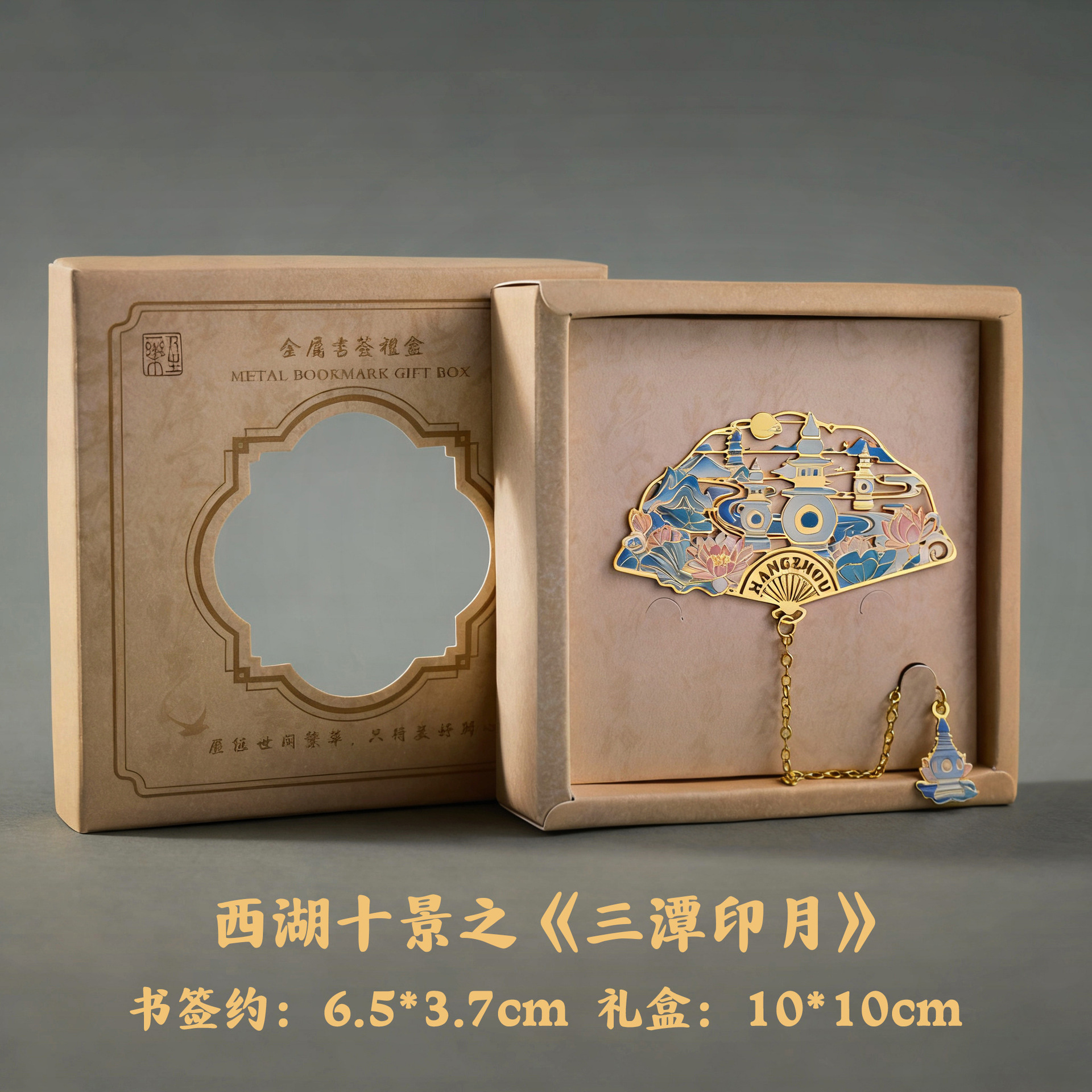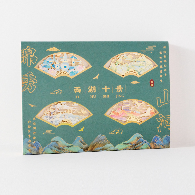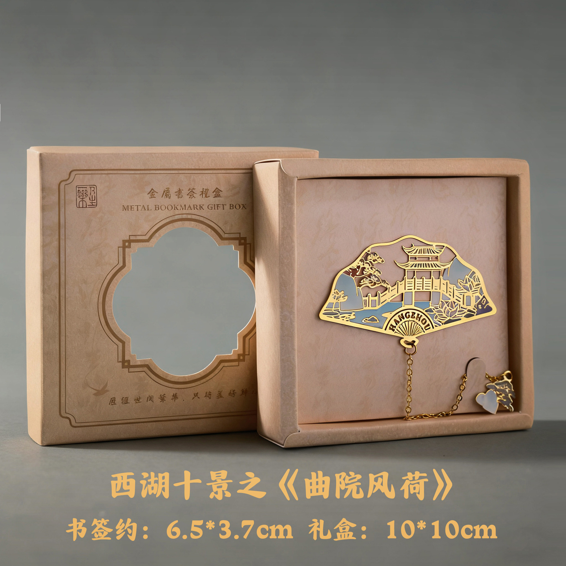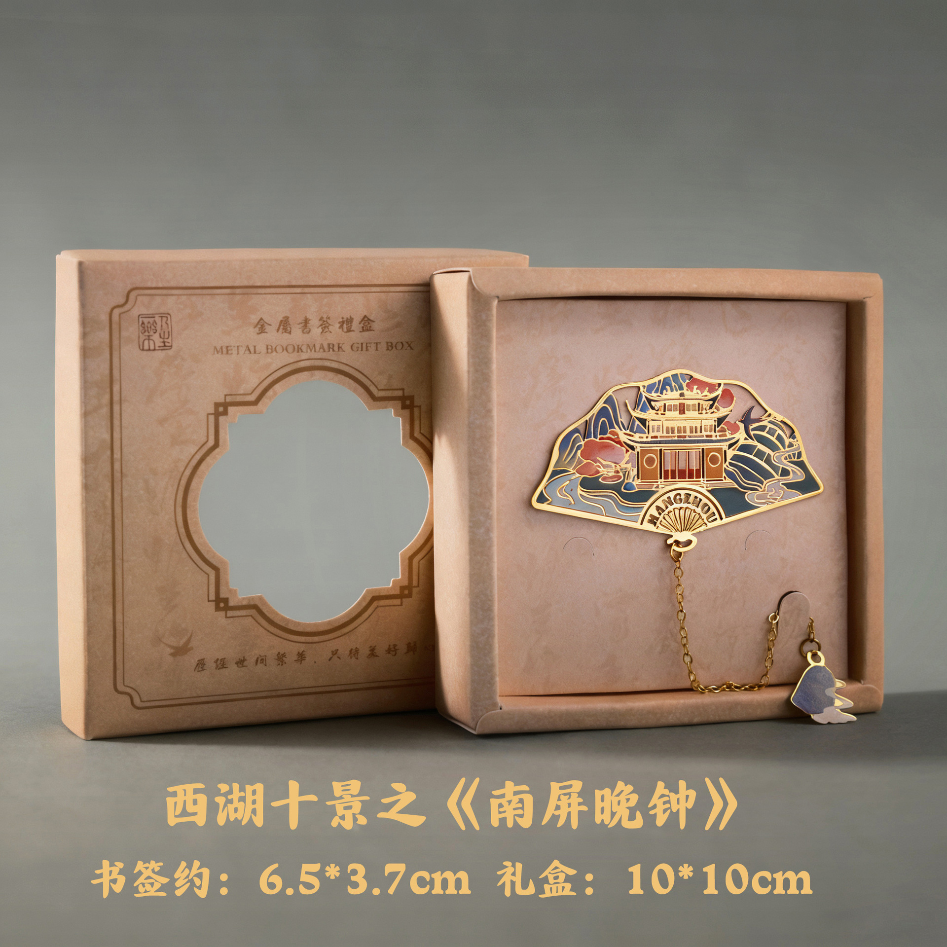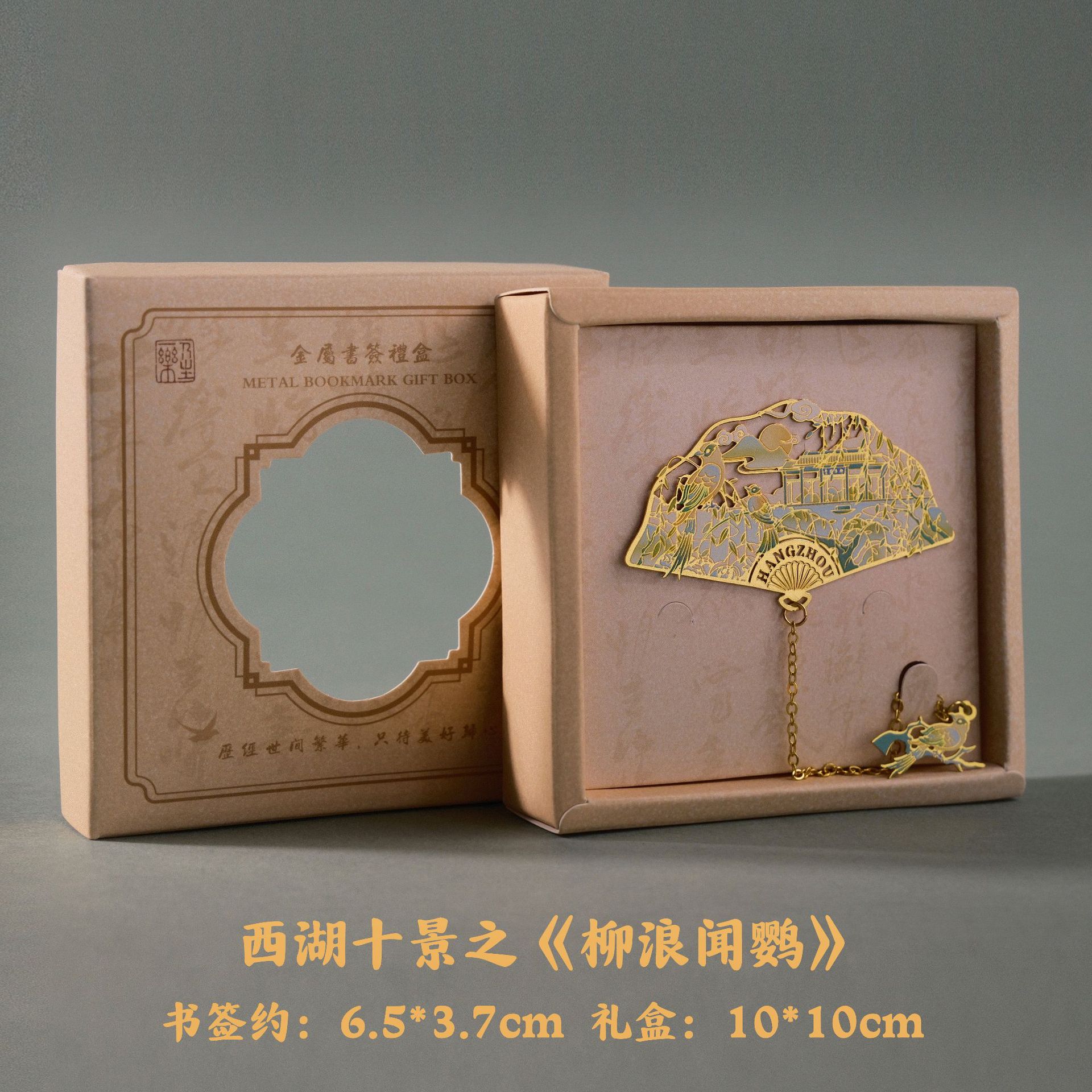 항저우 문화 및 관광 금속 책갈피 명소 기념 고전 중국 스타일 중공 서호 10경 랜드마크 문화 및 창의적 선물 상자