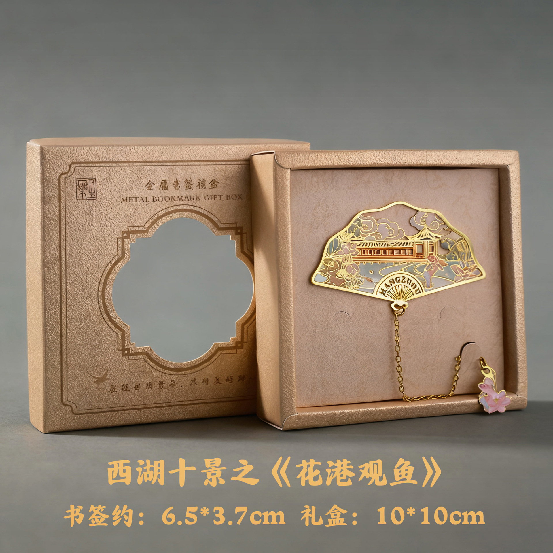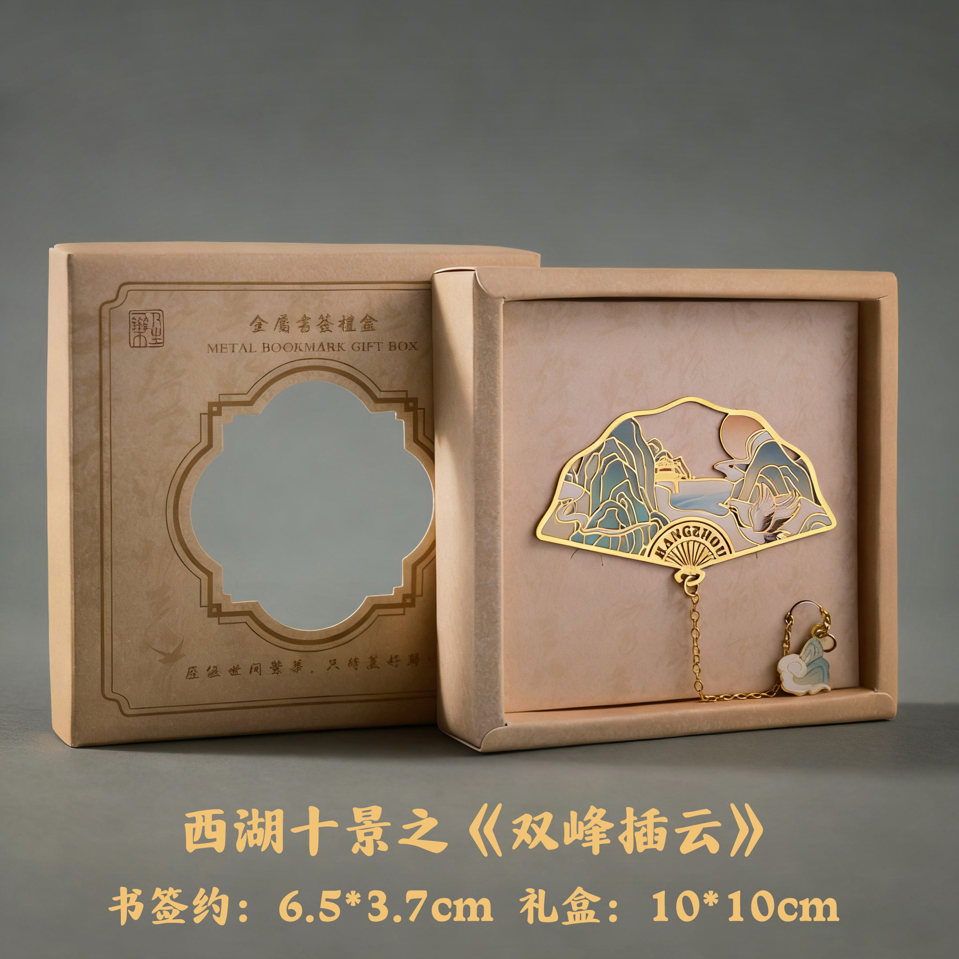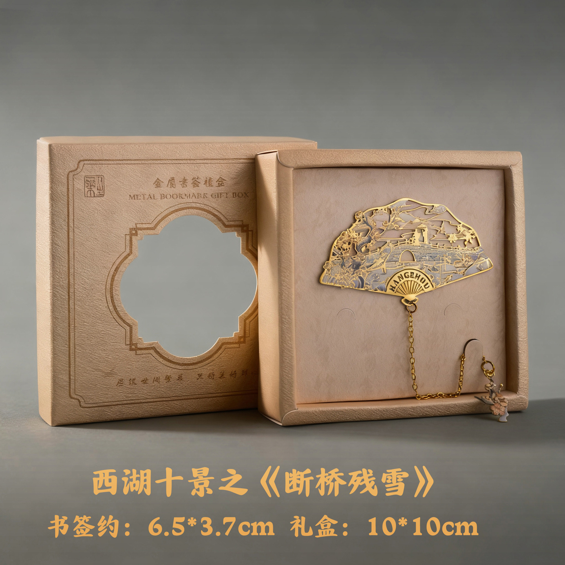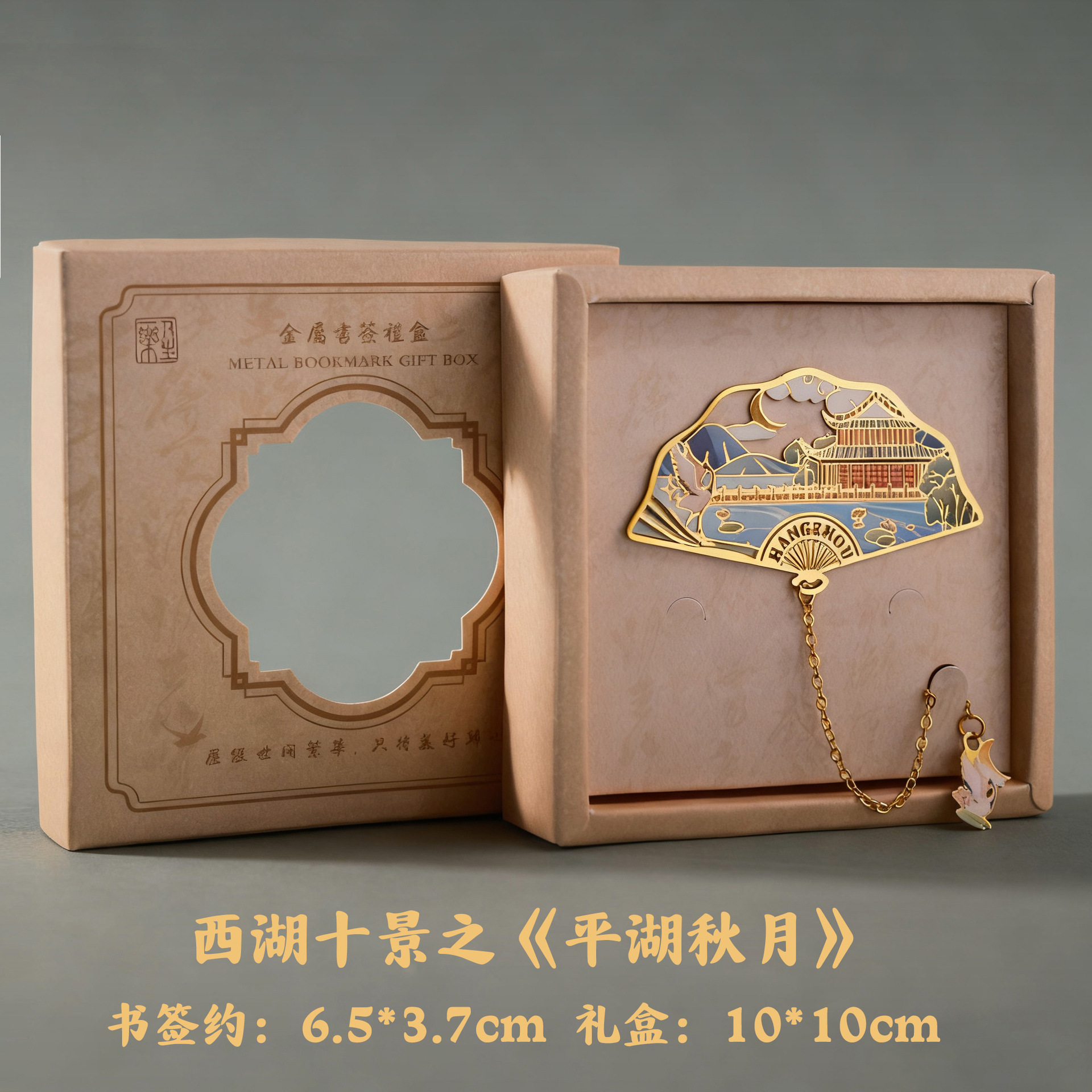 항저우 문화 및 관광 금속 책갈피 명소 기념 고전 중국 스타일 중공 서호 10경 랜드마크 문화 및 창의적 선물 상자