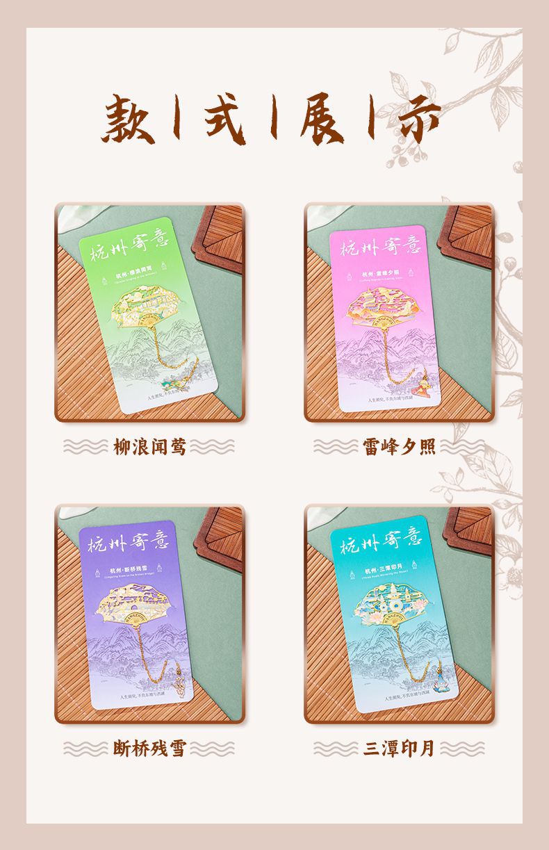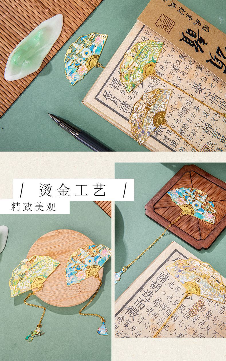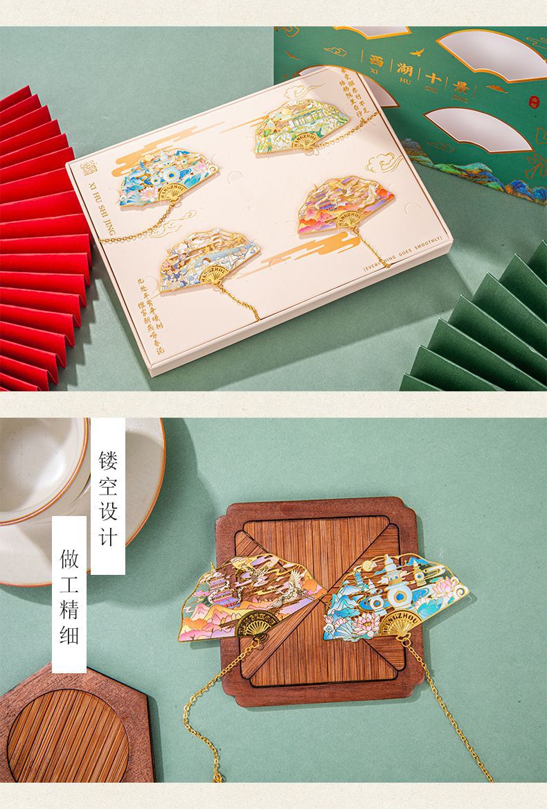 항저우 문화 및 관광 금속 책갈피 명소 기념 고전 중국 스타일 중공 서호 10경 랜드마크 문화 및 창의적 선물 상자스토어 가기