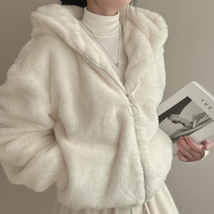 2023 새로운 한국 가을과 겨울 프랑스 틈새 지퍼 후드 따뜻한 캐주얼 스포츠 플러시 코트 여성스토어 가기