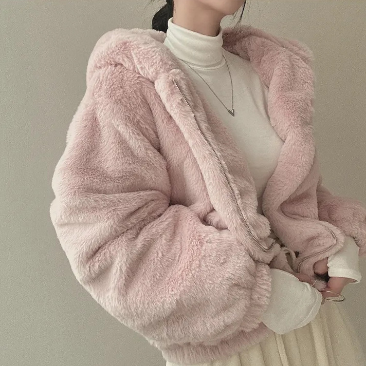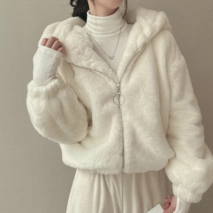 2023 새로운 한국 가을과 겨울 프랑스 틈새 지퍼 후드 따뜻한 캐주얼 스포츠 플러시 코트 여성