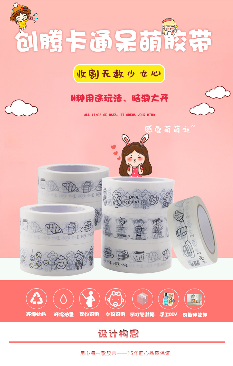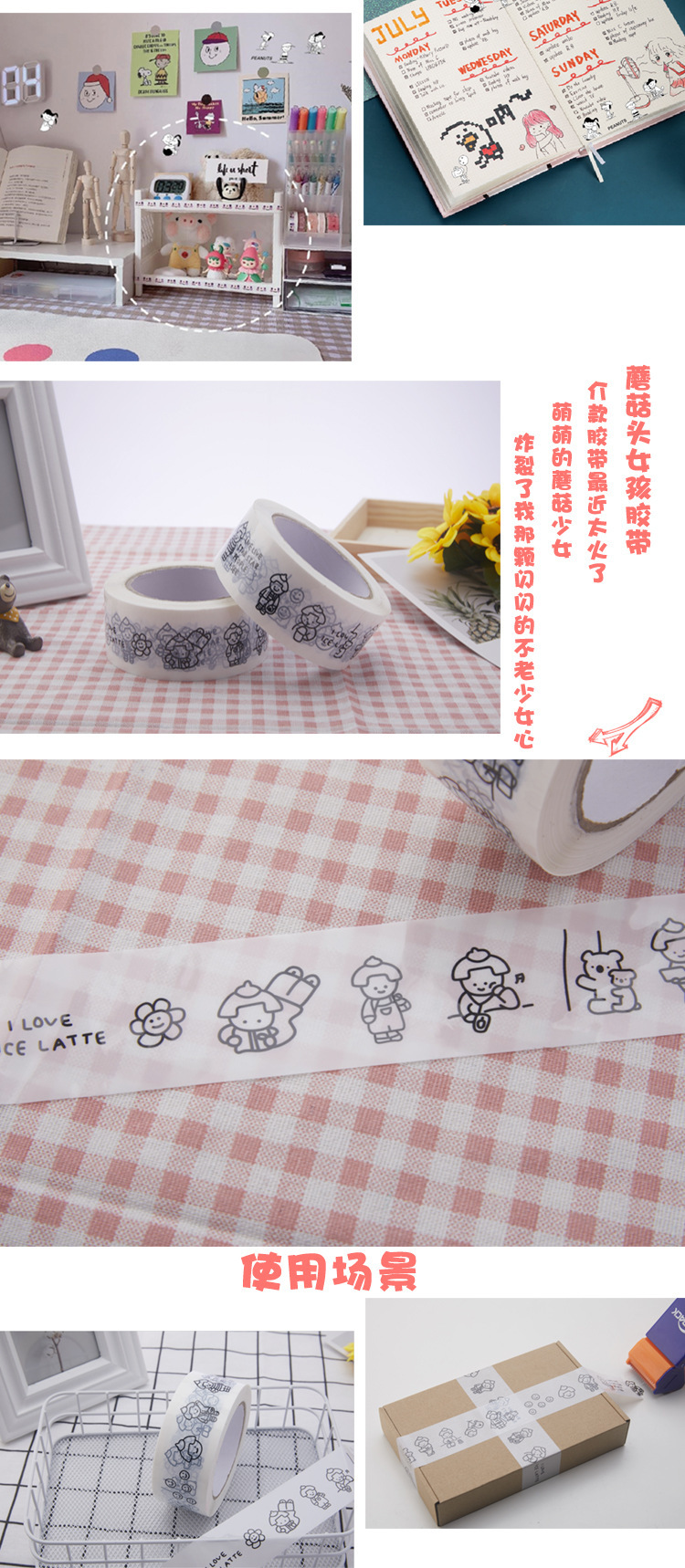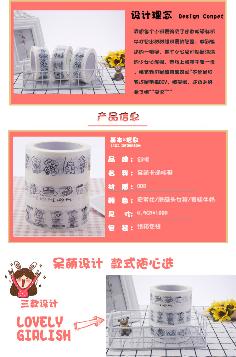 흑백 만화 버섯 머리 여자 귀여운 스누피 전자 상거래 포장 특급 밀봉 상자 이동 테이프 전체 상자 도매