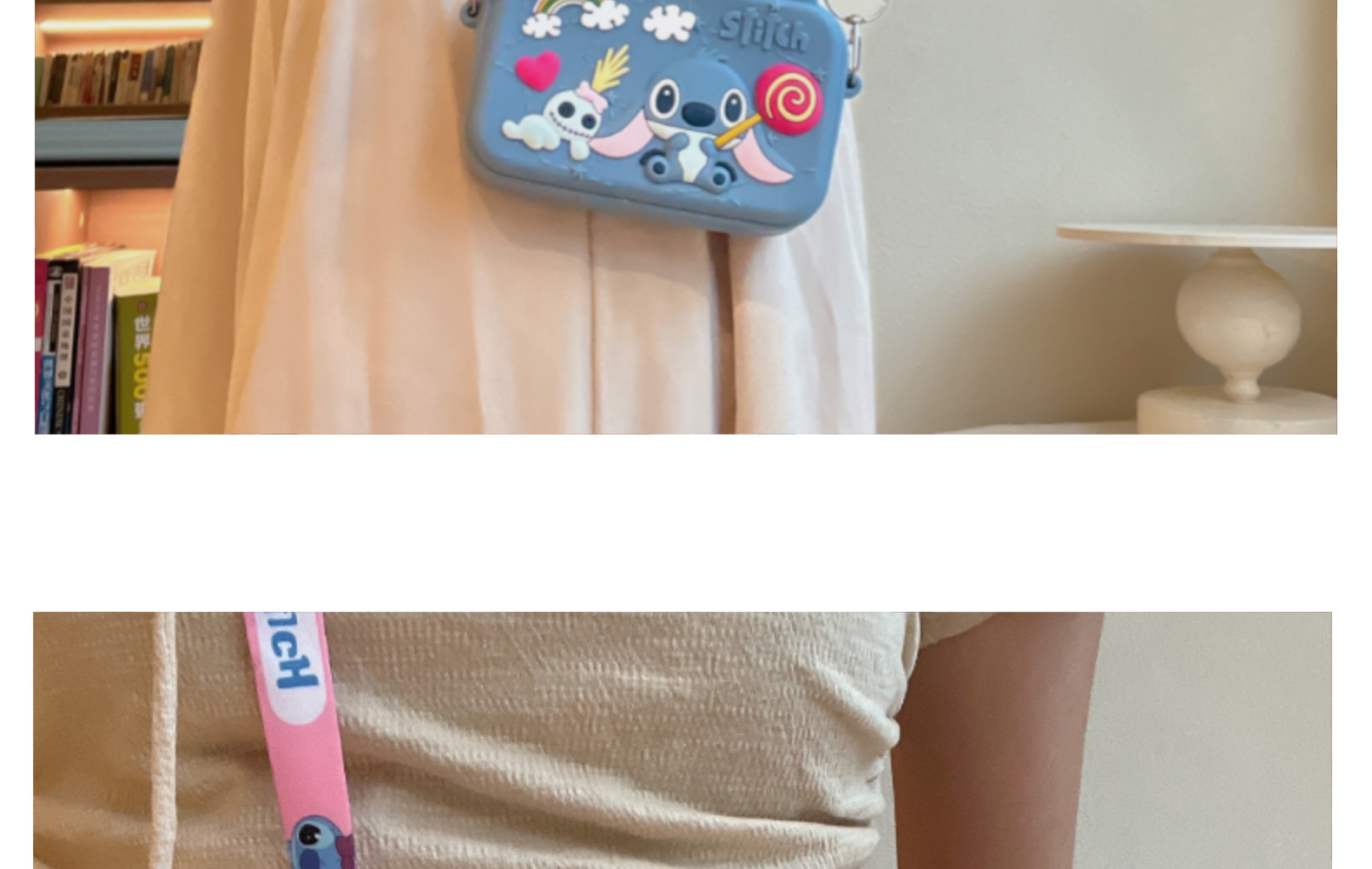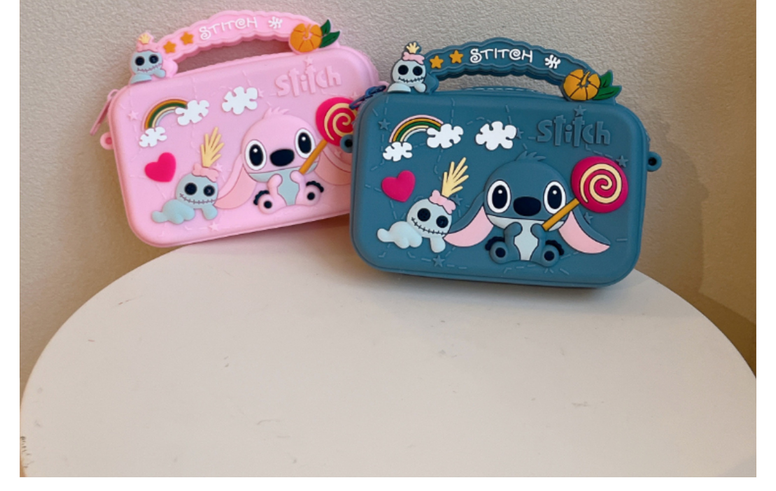 귀여운 만화 스티치 어린이 가방 패션 크로스 바디 공주 가방 미니 가방 실리콘 동전 지갑 가방스토어 가기