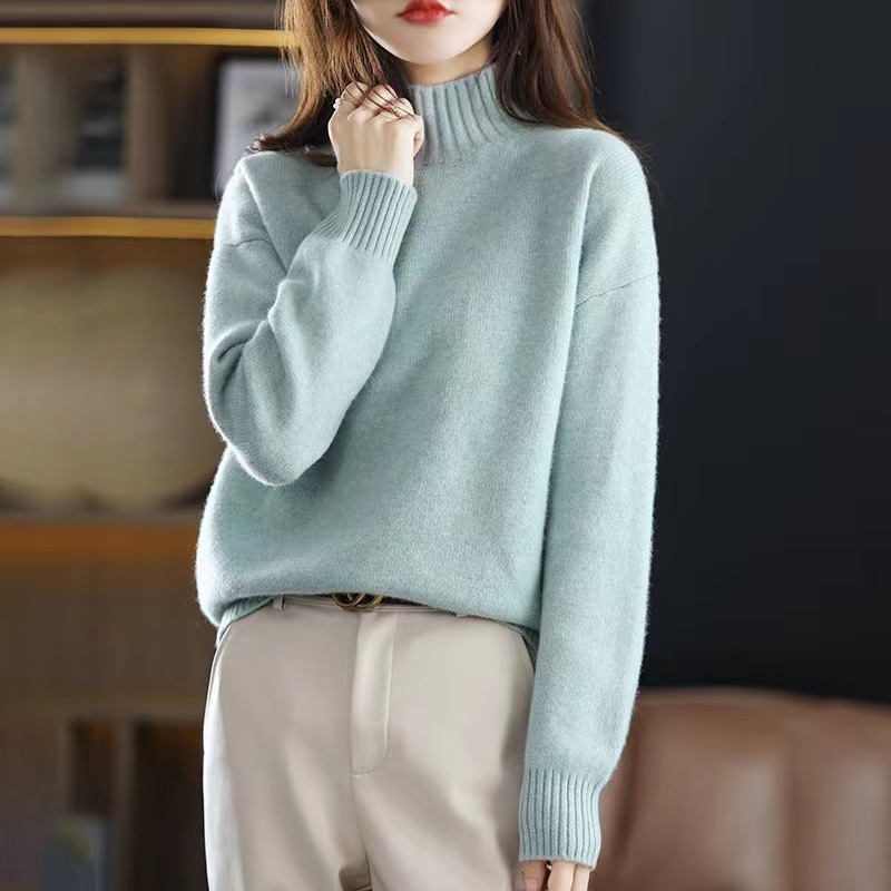 가을과 겨울 새로운 하프 터틀넥 스웨터 여성용 느슨한 스웨터 심플 두꺼운 니트 베이스 셔츠
