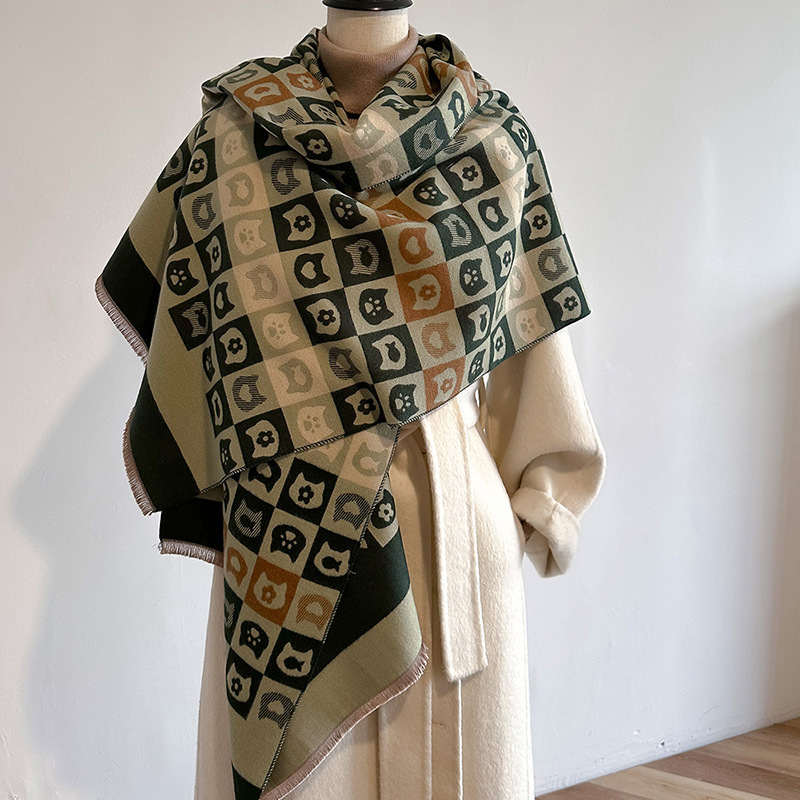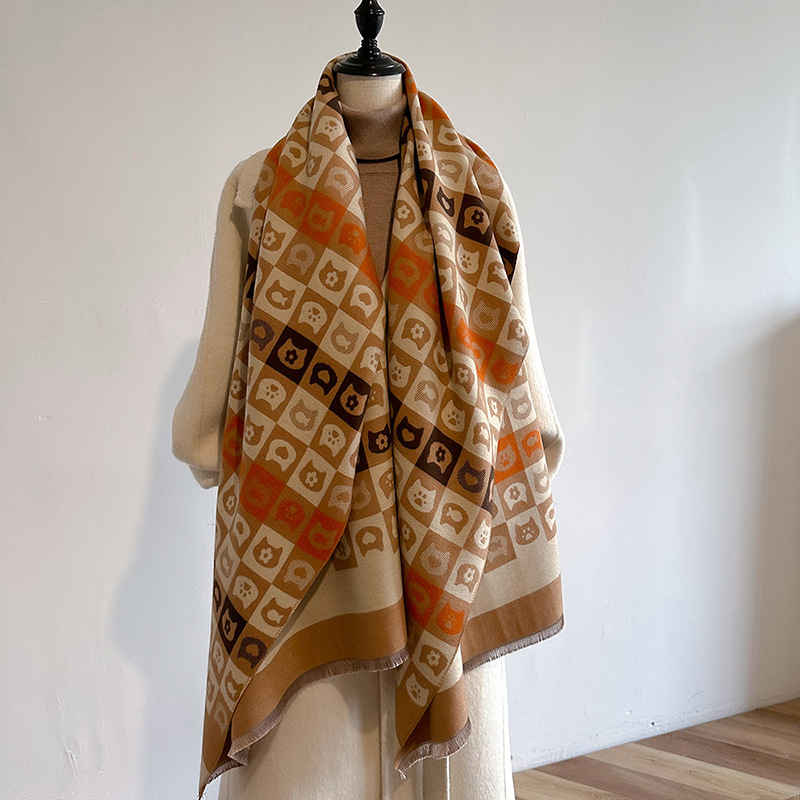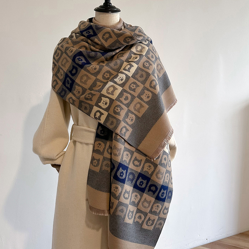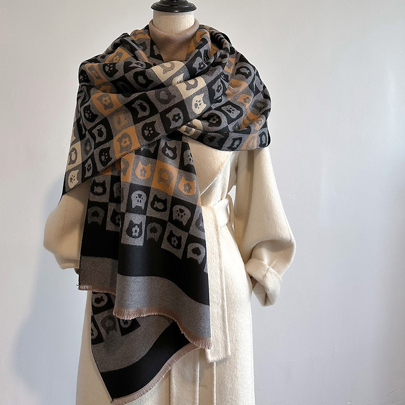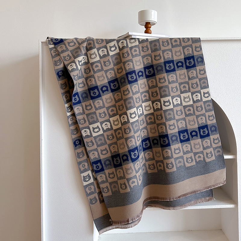 패션 조커 귀여운 재미있는 다양한 고양이 미아 양면 자카드 캐시미어 스카프 가을과 겨울 따뜻한 담요