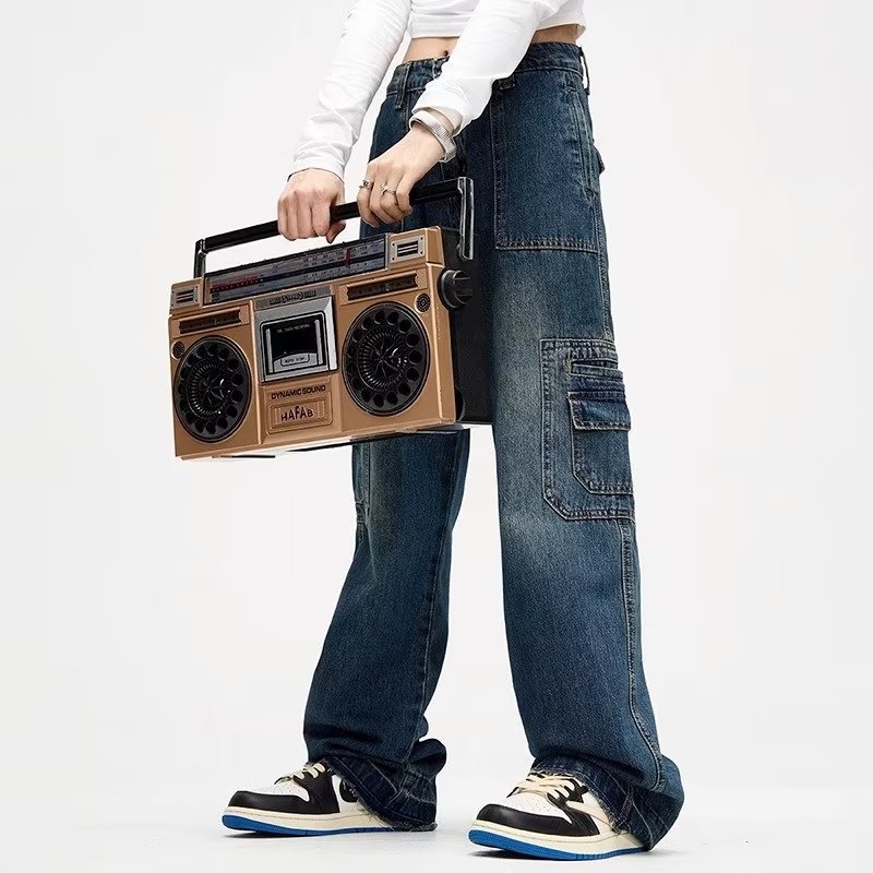 아메리칸 스타일 와이드 레그 청바지 여성의 느슨한 하이 웨이스트 디자인 감각 틈새 2023 새로운 가을 슬리밍 하이 스트리트 걸레질 바지스토어 가기