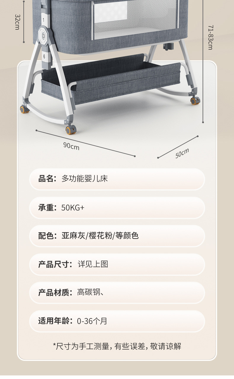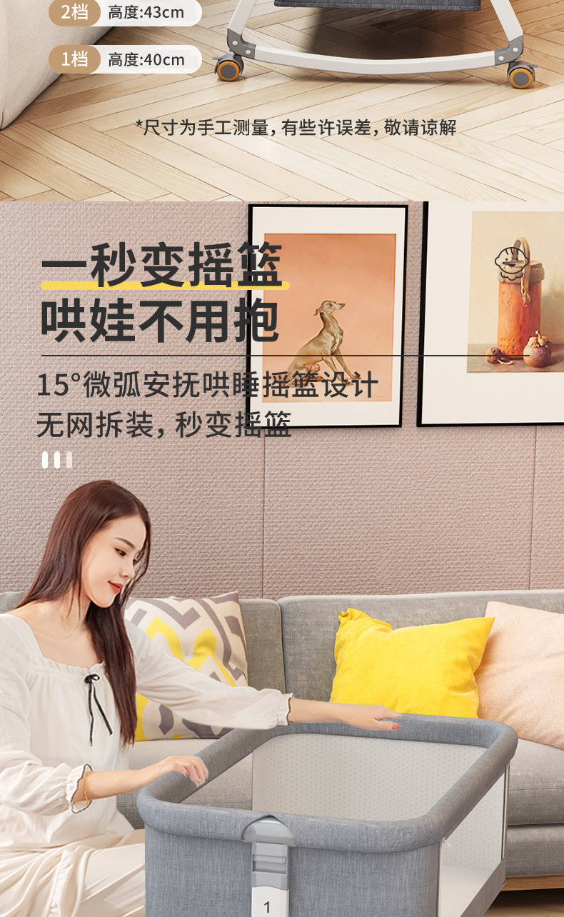 유아용 침대 이동식 휴대용 아기 요람 침대 접이식 다기능 BB 침대 신생아 어린이 접합 큰 침대