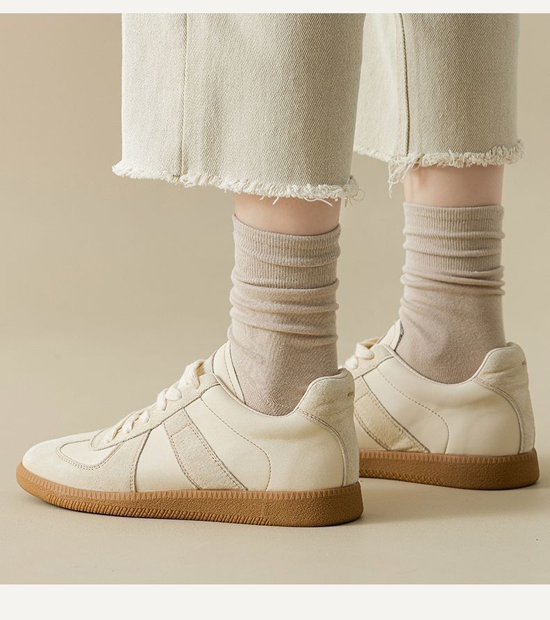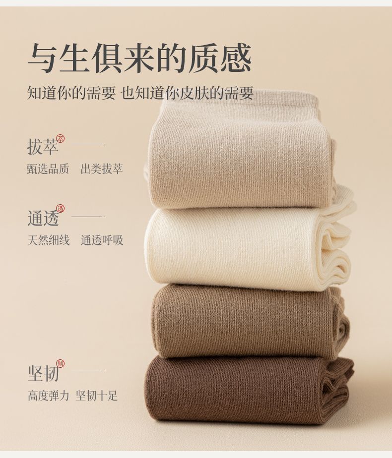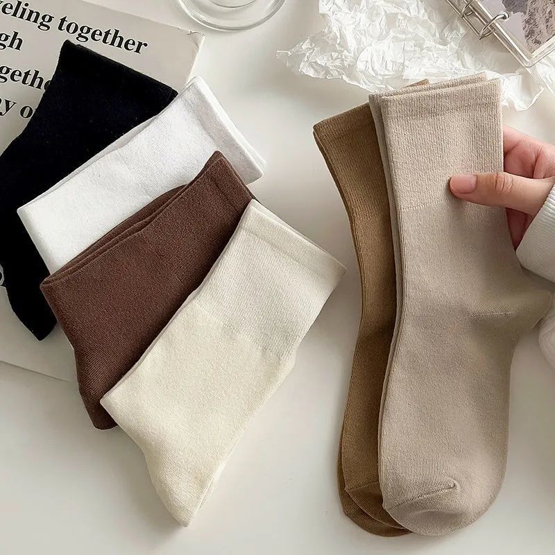 지구 색 뼈없는 달 양말 여성용 가을과 겨울 중간 길이 양말 학술 스타일 여성용 간단한 단색 더미 양말